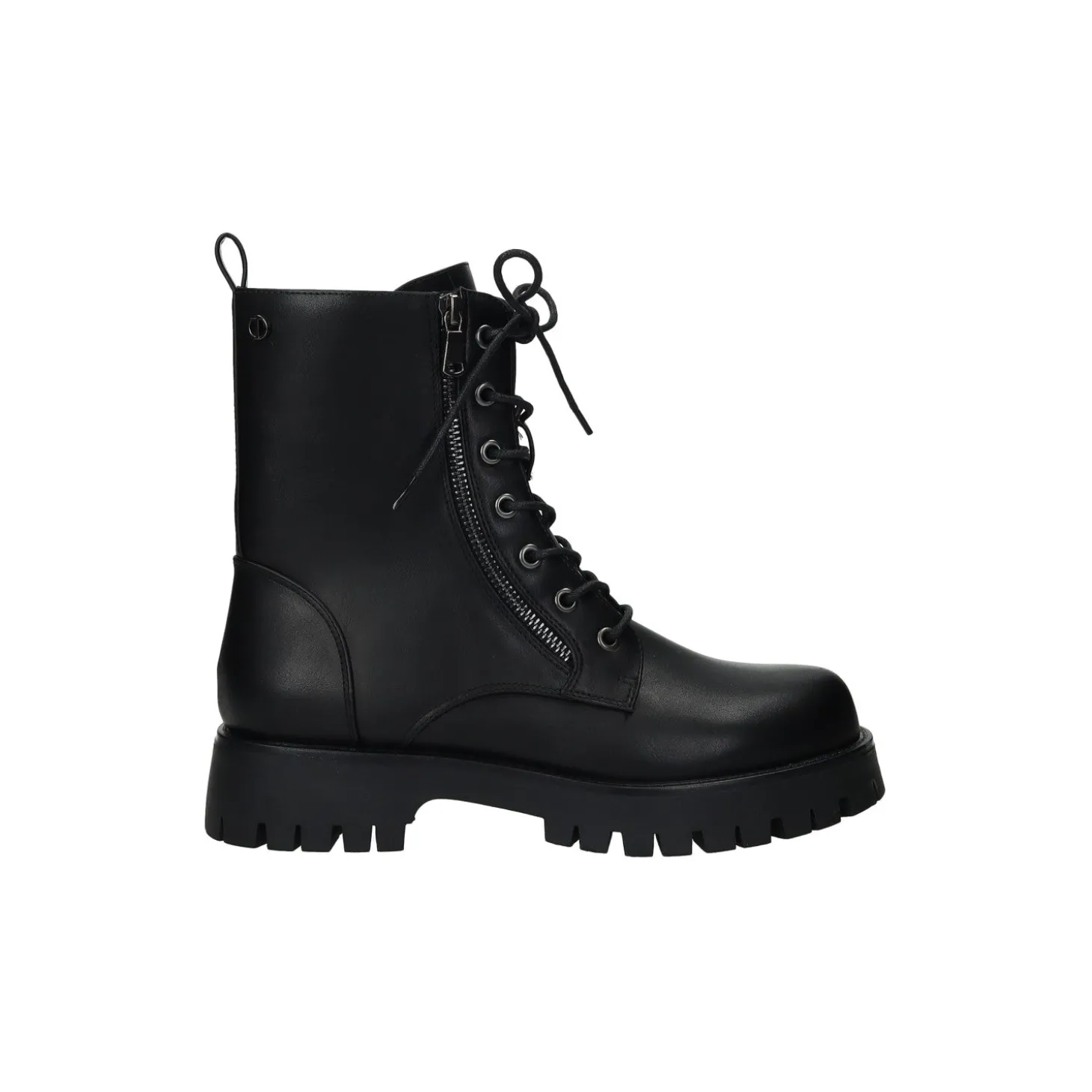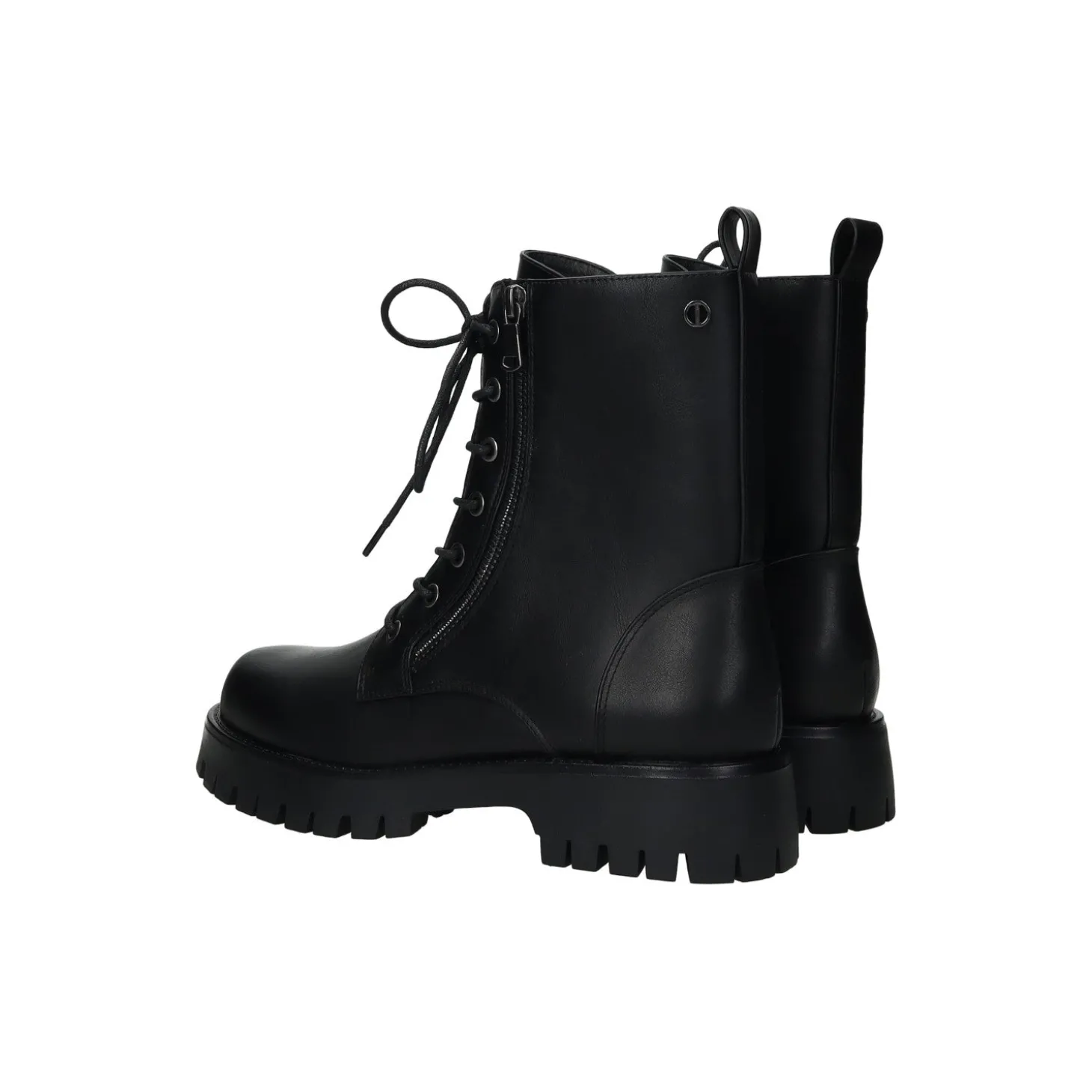 Anfibi in ecopelle con tacco di 3 cm.
