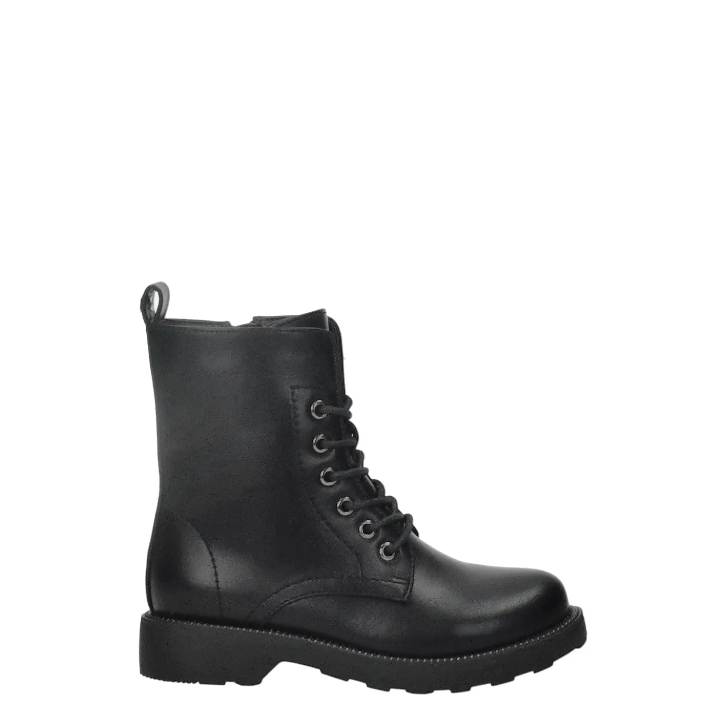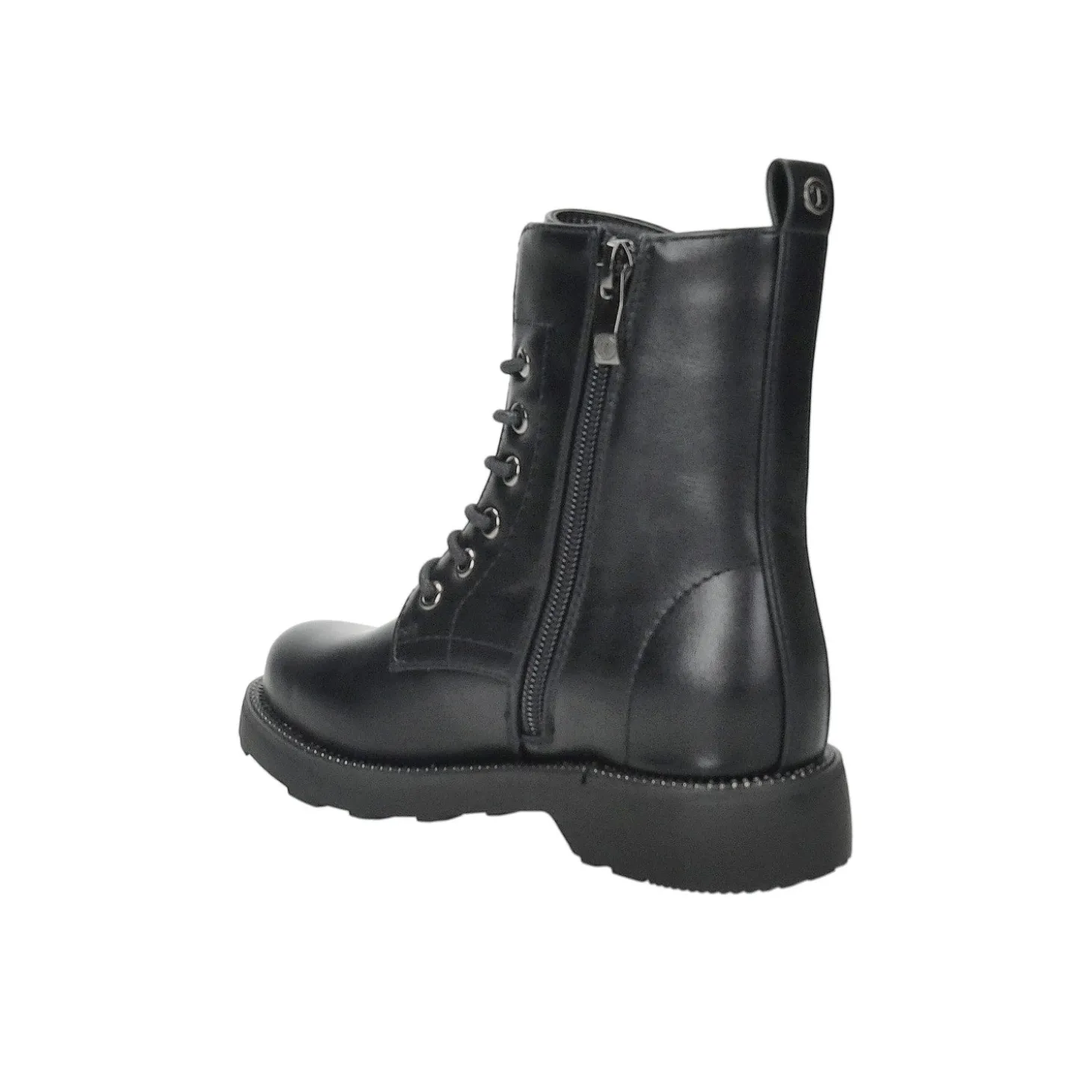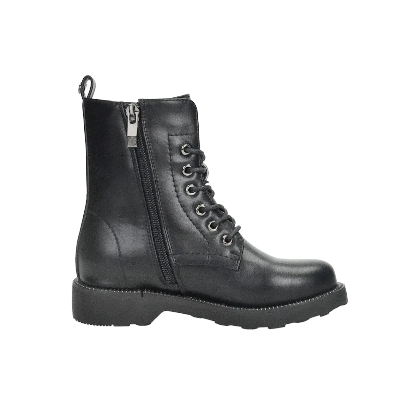 Anfibi con suola carrarmato.Chiusura con cerniera.Dettaglio botchie sulla suola.