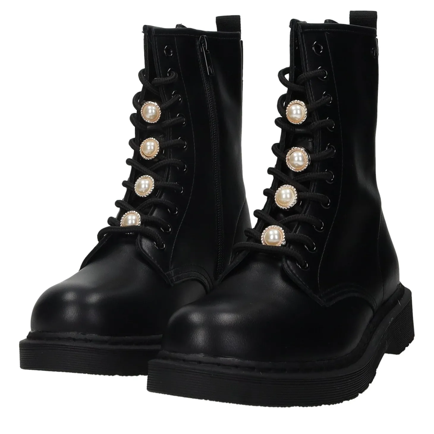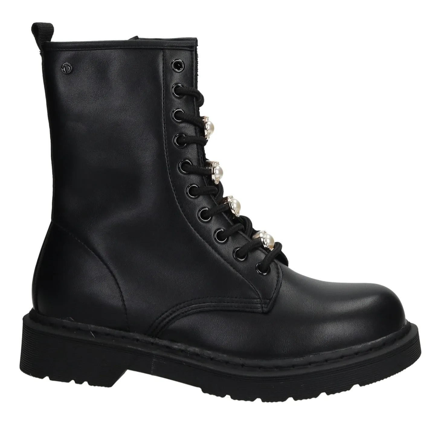 Se cercate delle calzature pratiche e di tendenza. optate per questi anfibi. Gli stivali hanno dieci buchi che potete usare per stringere i lacci e adattare gli stivali al vostro piede. Questo modello è caratterizzato da una suola carrarmato e gioielli ricoperti di strass.Chiusura con zip.