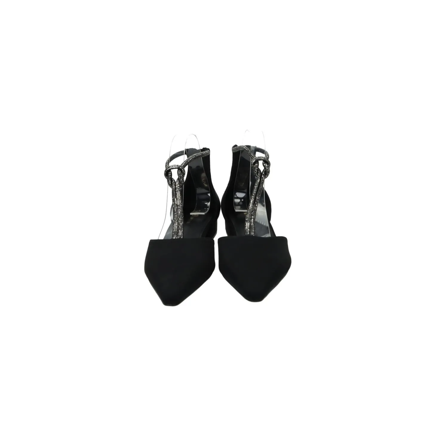 Ballerine in tessuto con listino intrecciato in strass e chiusura sul retro con zip.