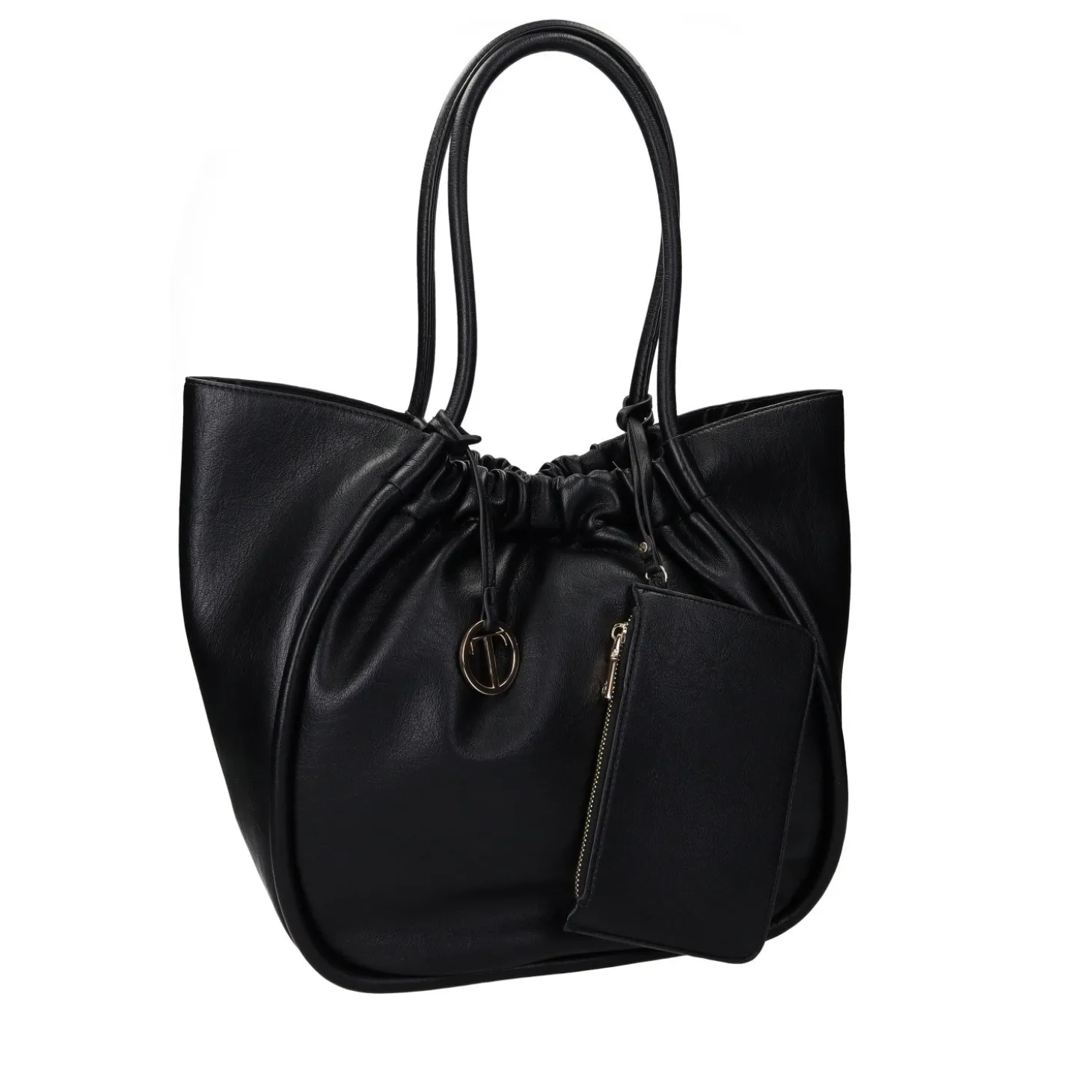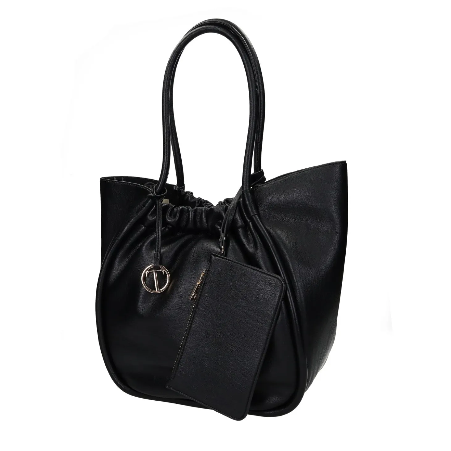 Borsa a spalla arricciata in ecopelle con pendaglio logo tata Italia.