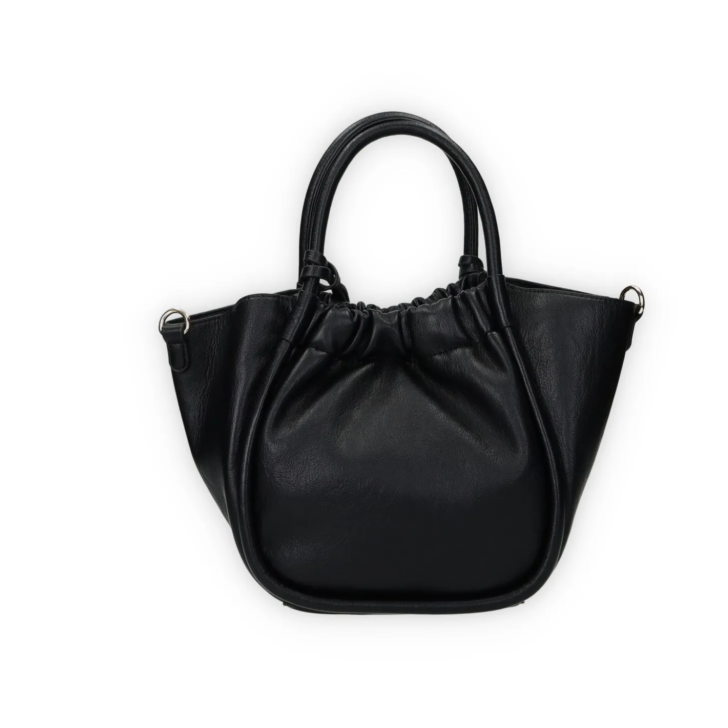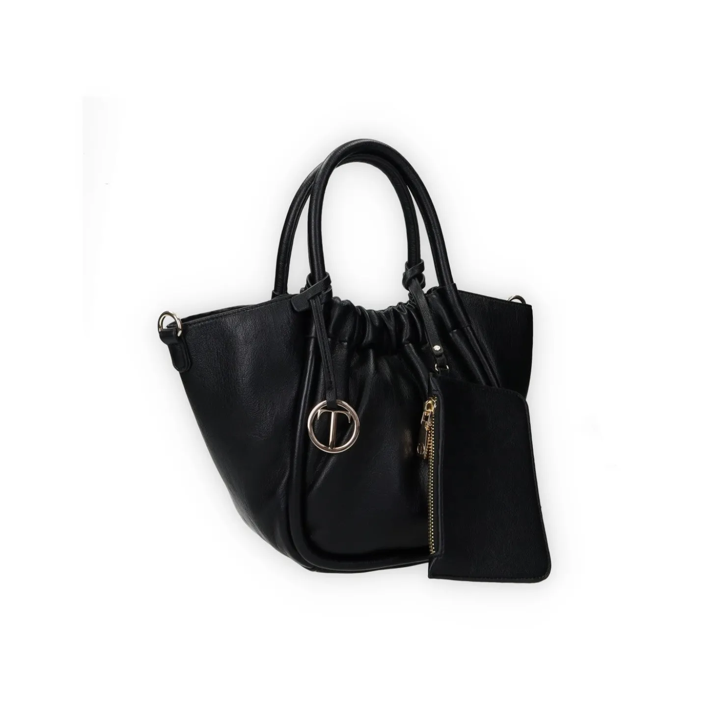 Borsa a spalla arricciata in ecopelle con pendaglio logo tata Italia.