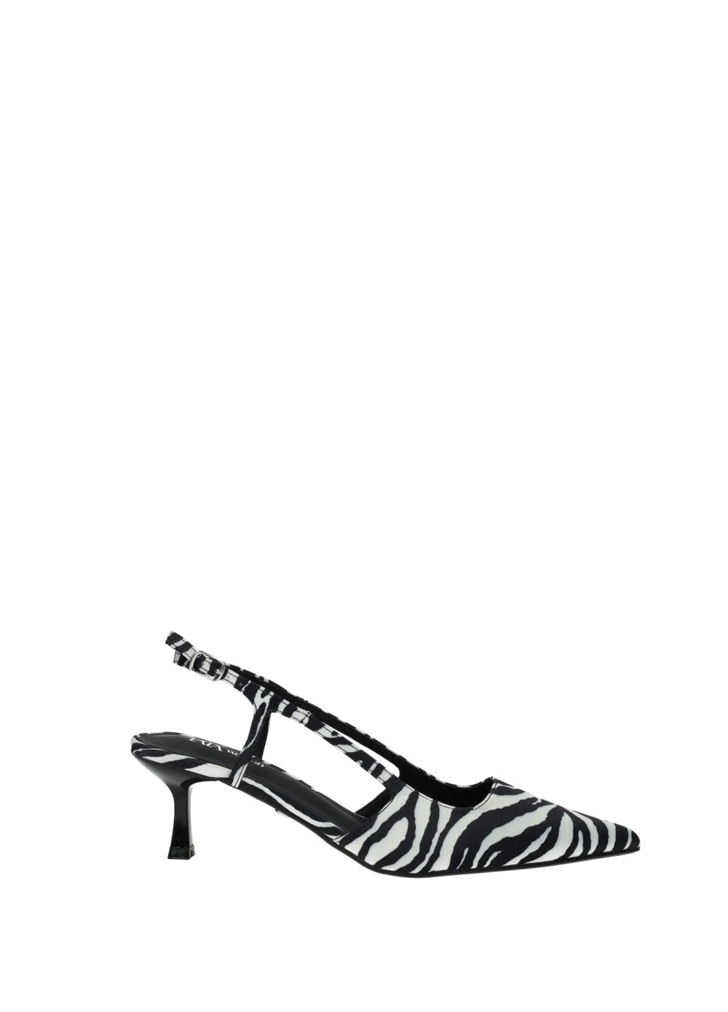 Décolleté slingback in raso con tacco di 5.5 cm e stampa zebrata.