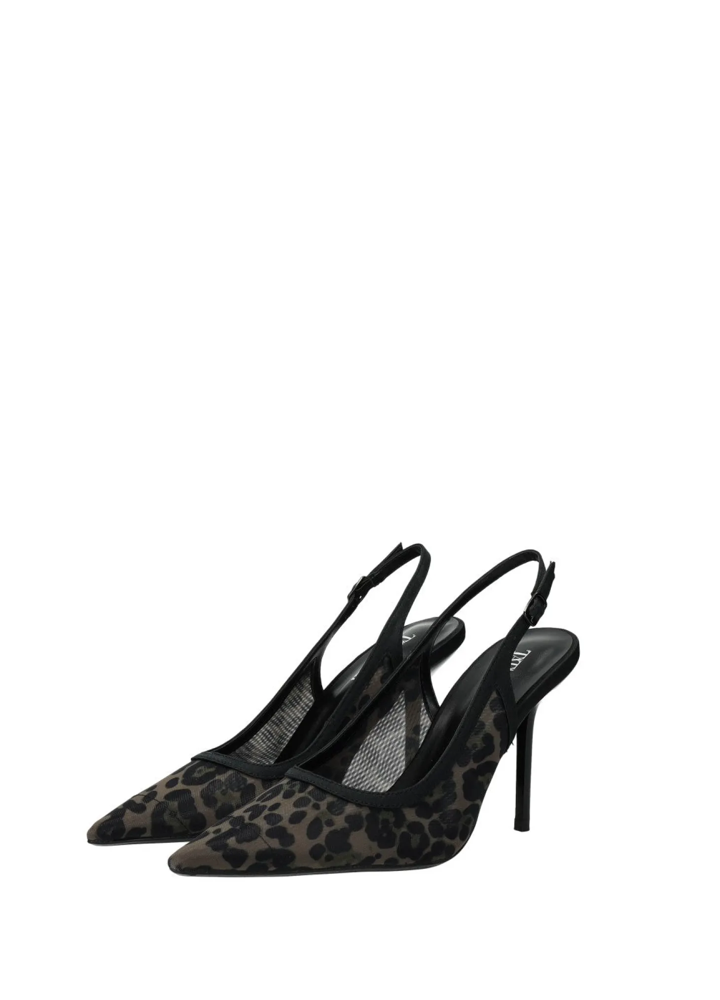 Décolleté in tessuto con tacco di 10 cm e stampa leopardata.