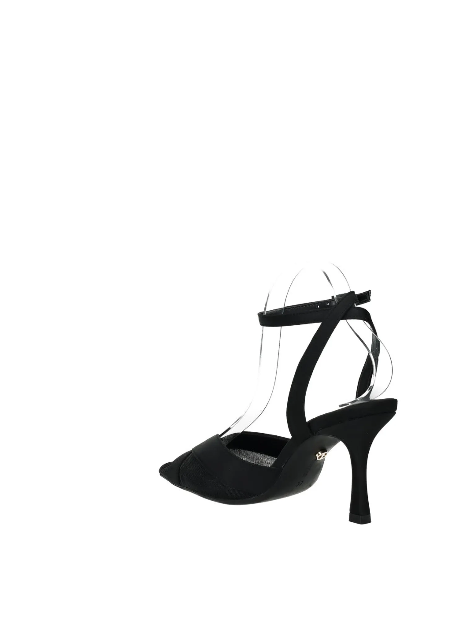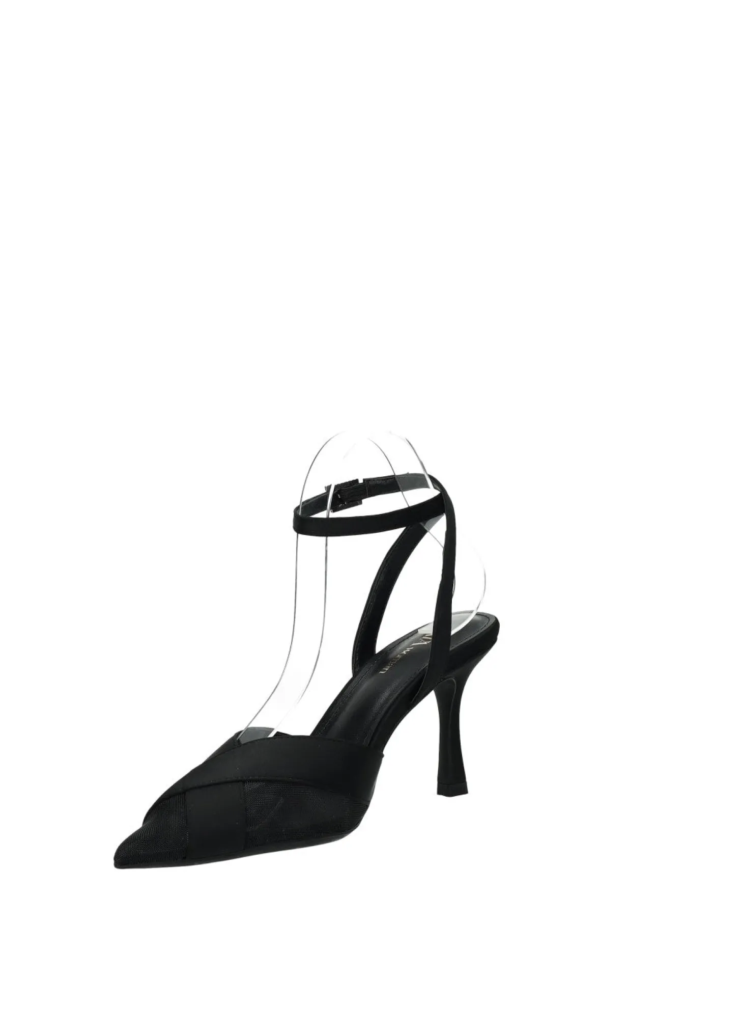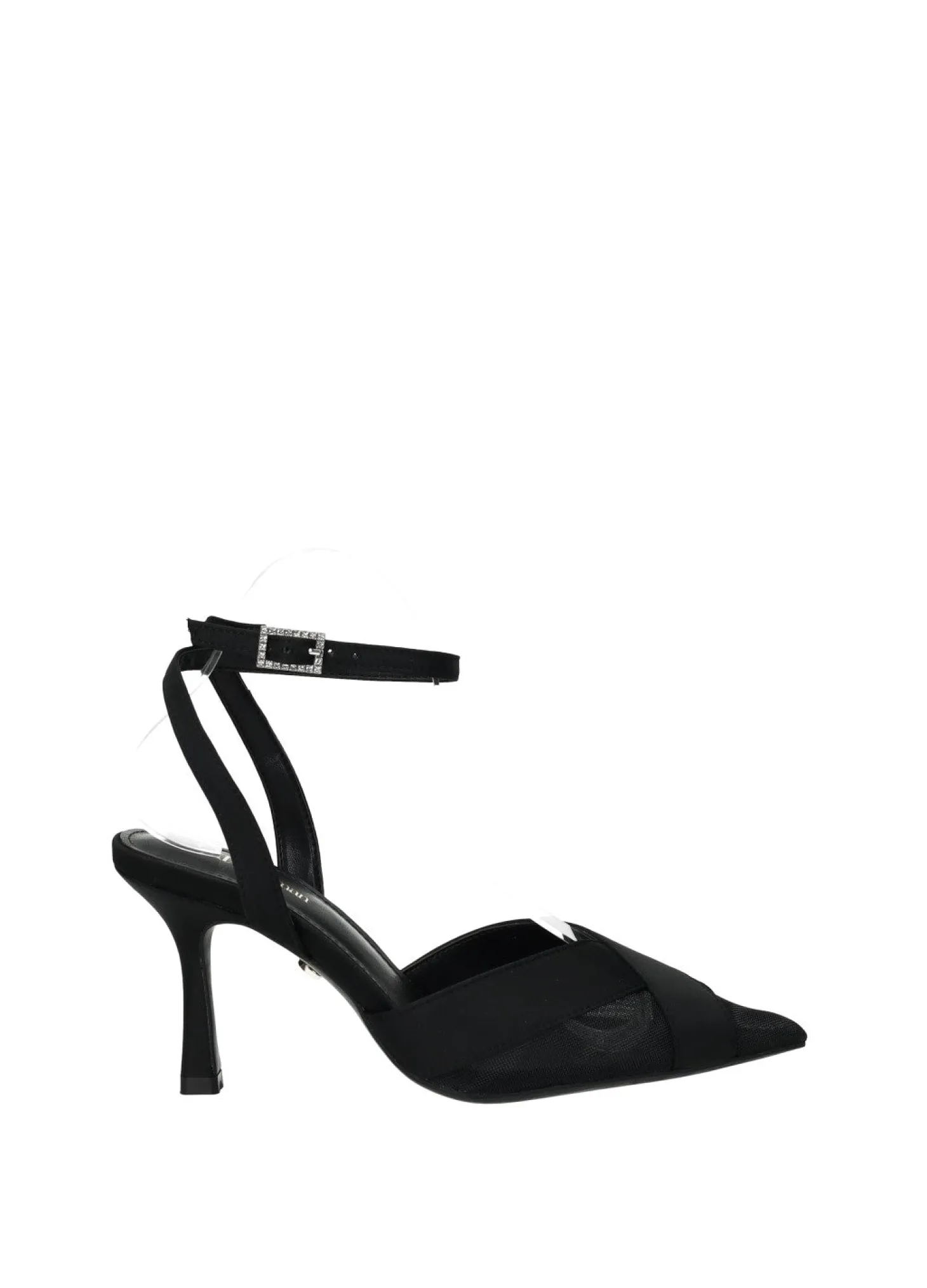 Décolleté in raso e rete con fibbia gioiello e tacco di 8.5 cm.