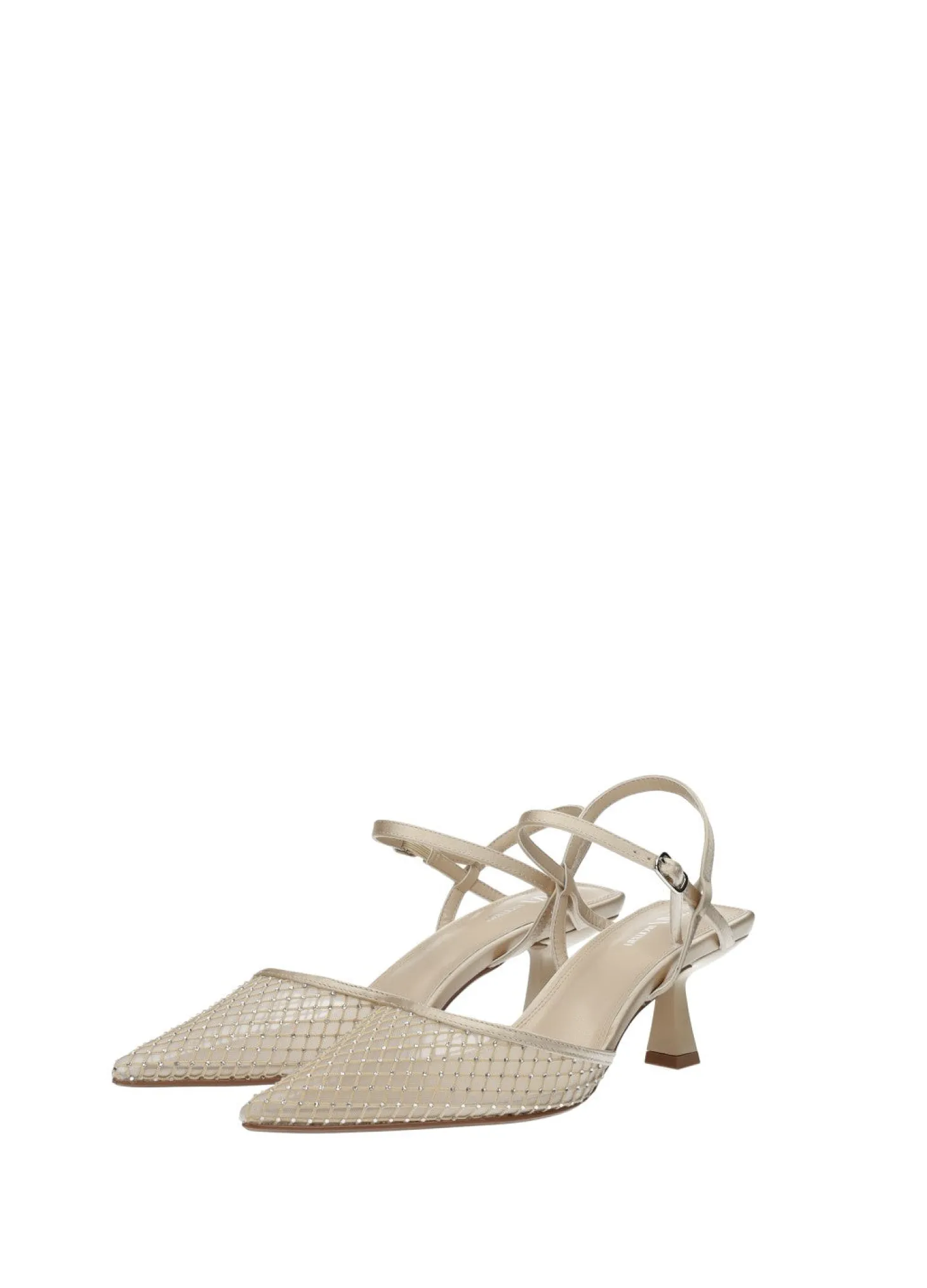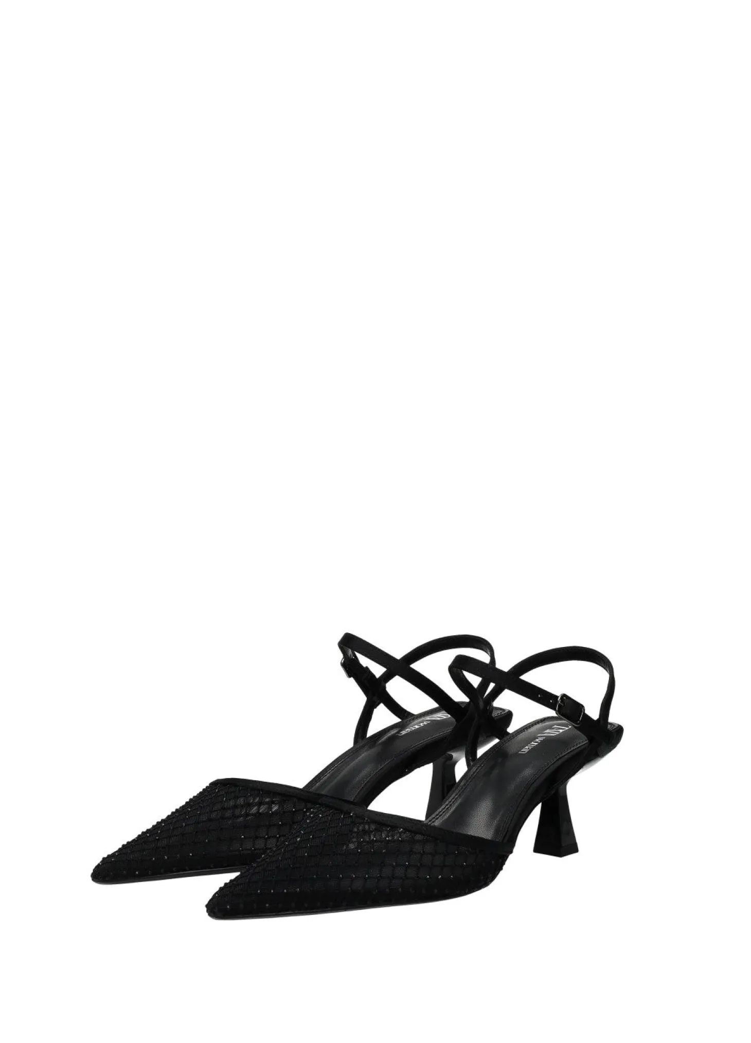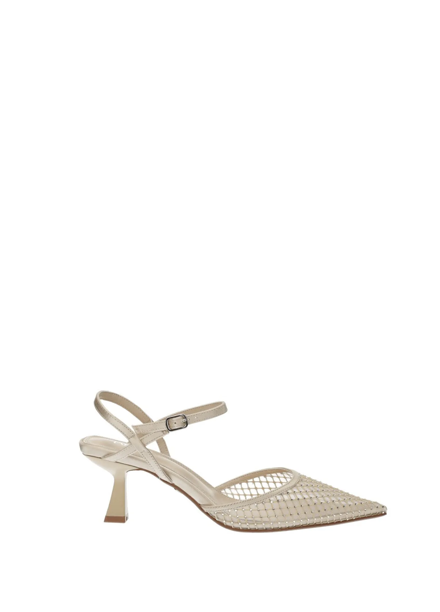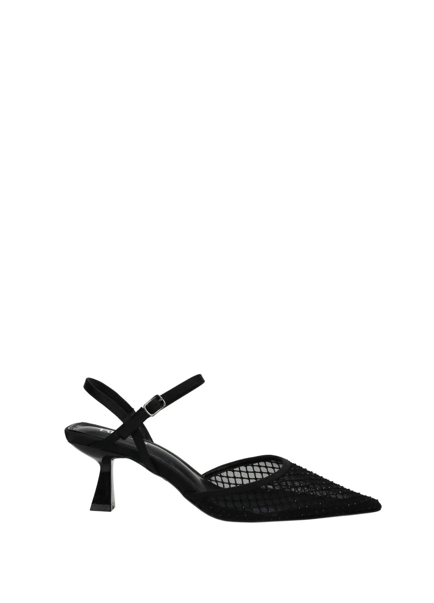 Décolleté in rete con tacco di 6 cm e strass.