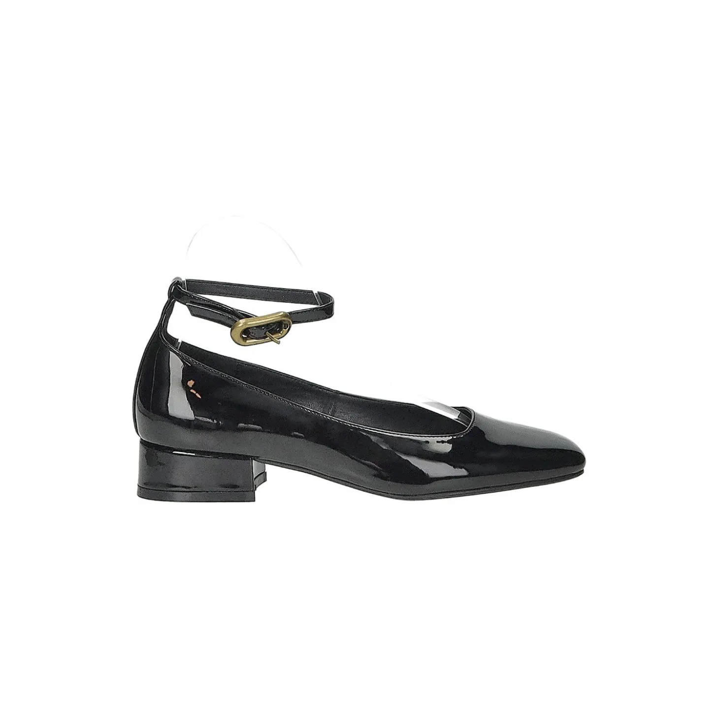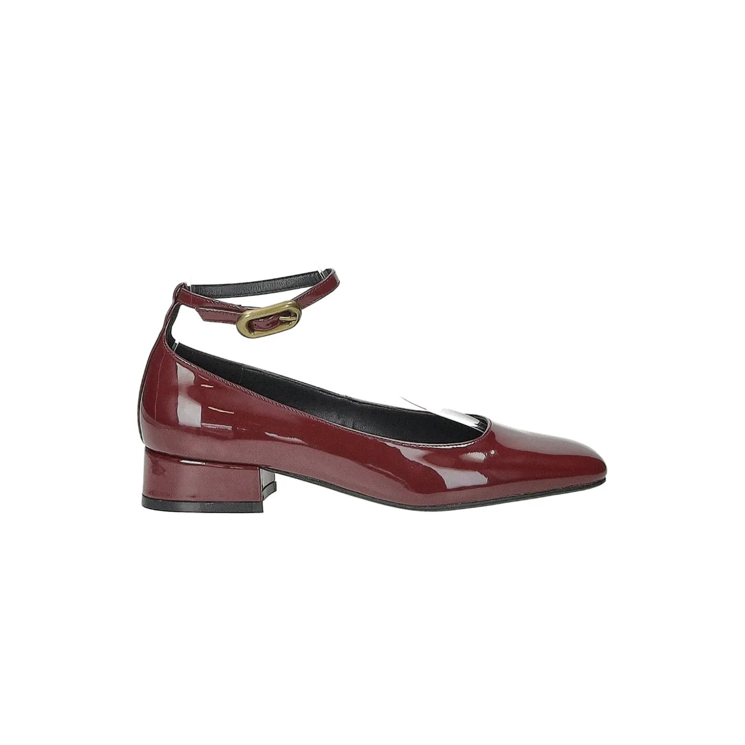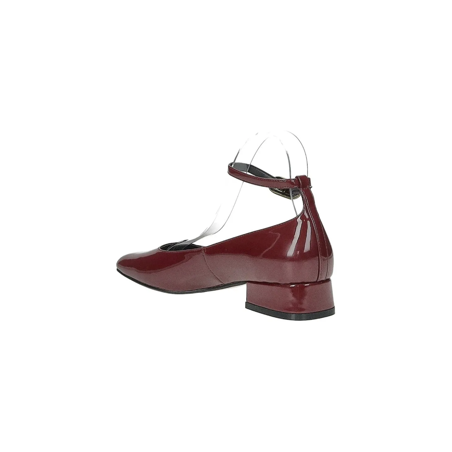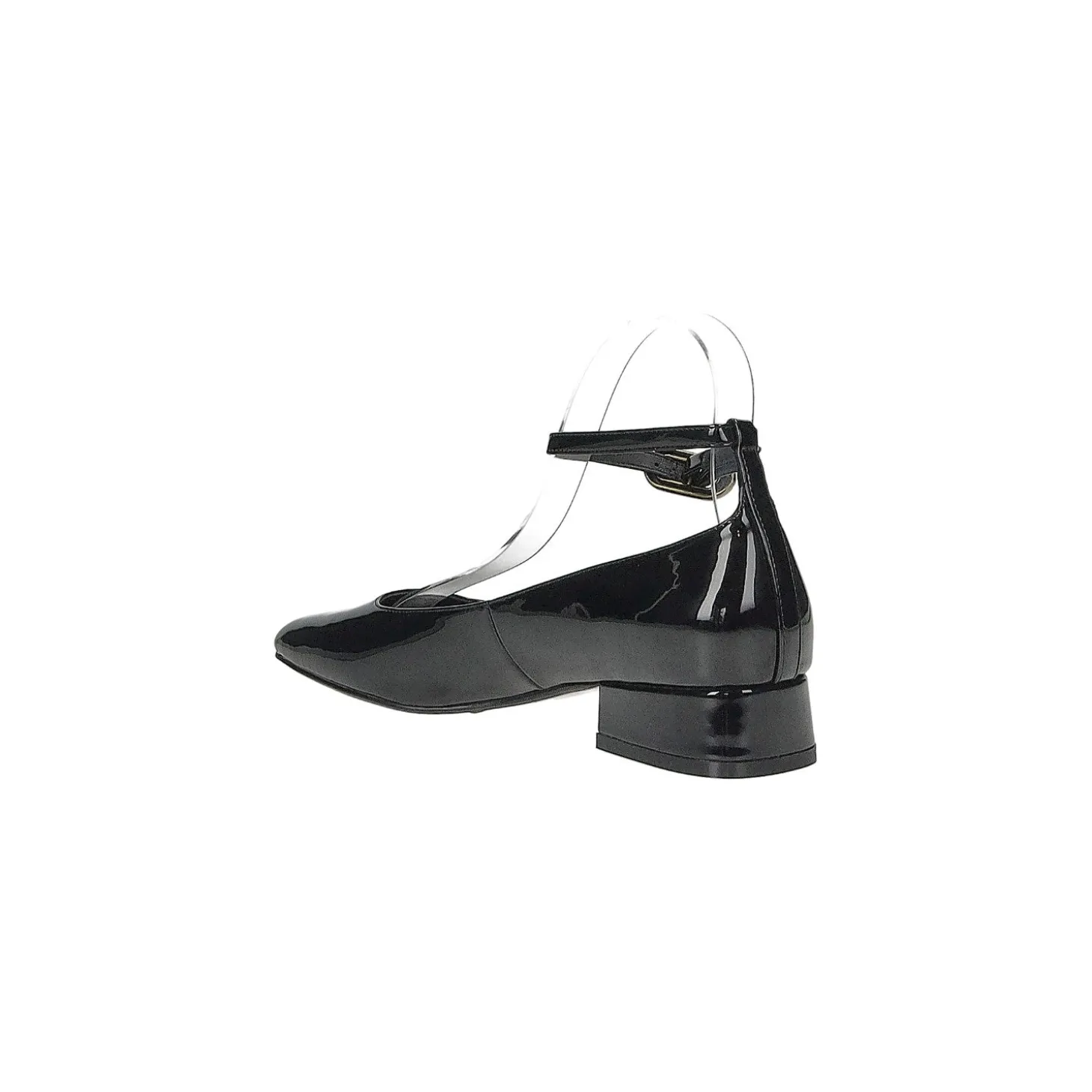 Décolleté in vernice con cinturino regolabile alla caviglia.