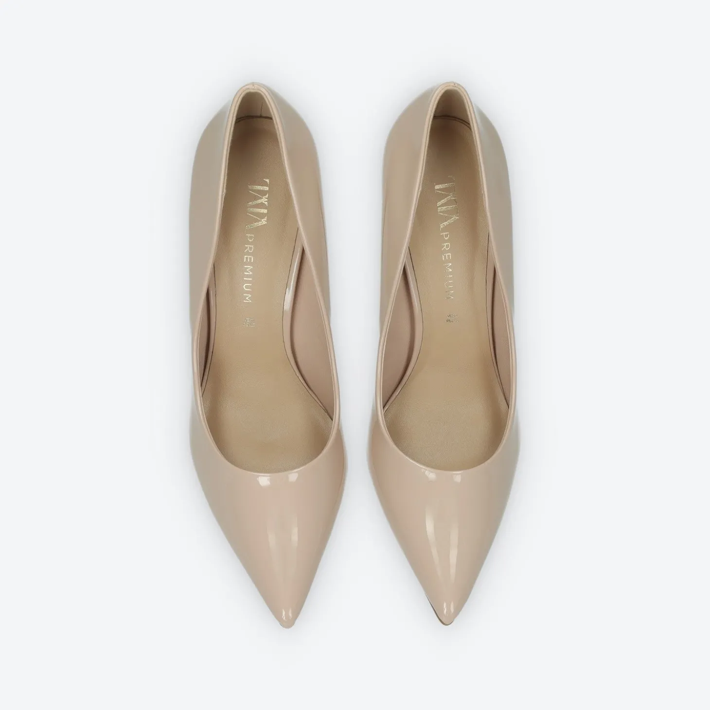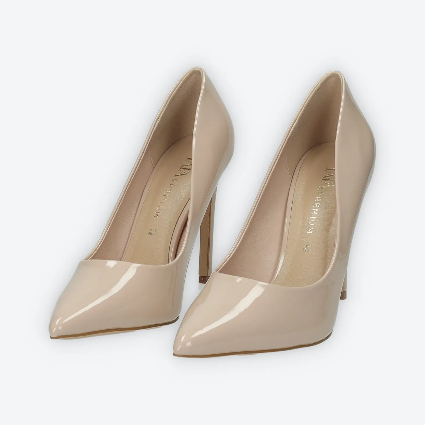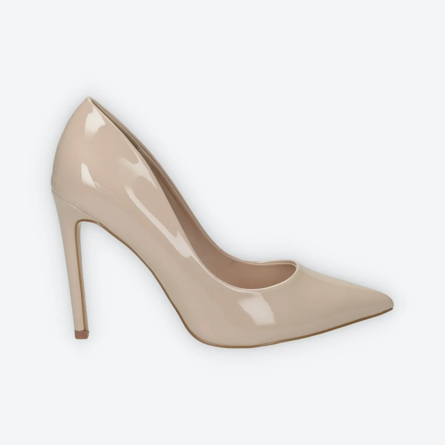 Décolleté in vernice con tacco di 10 cm.