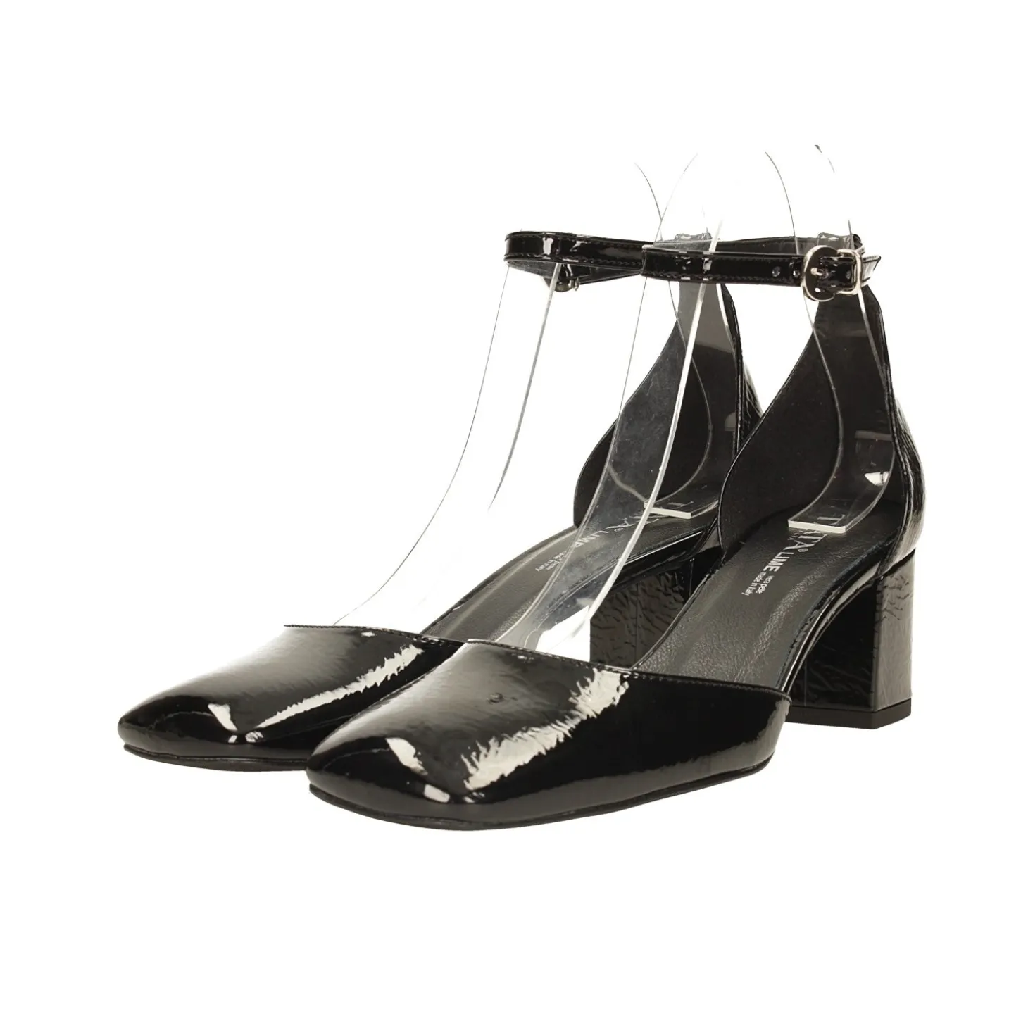 Décolleté in vernice.Punta squadrata. Cinturino alla caviglia con fibbia.Sottopiede in vera pelle.Prodotto Made in ItalyAltezza tacco: 5.5cm