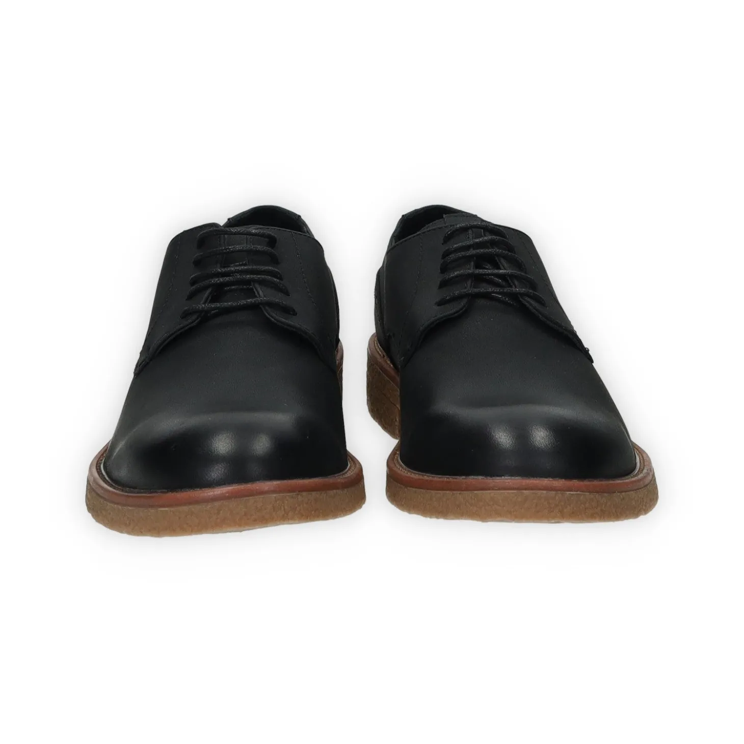 Derby in microfibra con cuciture a vista e fondo in gomma.