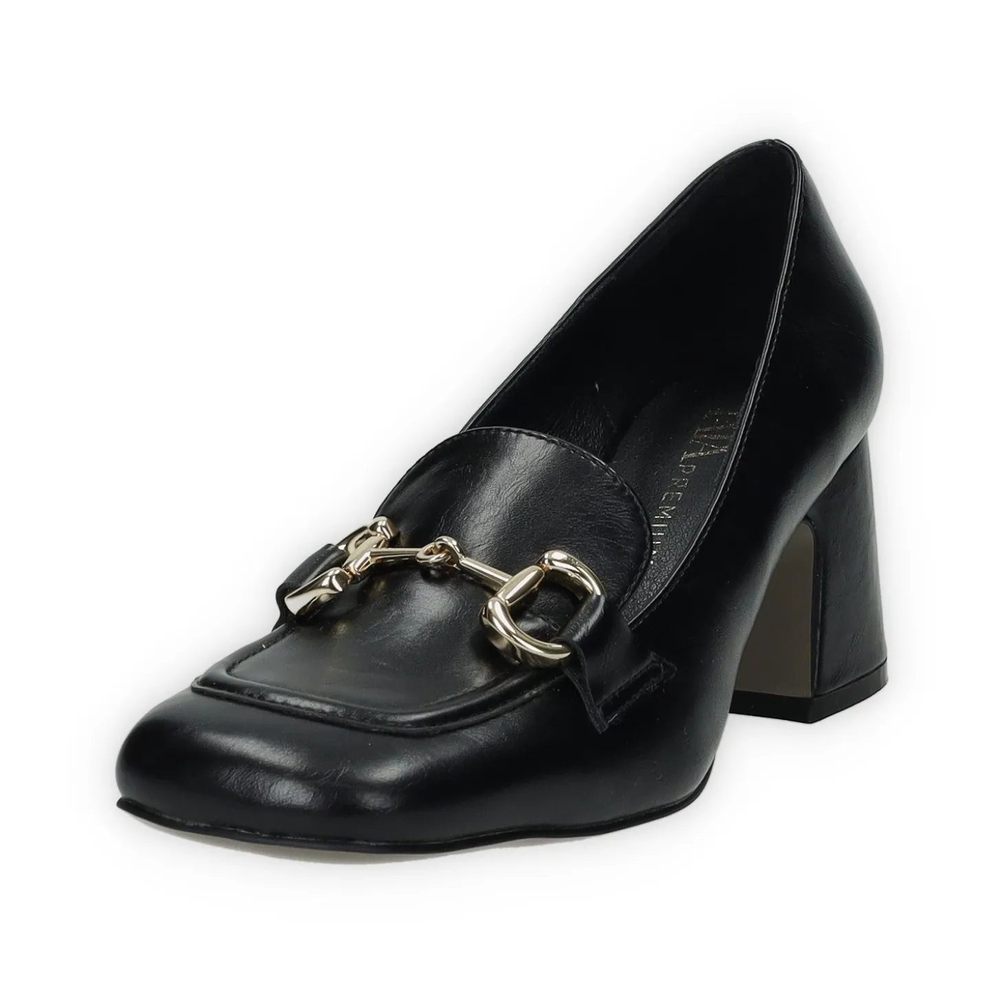 Mocassini in ecopelle con inserto in metallo etacco di 5 cm.