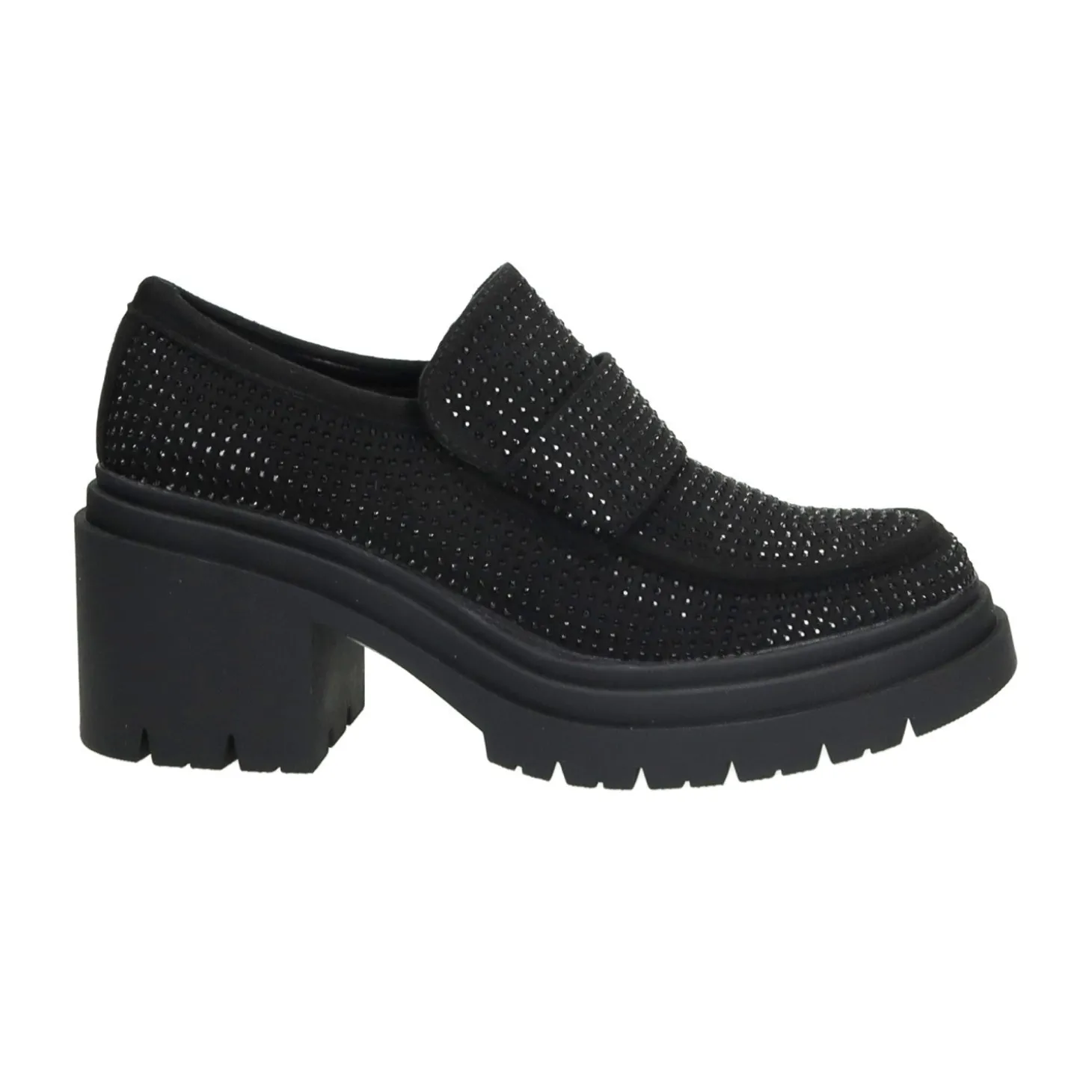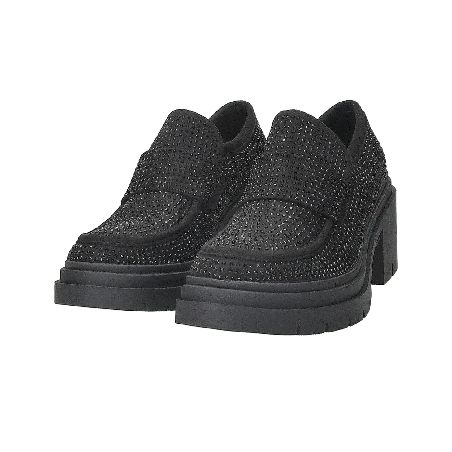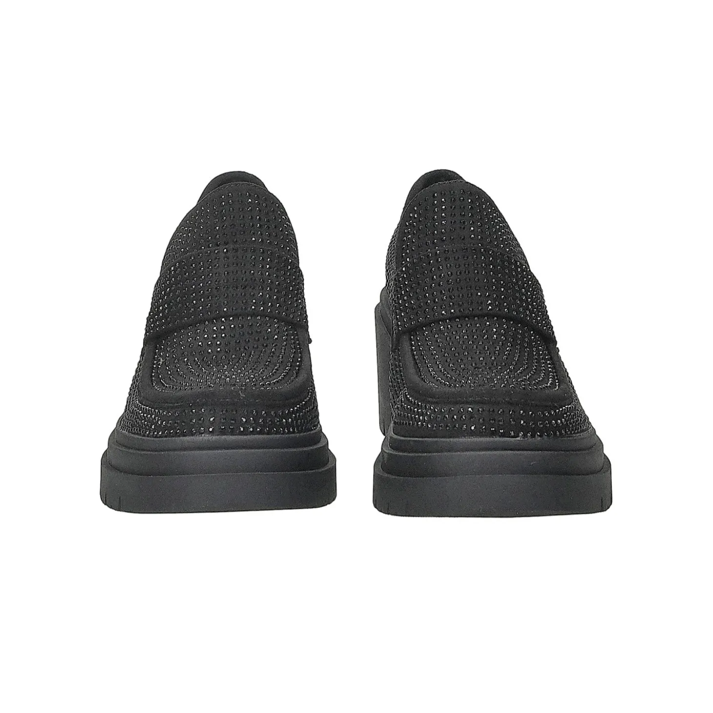 Aggiungi un tocco speciale ai tuoi nuovi outfits della stagione grazie ai nostri esclusivi mocassini.Impreziositi da brillanti cristalli applicati su tutta la tomaia e rivelano una punta arrotondata e una suola chunky in gomma carrarmato. Perfetti per i tuoi looks glam-rockAltezza tacco: 6cmAltezza plateau: 2cm