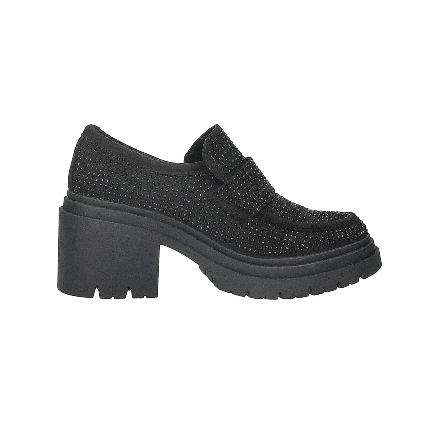 Mocassini con strass.Tacco alto 6cm