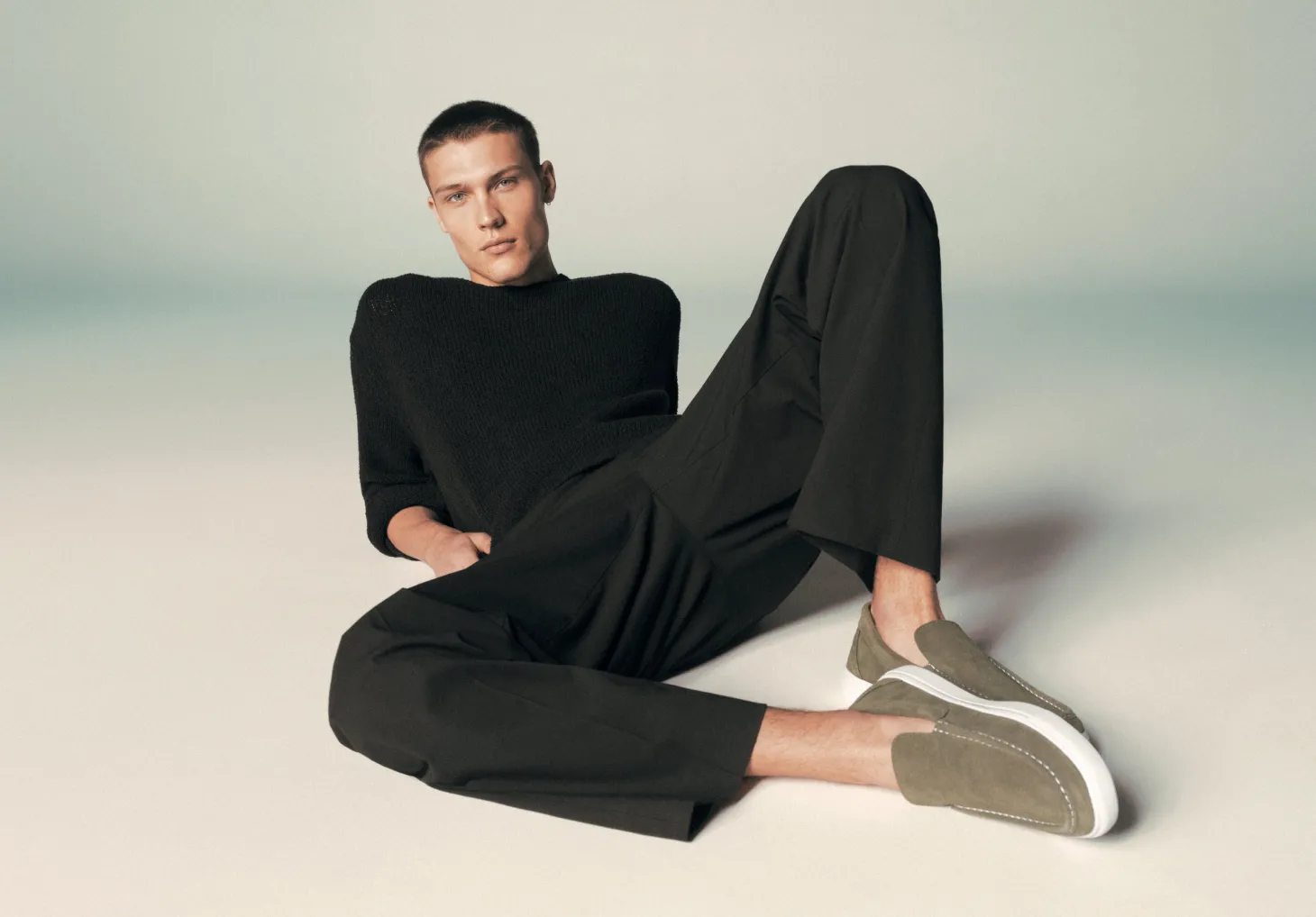 Mocassini in pelle scamosciata con fondo in gomma.