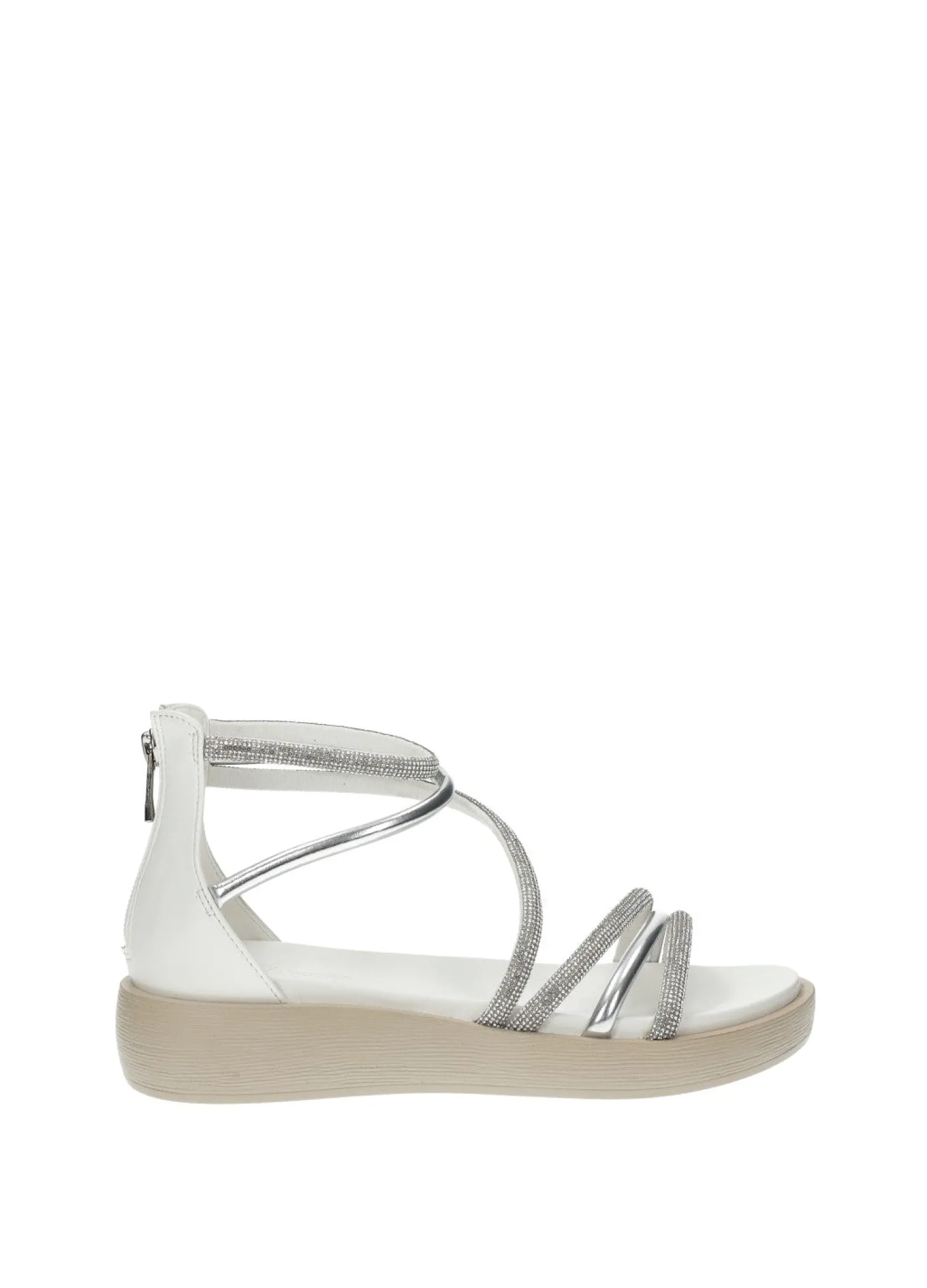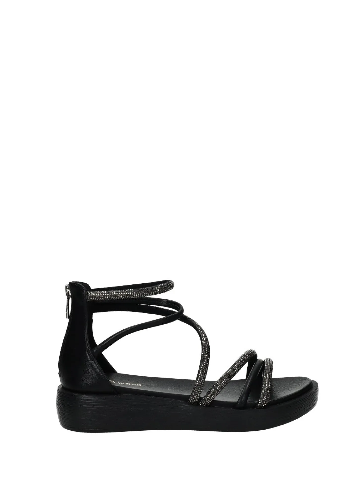 Sandali in microfibra con listini strass.