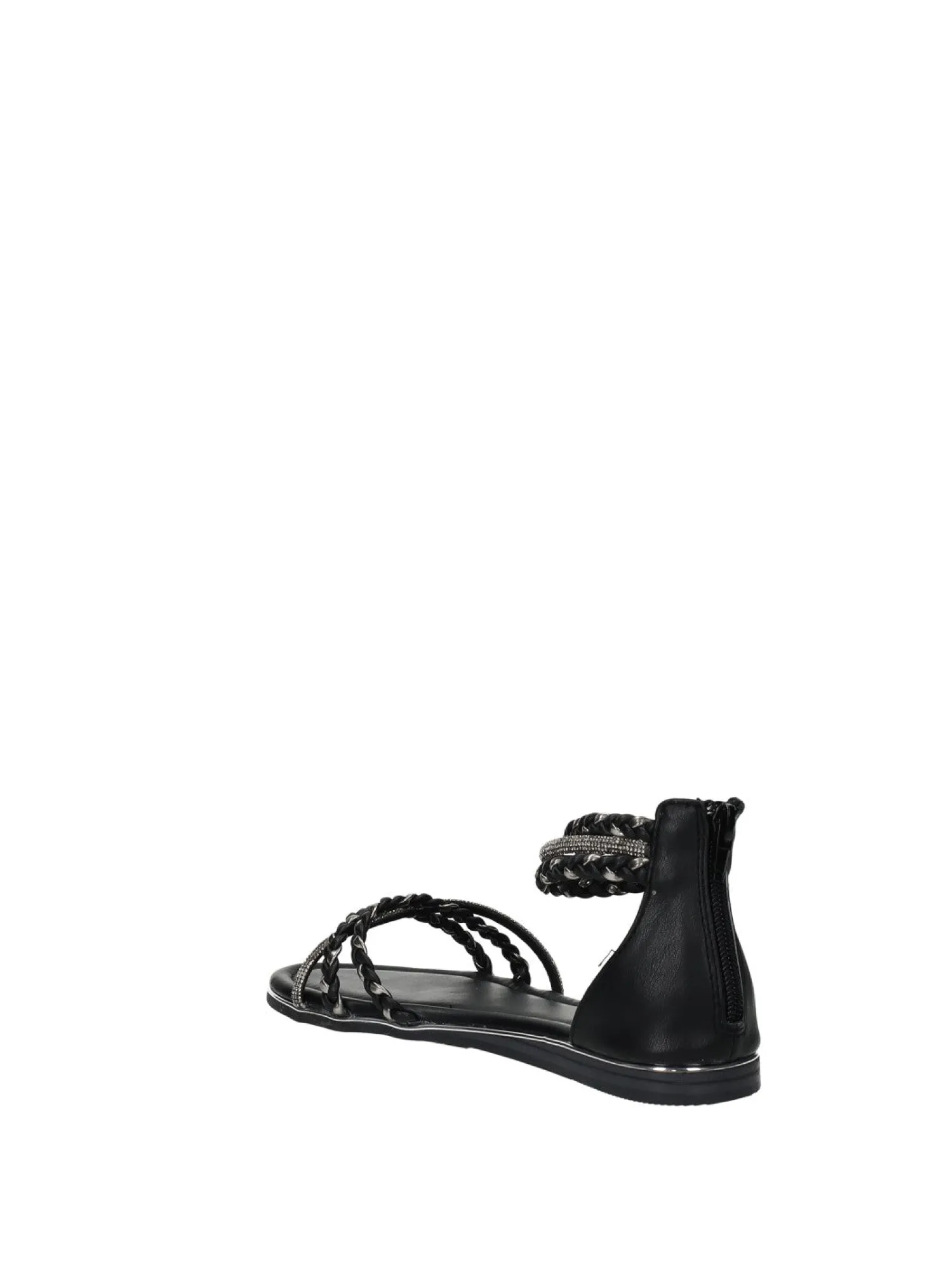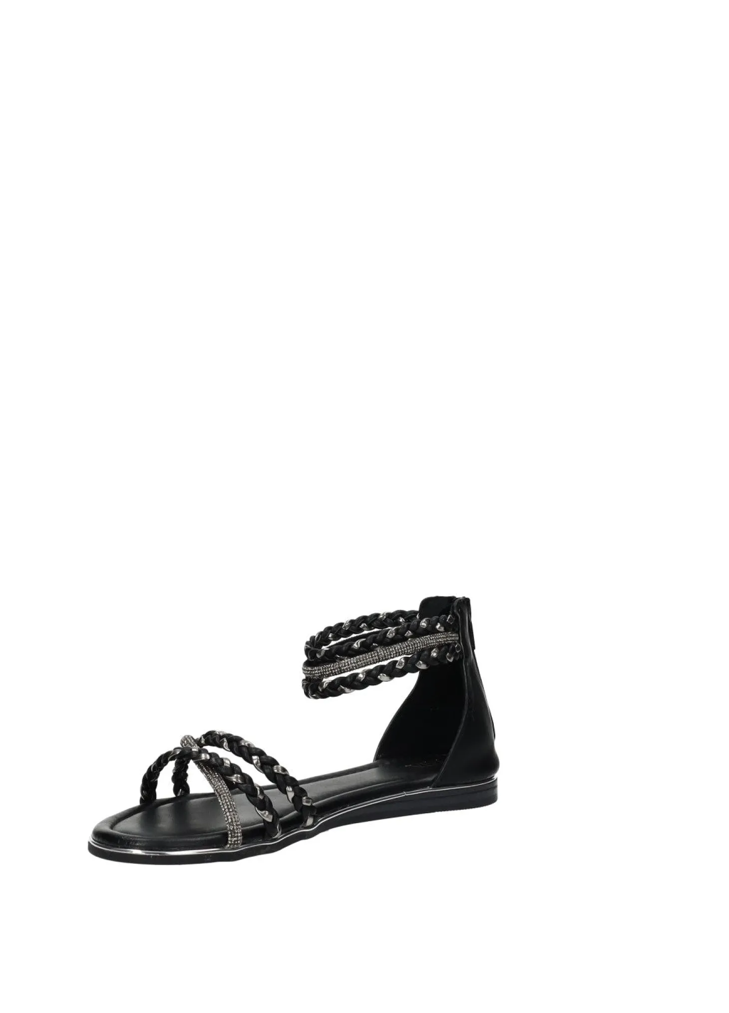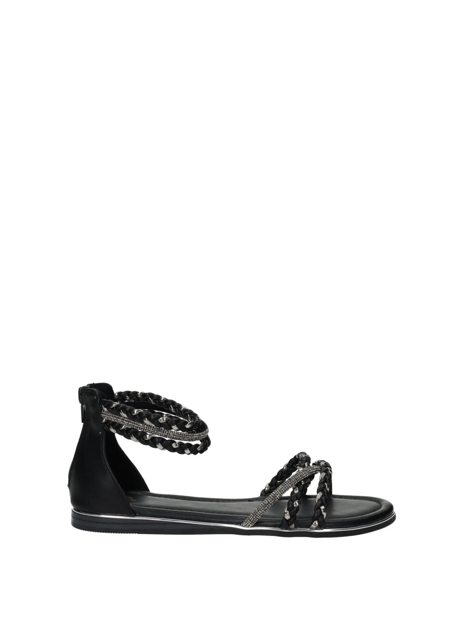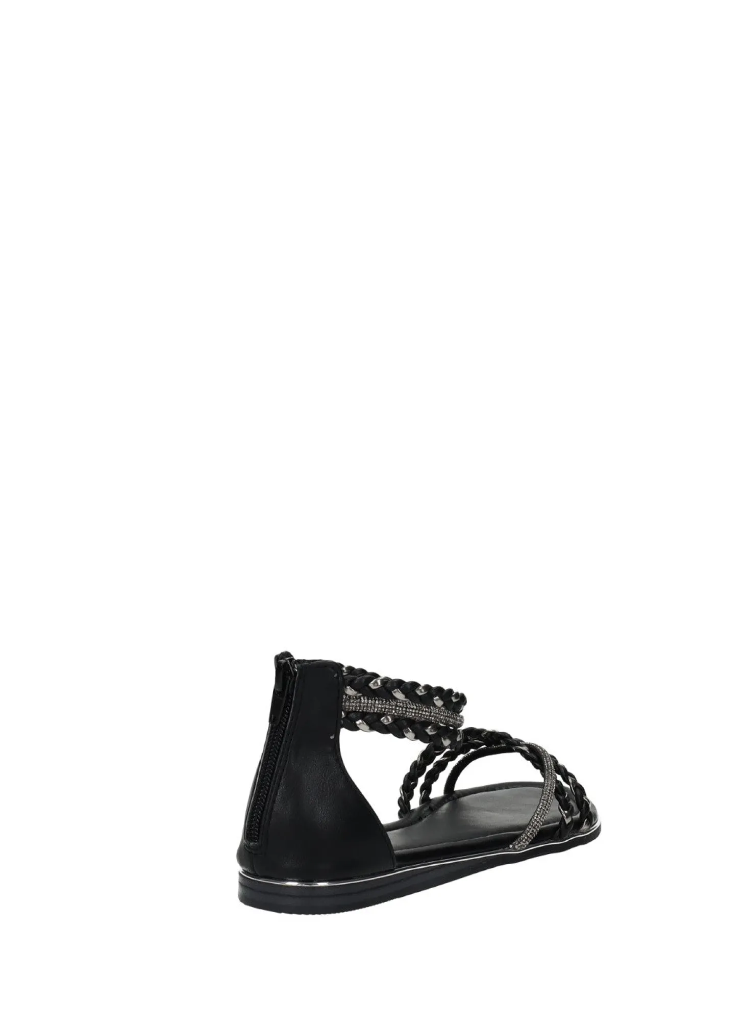 Sandali bassi con strass. cerniera sul retro e fondo in gomma.