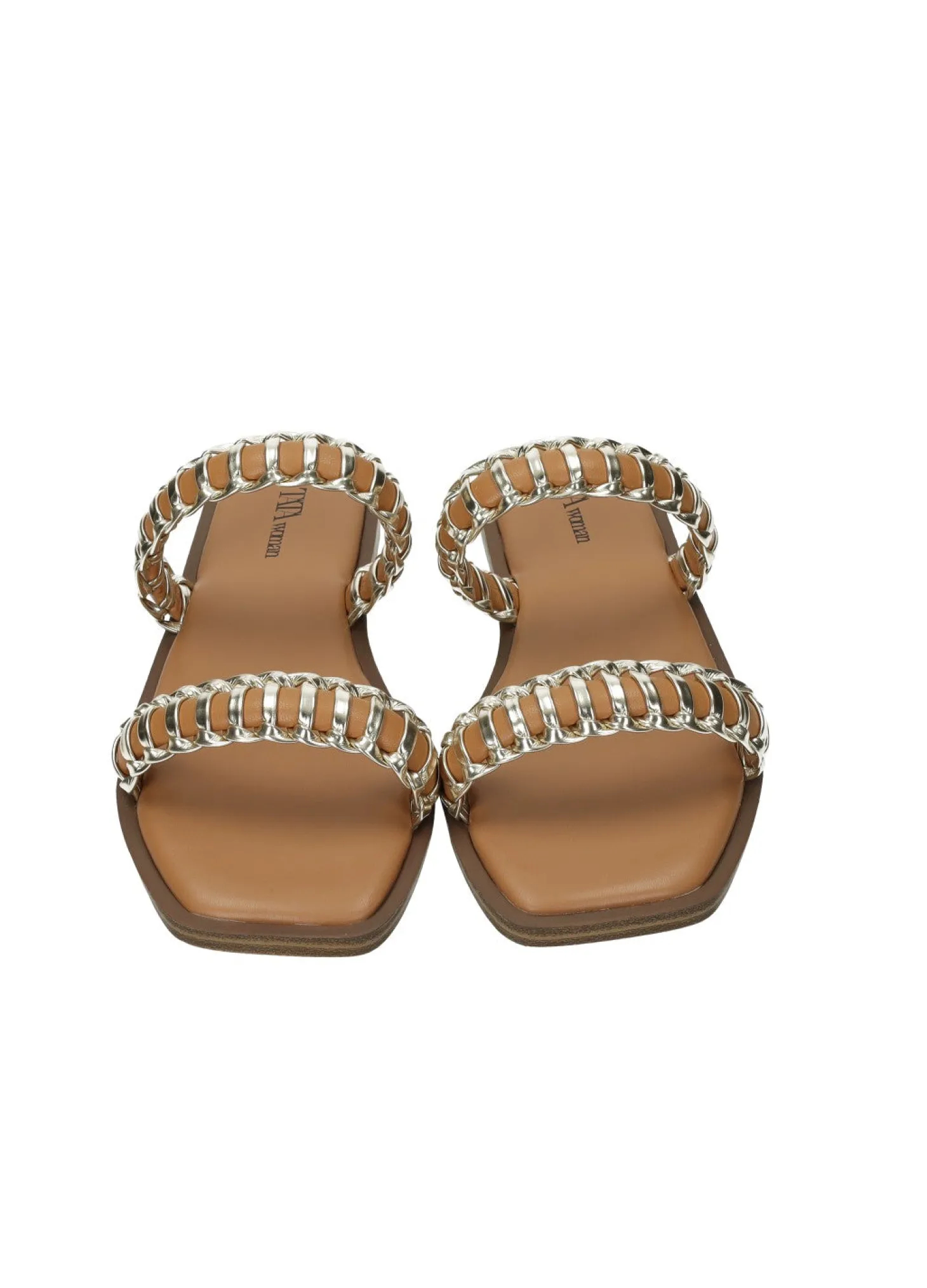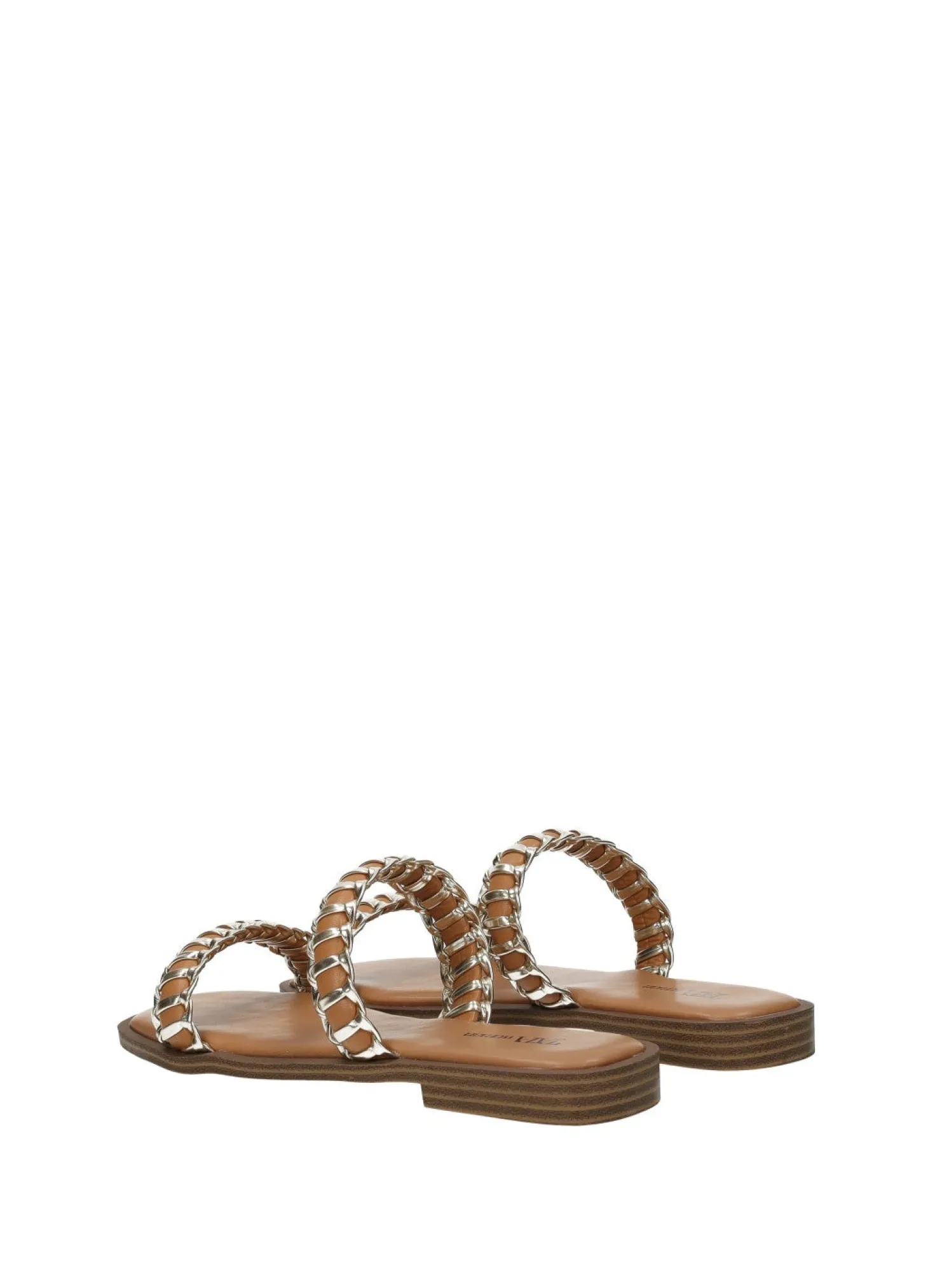 Sandali effetto pelle con fasce decorate e fondo in gomma.