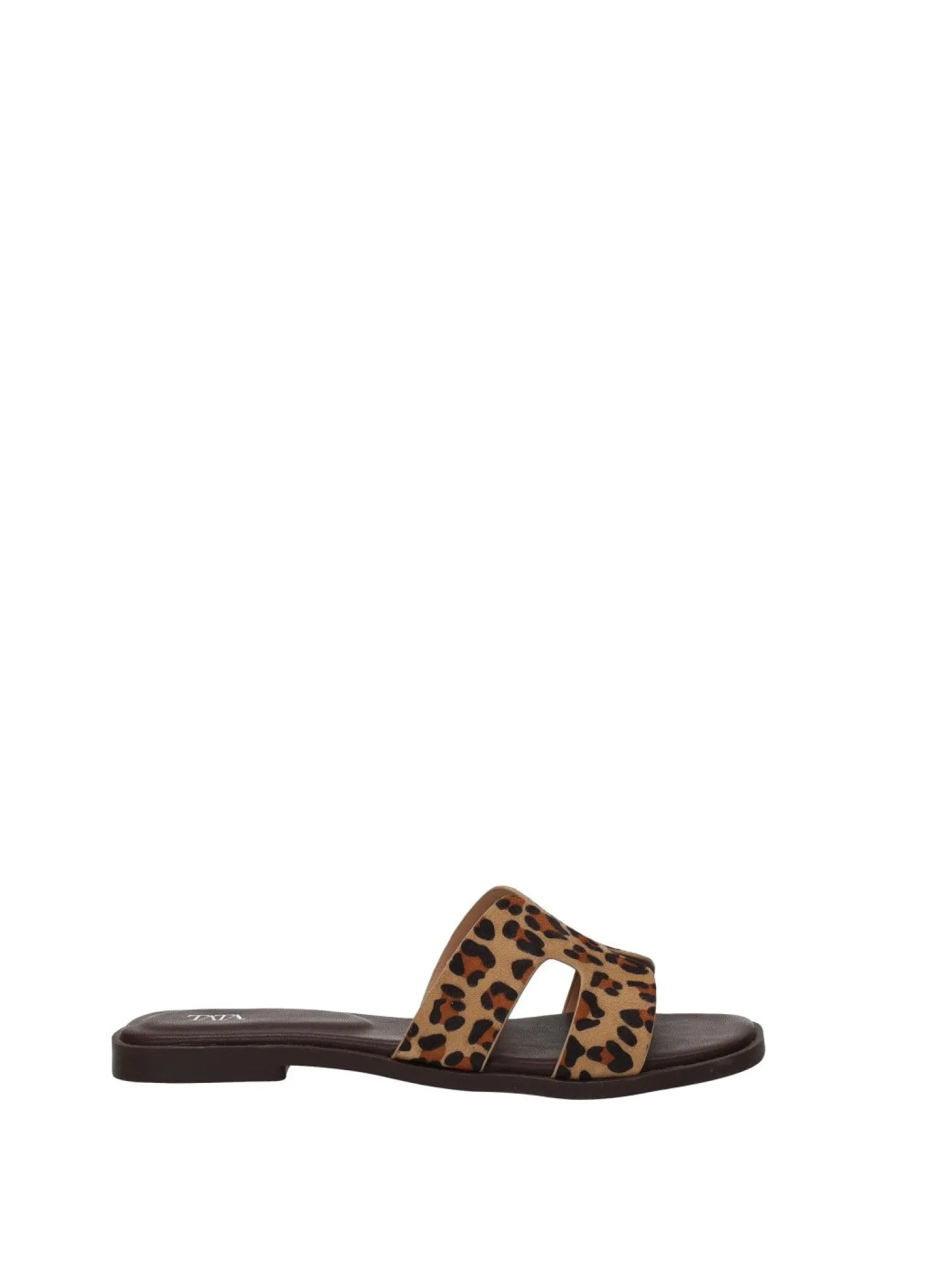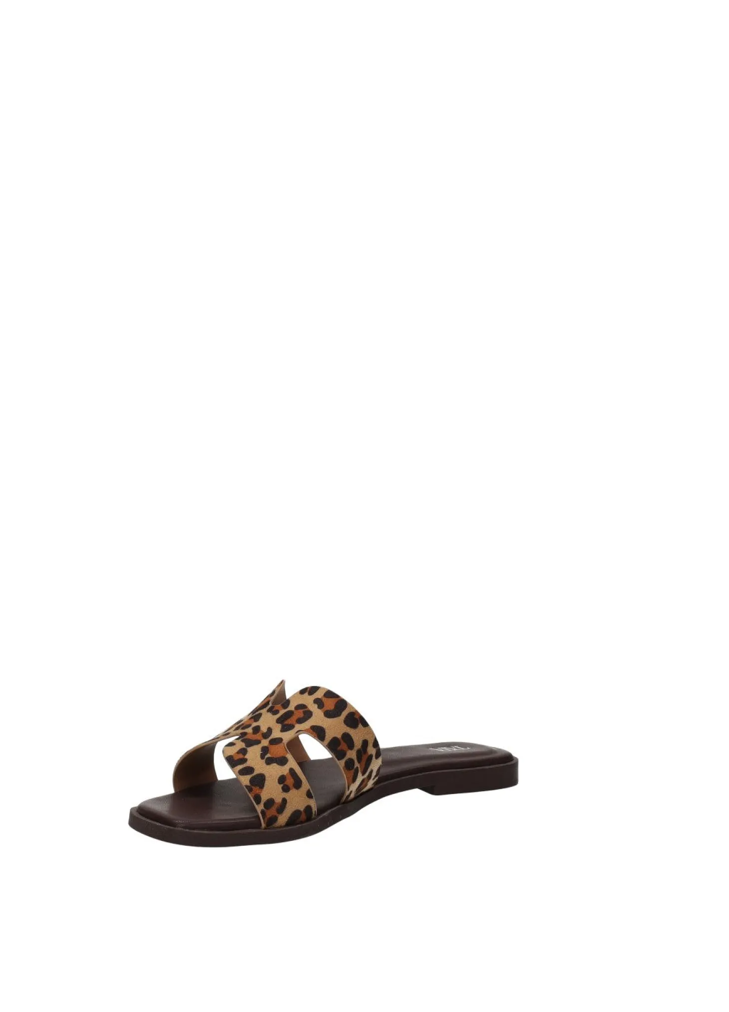 Sandali bassi con tomaia stampa animalier in microfibra e fondo in gomma.