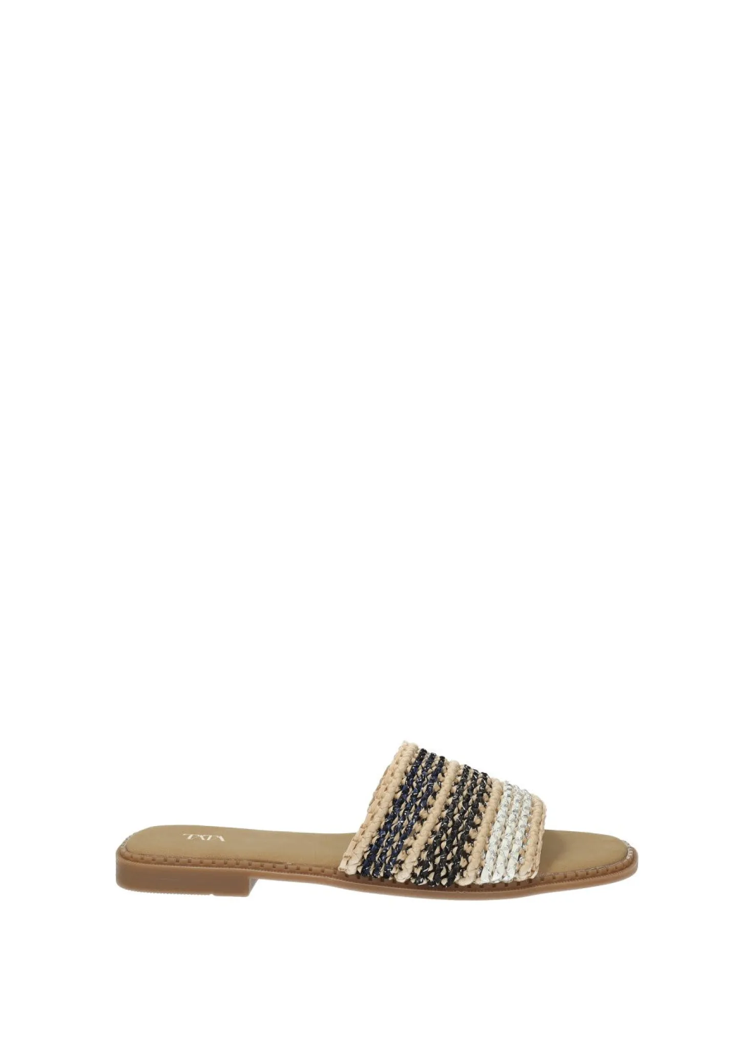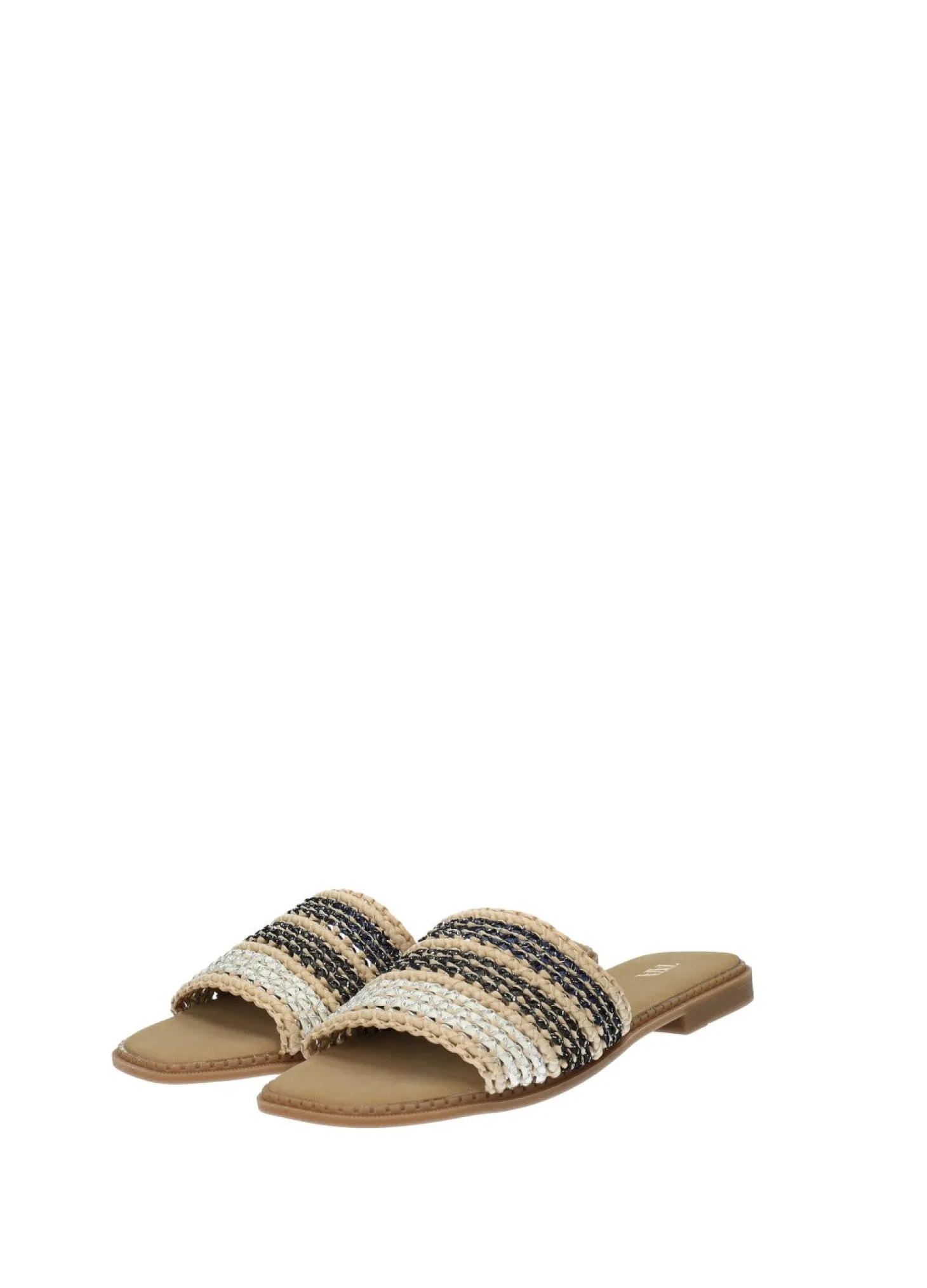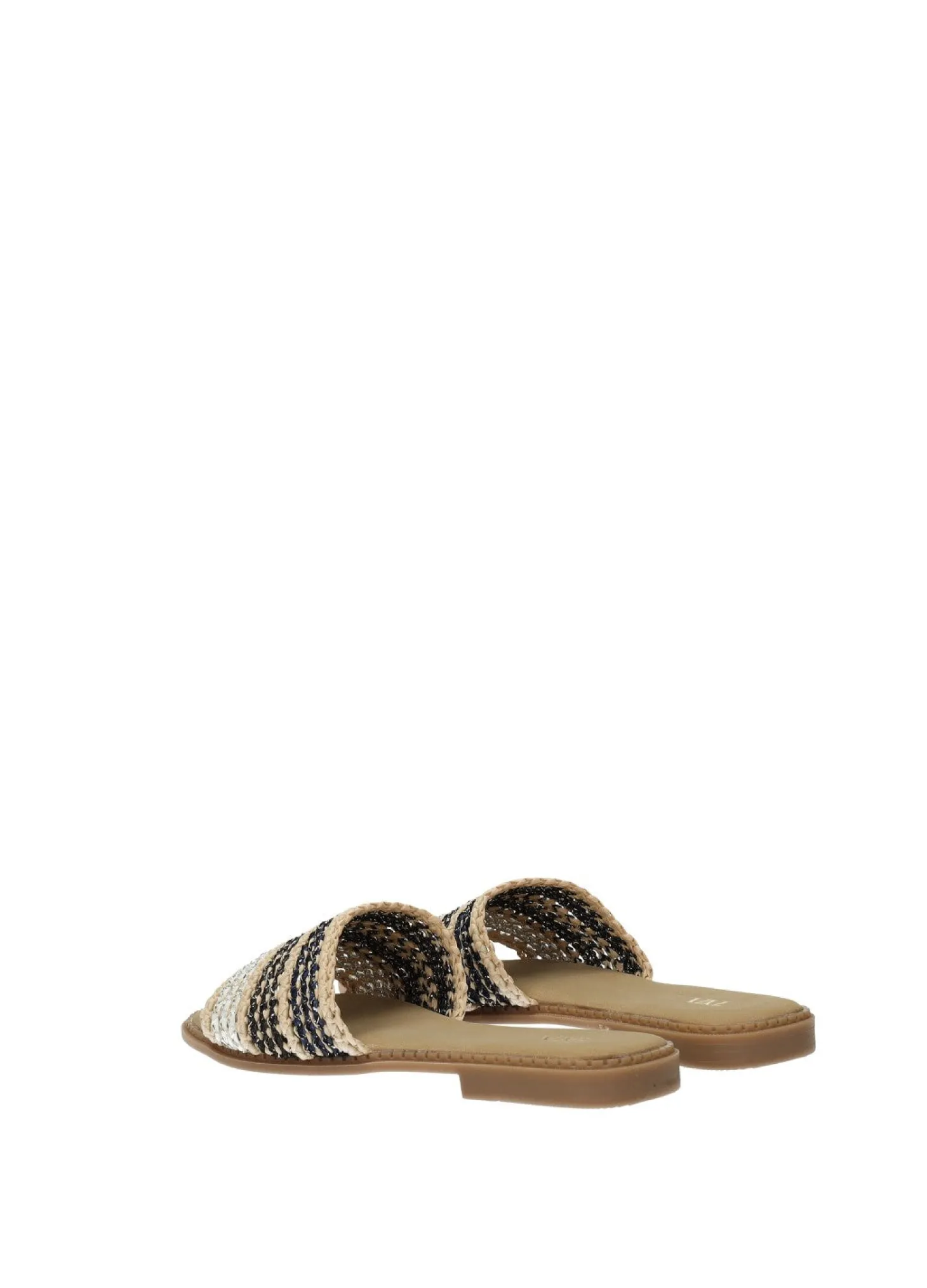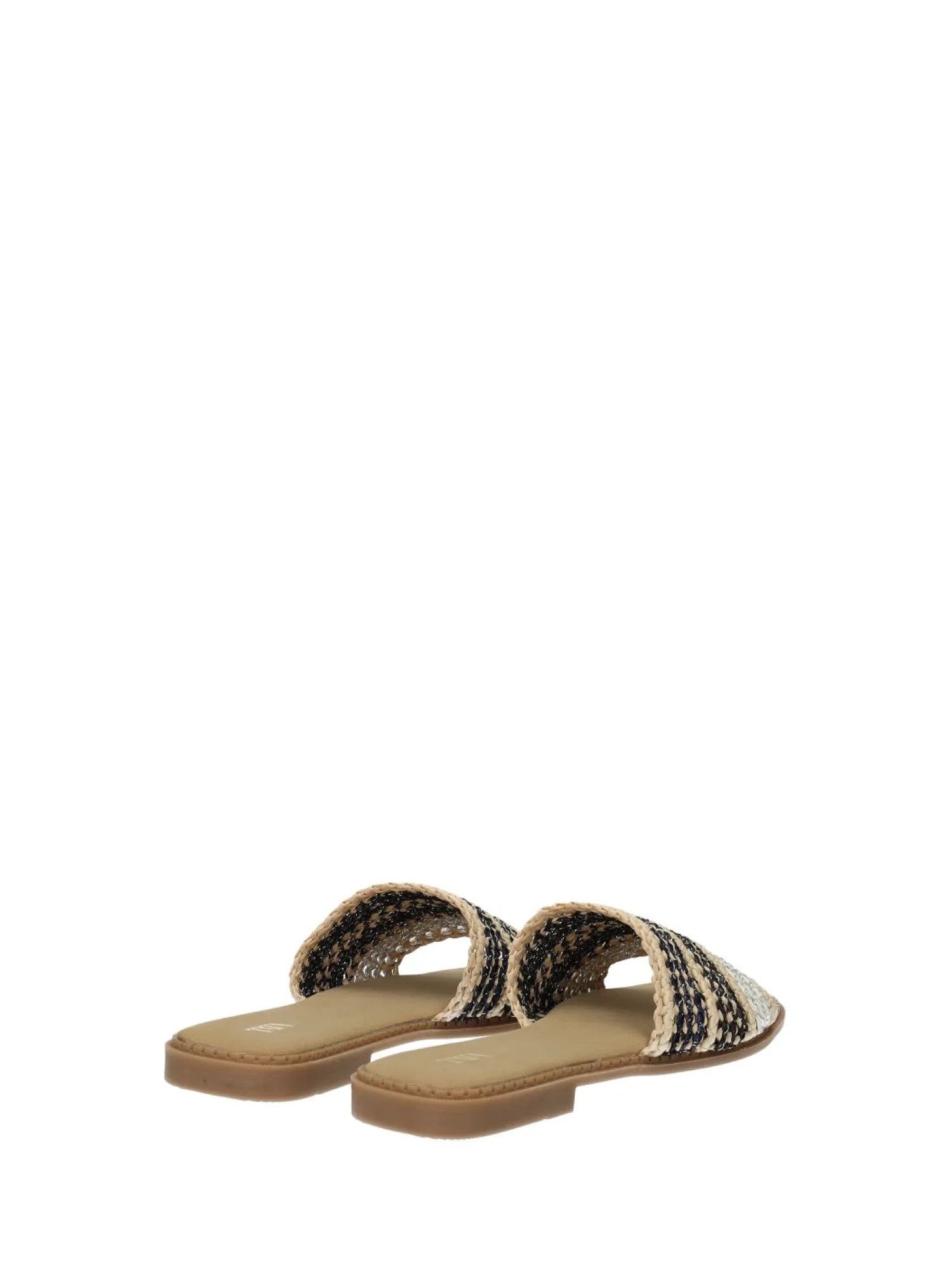 Sandali bassi in rafia con suola in gomma.