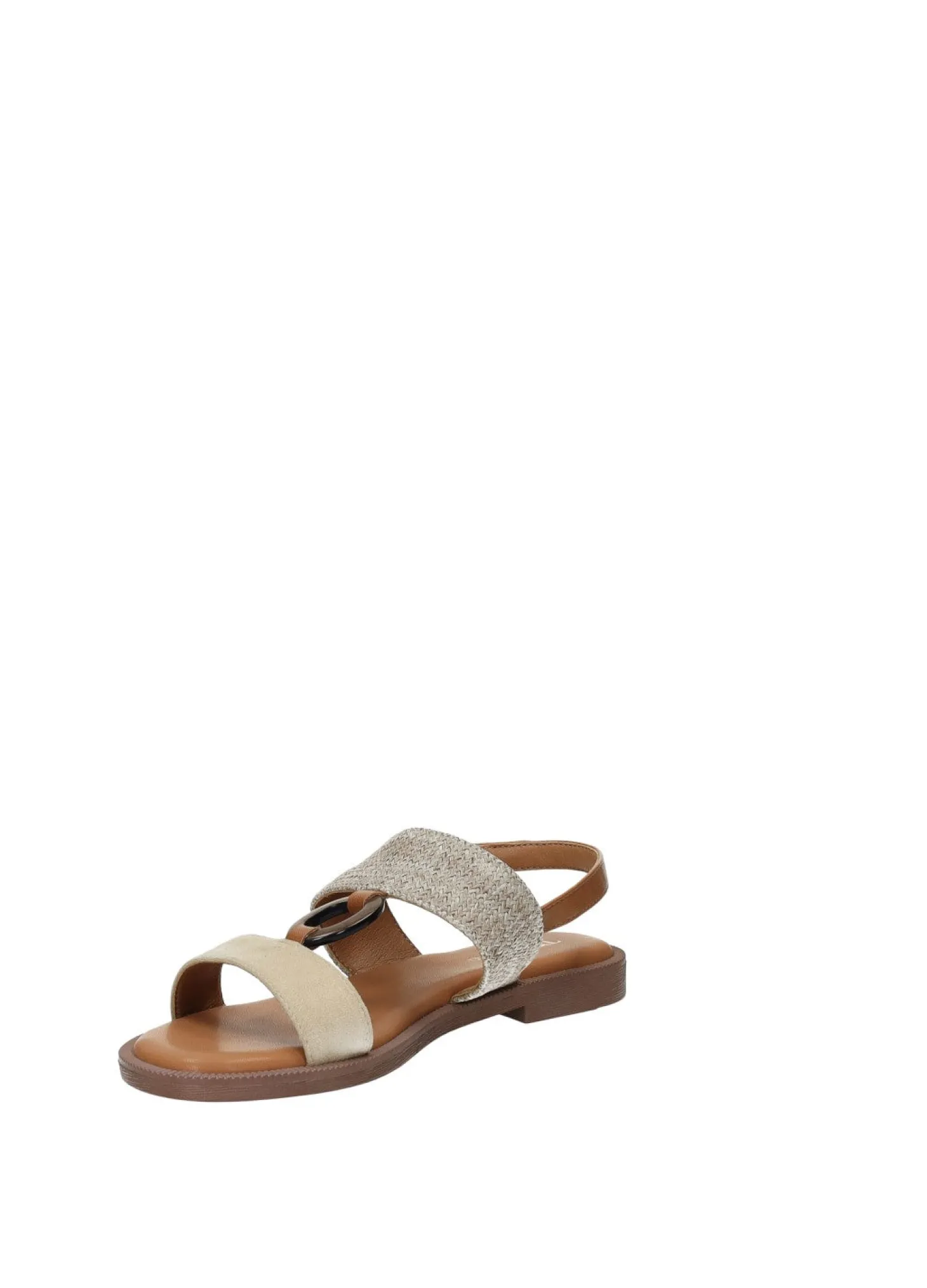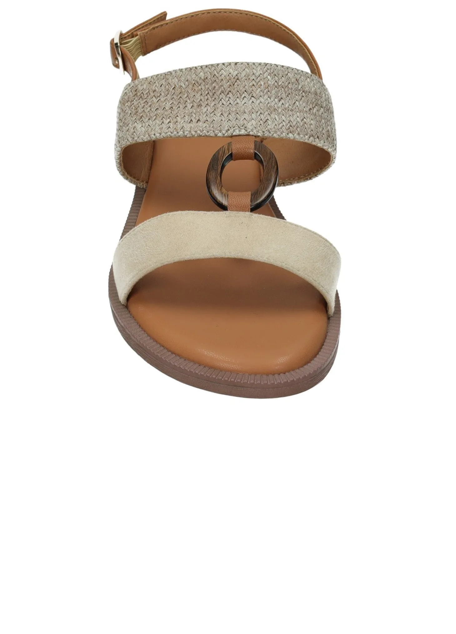 Sandali con tomaia in microfibra. dettaglio in legno e fondo in gomma.