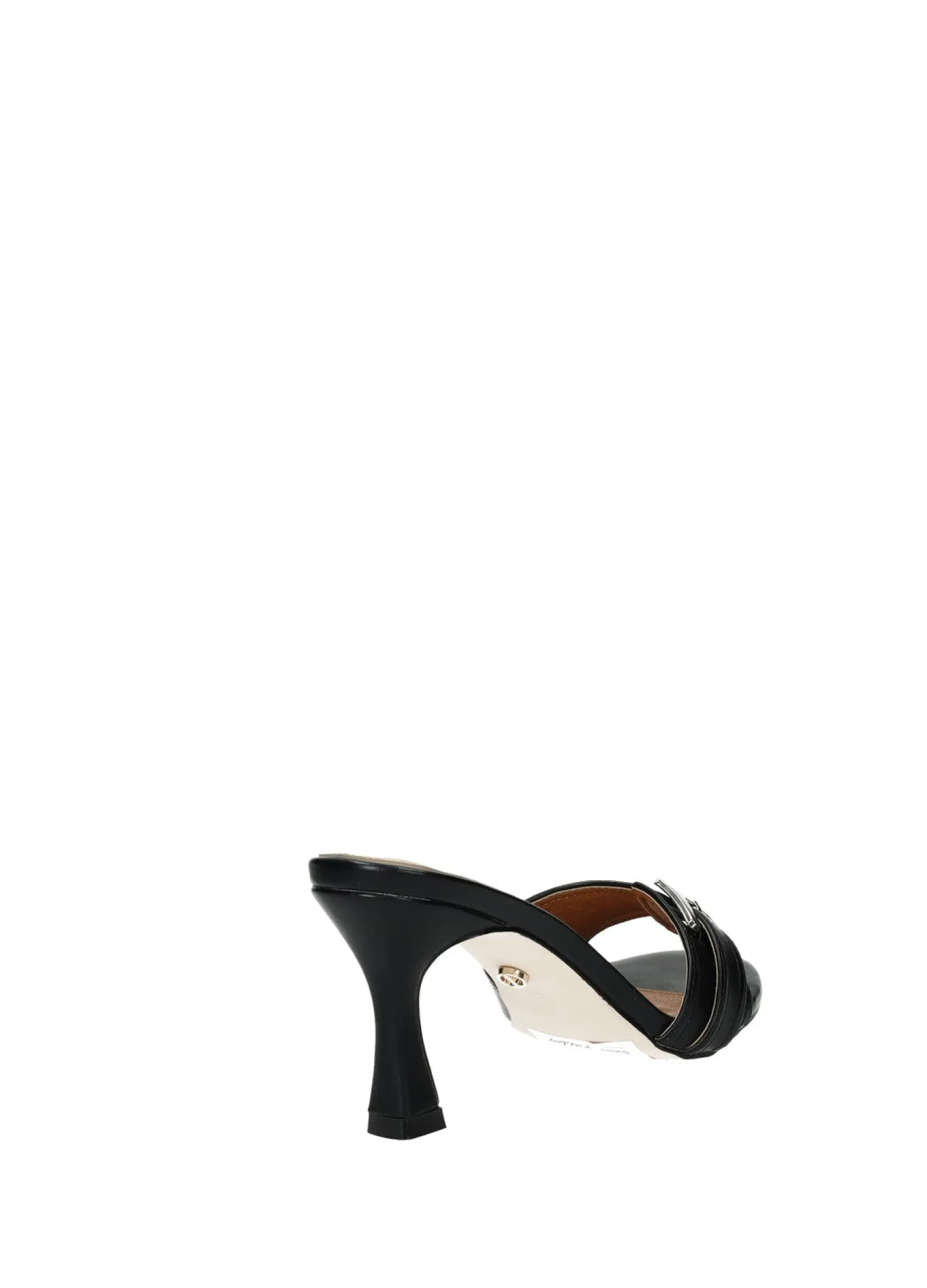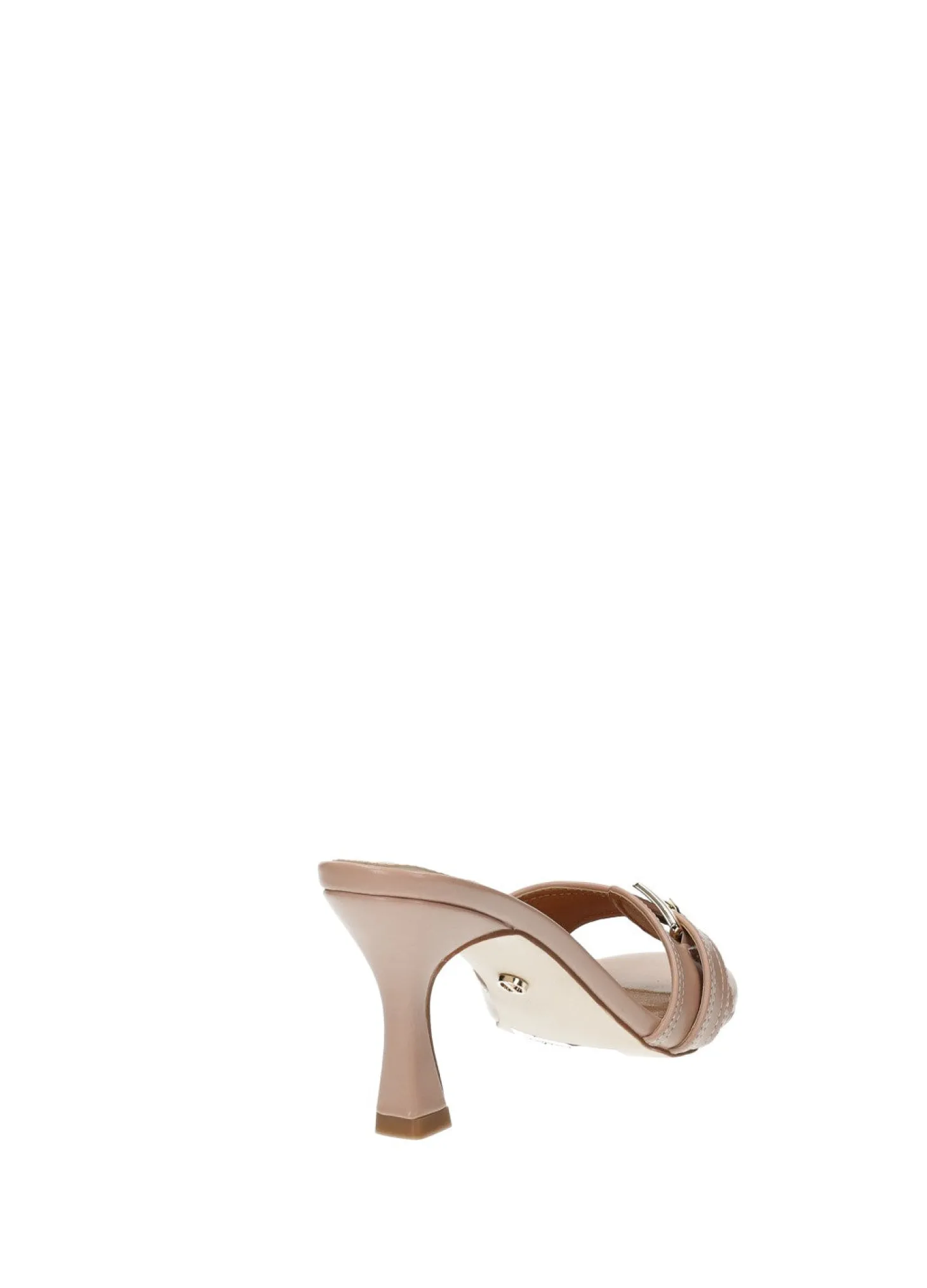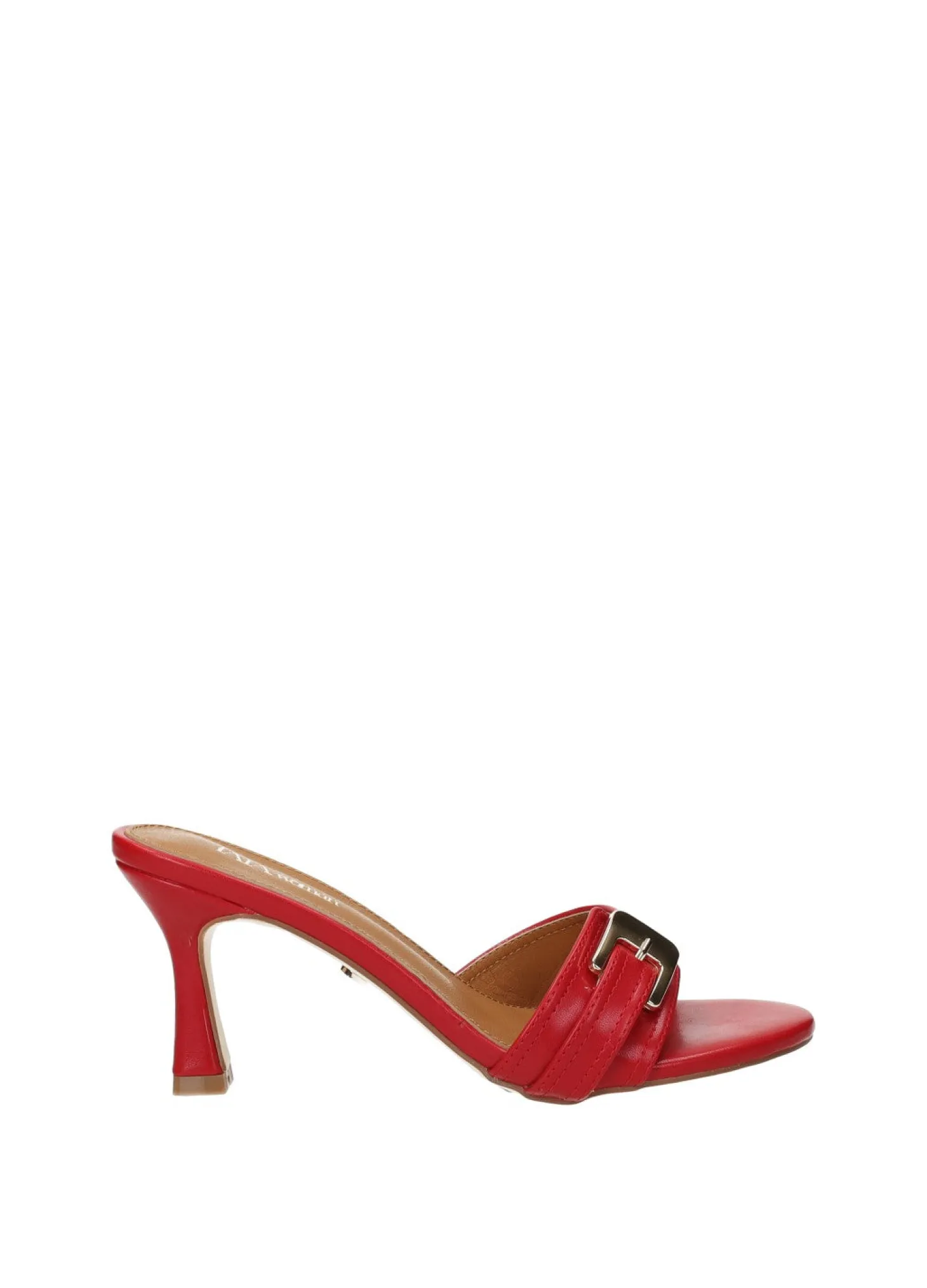 Sandali in ecopelle con fibbia e tacco di 7.5 cm.