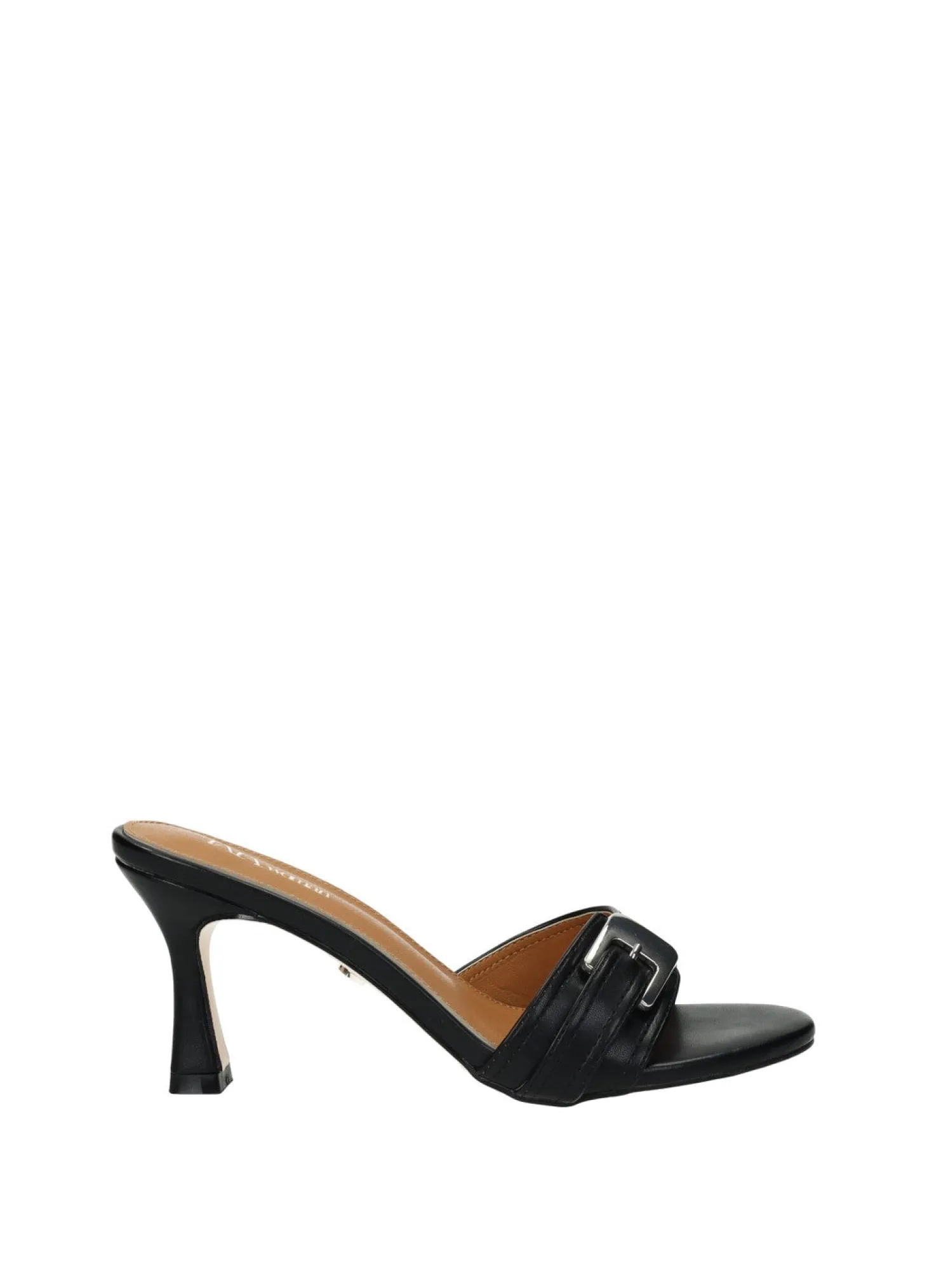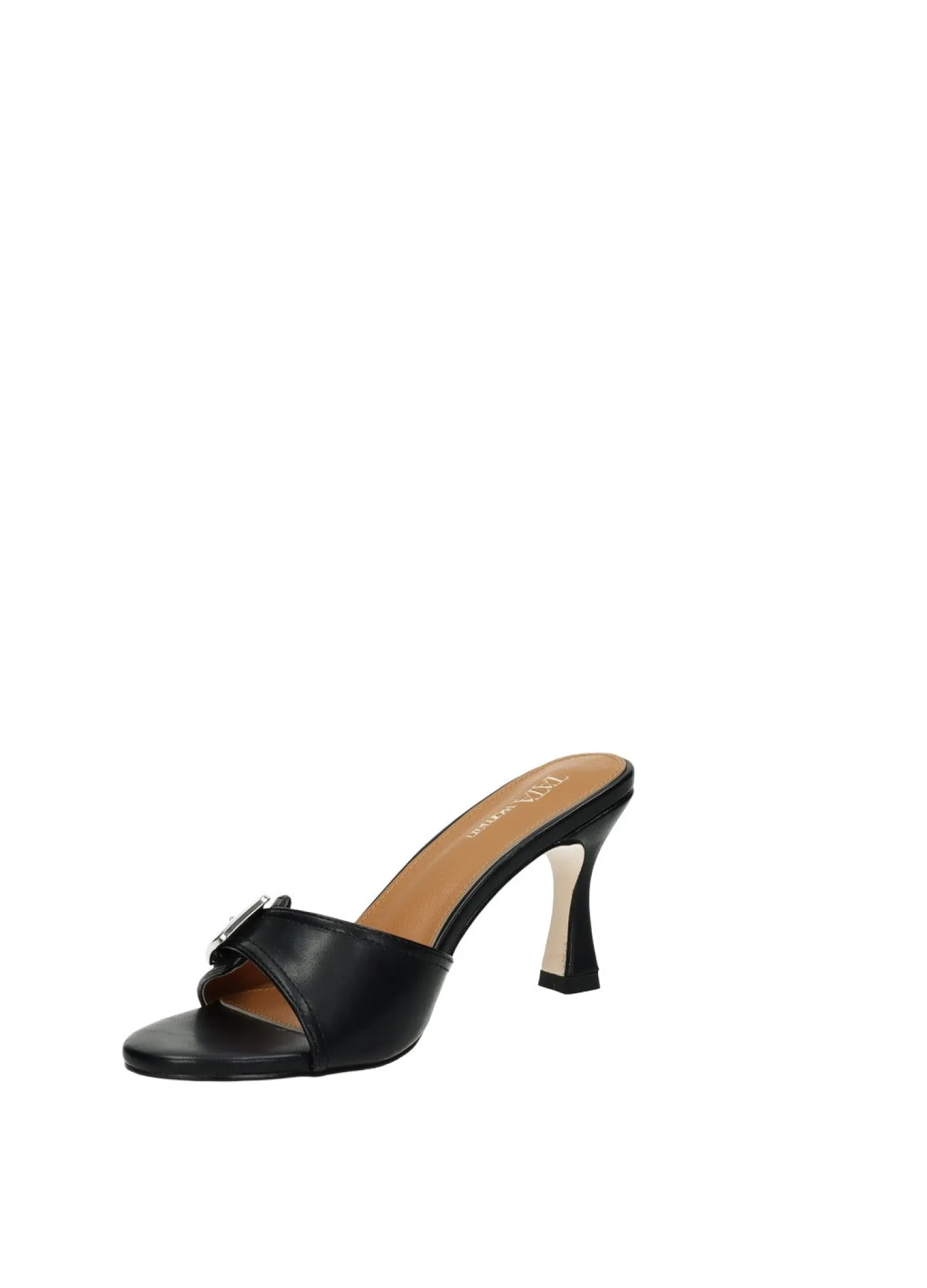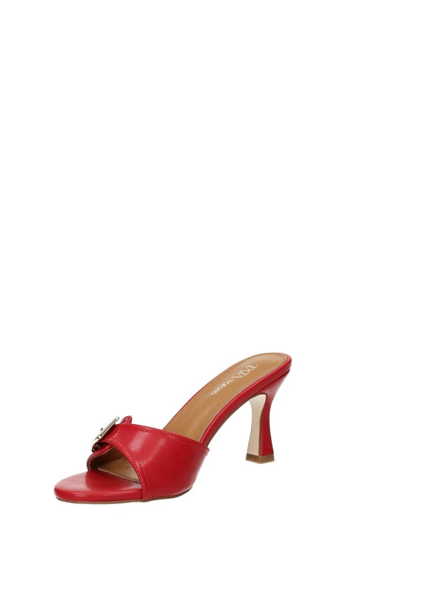 Sandali in ecopelle con fibbia e tacco di 7.5 cm.