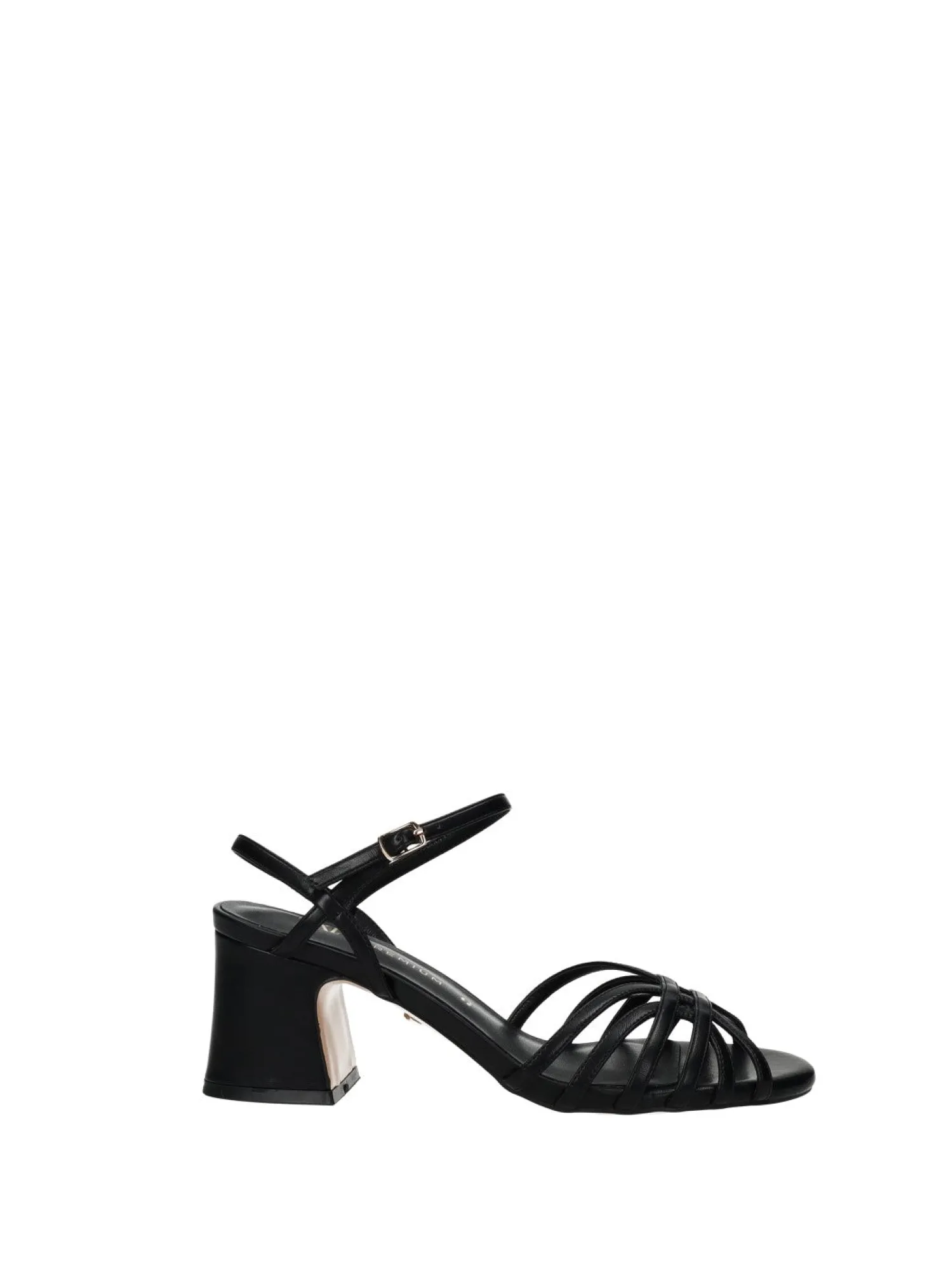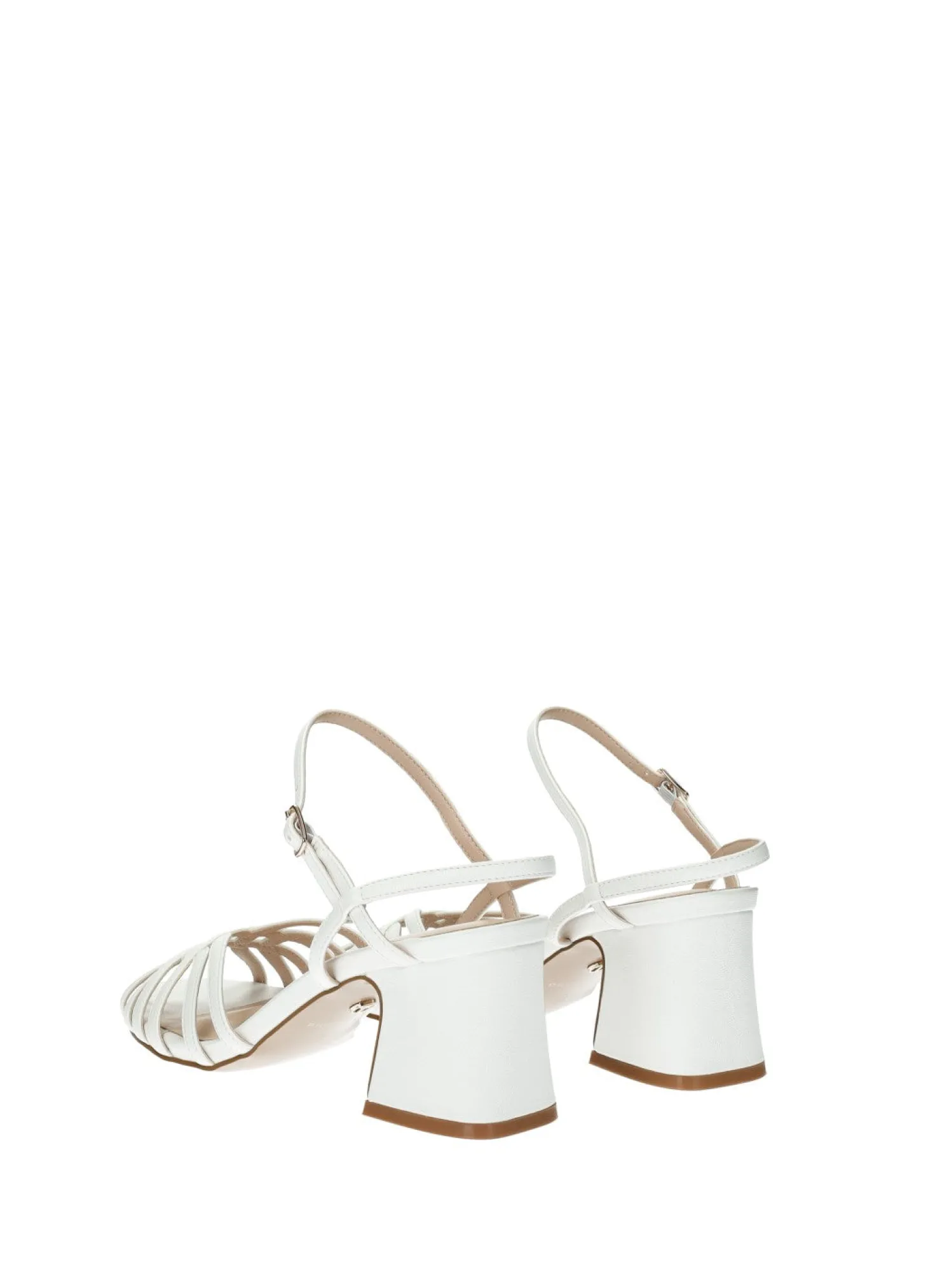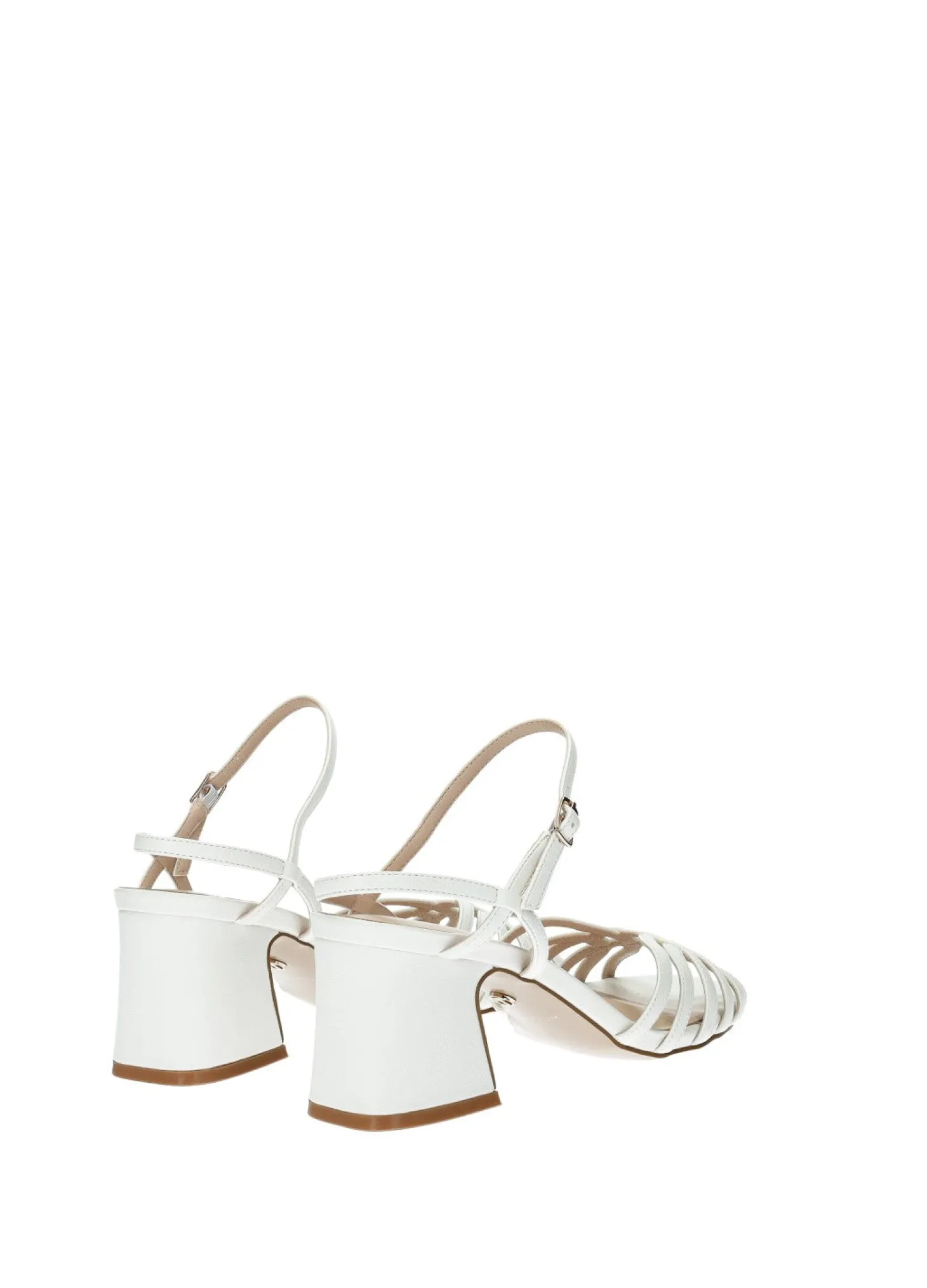 Sandali effetto pelle con listini incrociati e tacco di 6.5 cm.