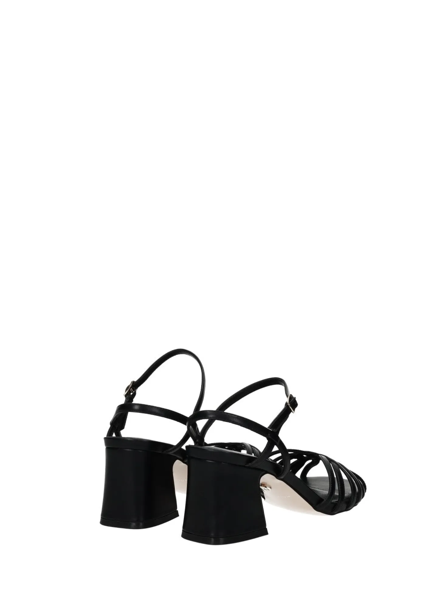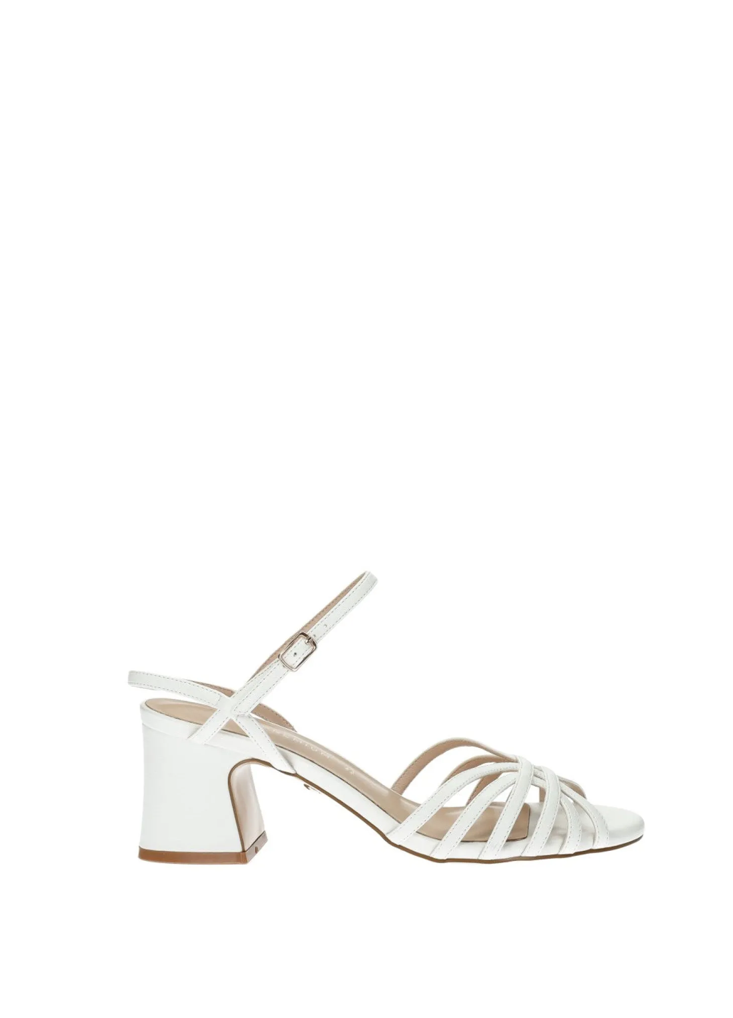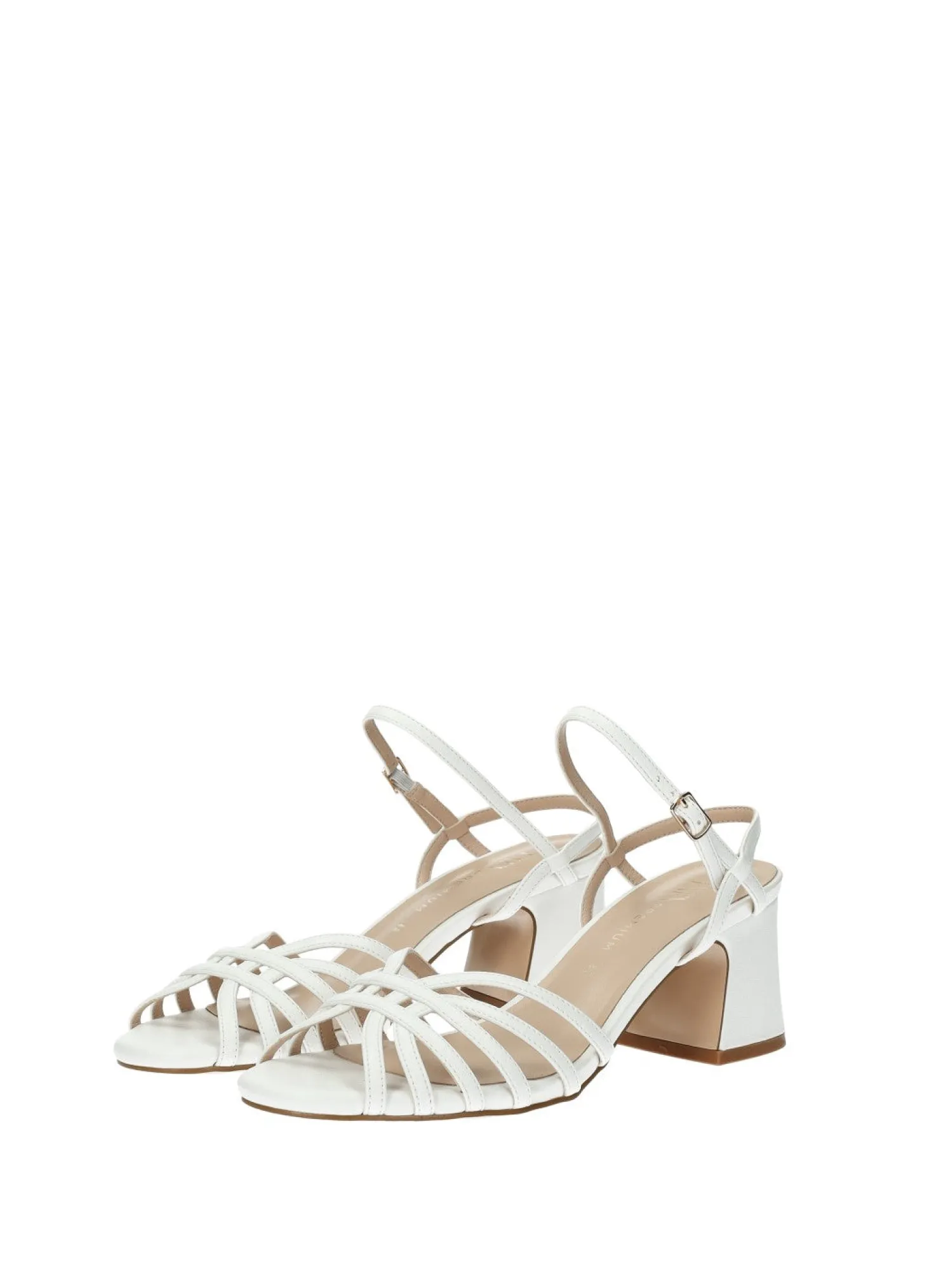 Sandali effetto pelle con listini incrociati e tacco di 6.5 cm.