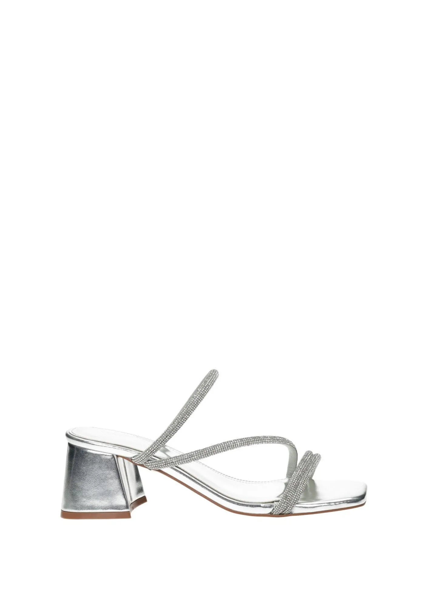 Sandali effetto pelle con tacco di 6 cm e listini strass.
