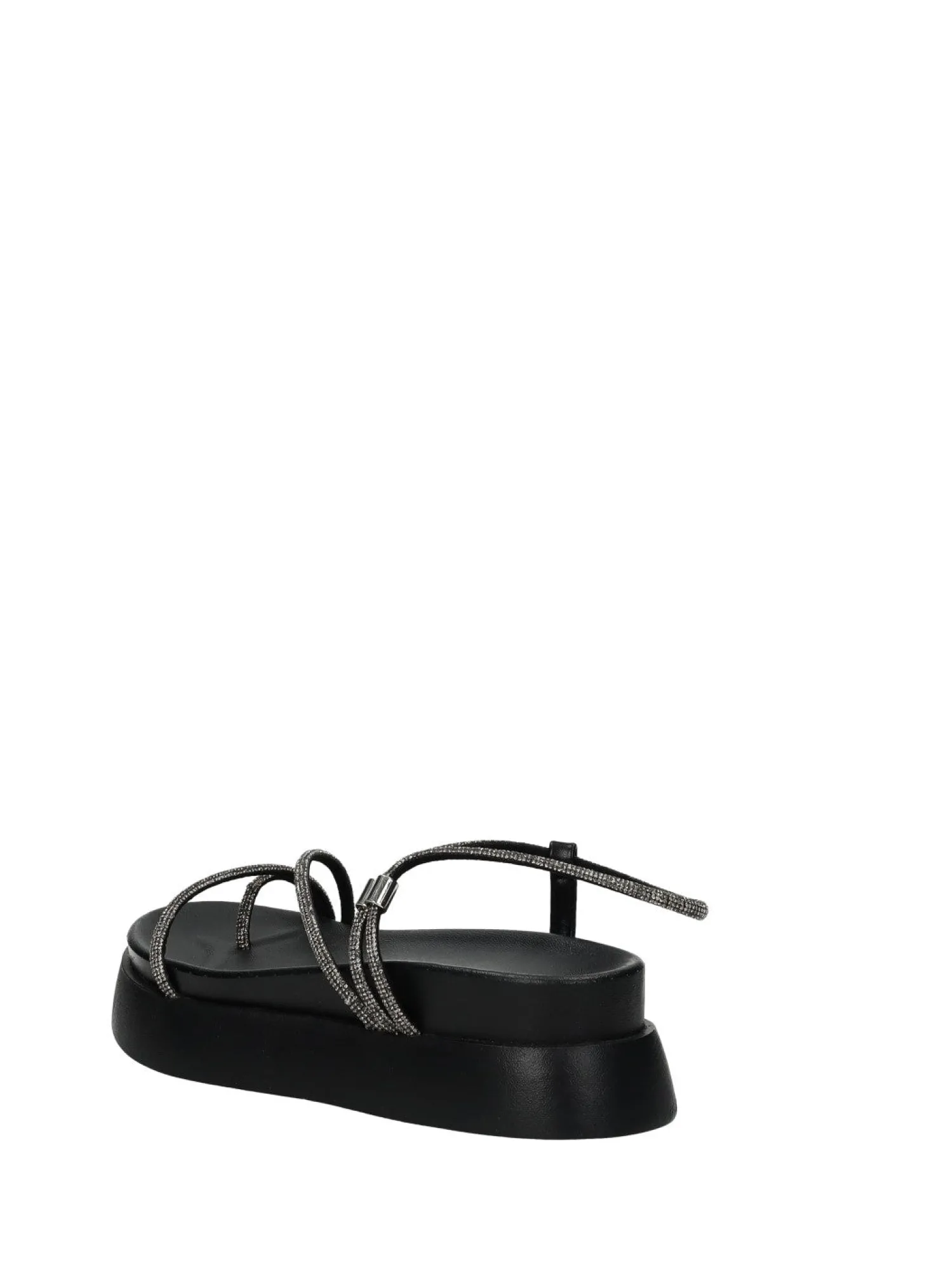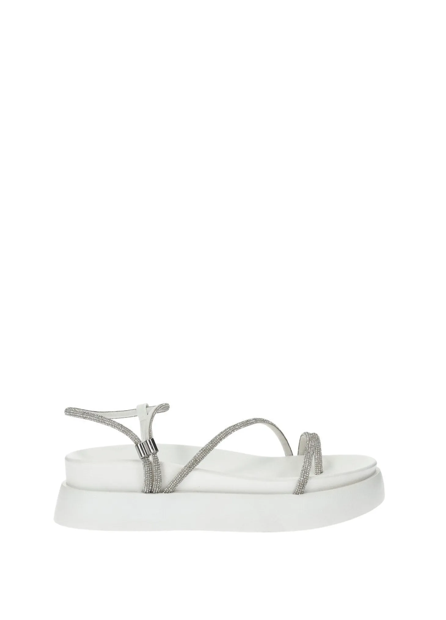 Sandali con listini strass e zeppa media di 3 cm.