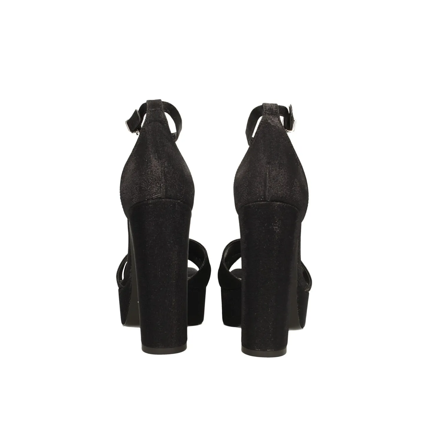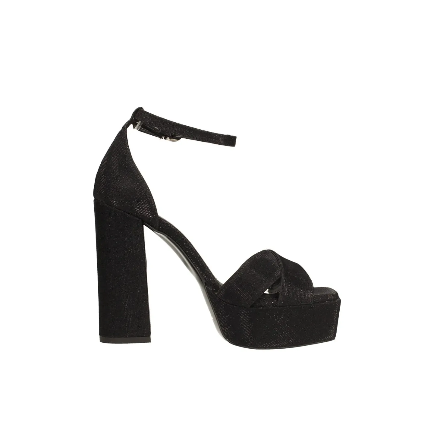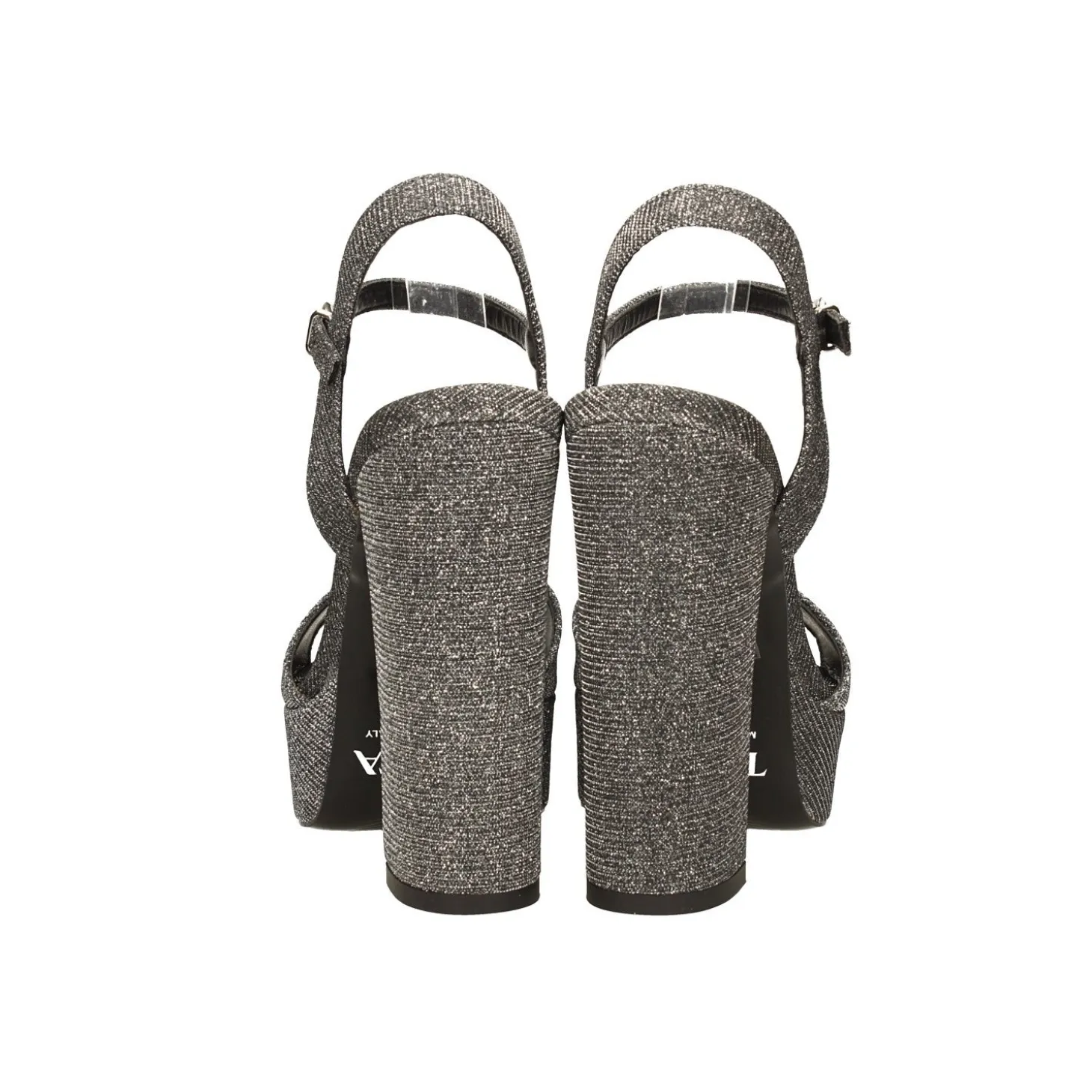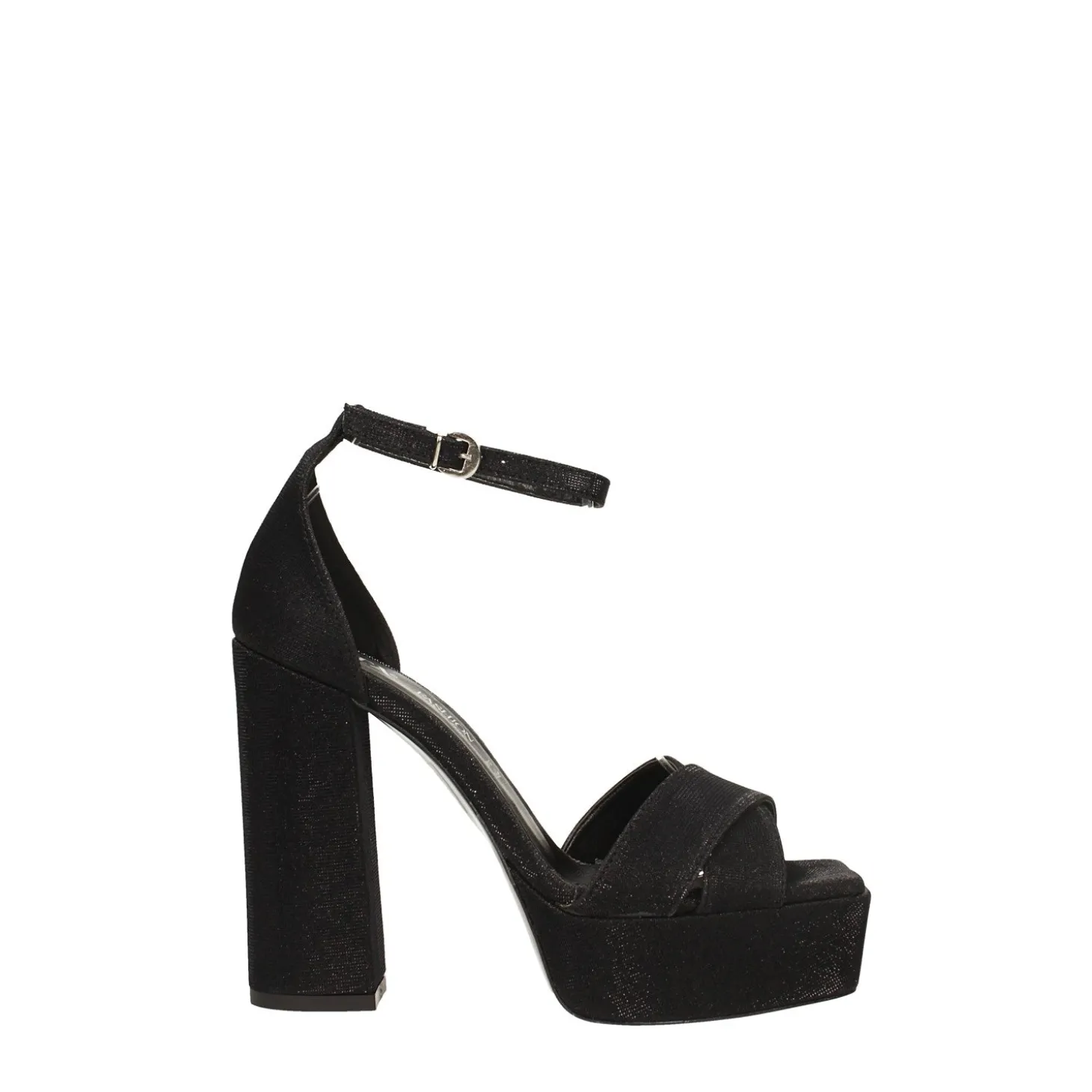 Sandali. glitterati.Cinturino alla caviglia con fibbia. Punta squadrata.Sottopiede in vera pelleProdotto Made in ItalyAltezza tacco: 13cmAltezza plateau: 3cm
