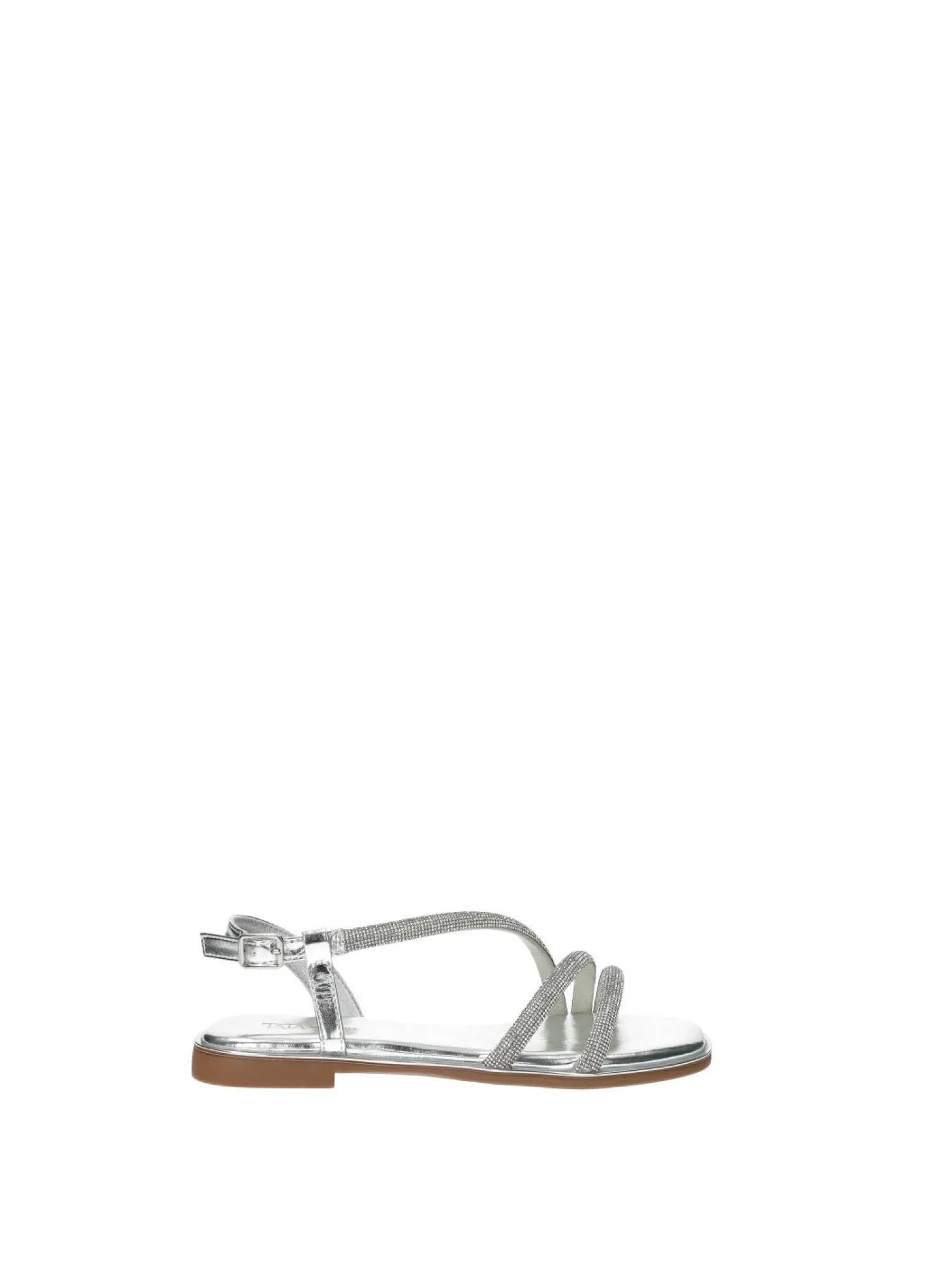 Sandali bassi effetto pelle con listini strass e fondo in gomma.