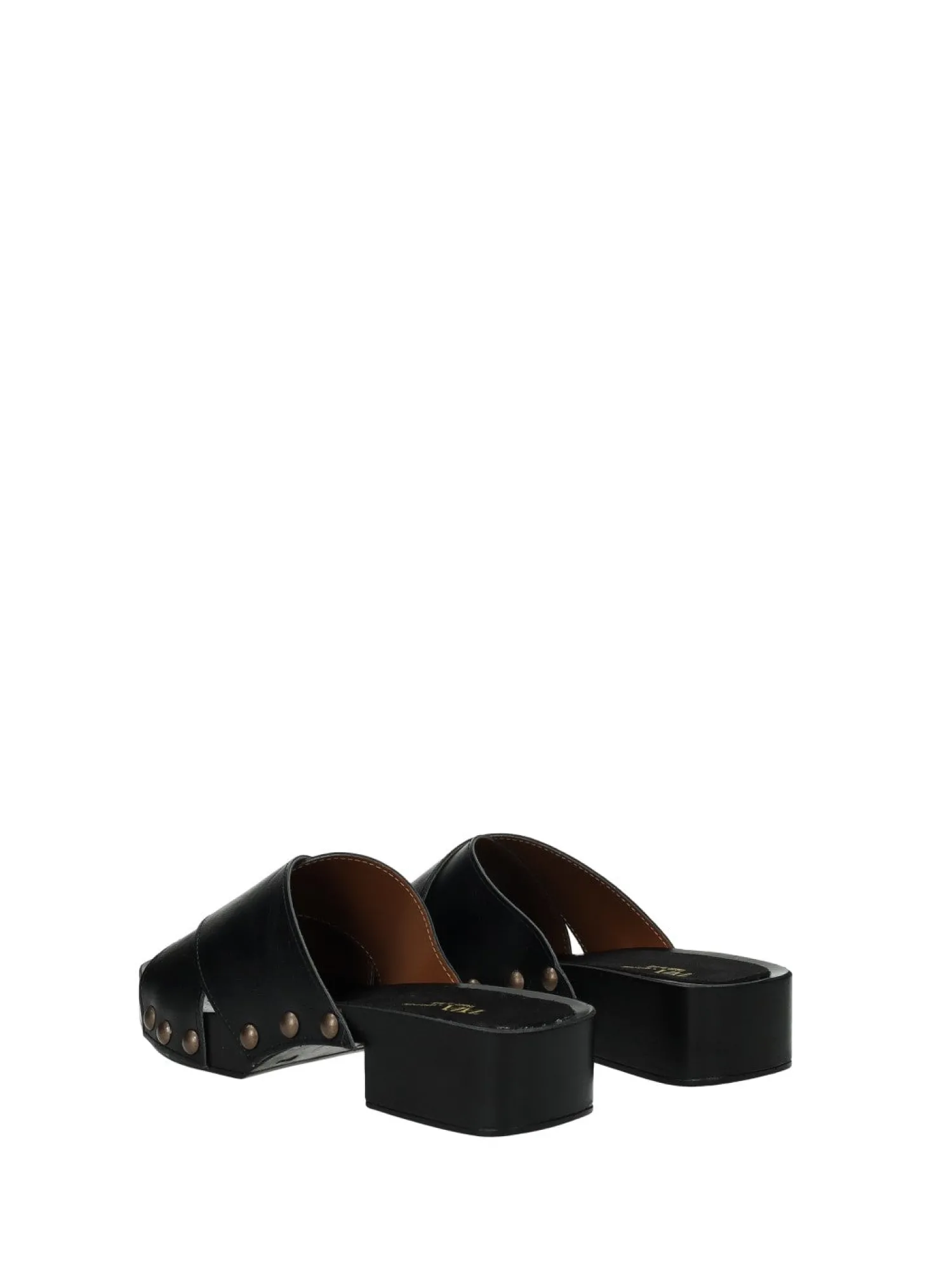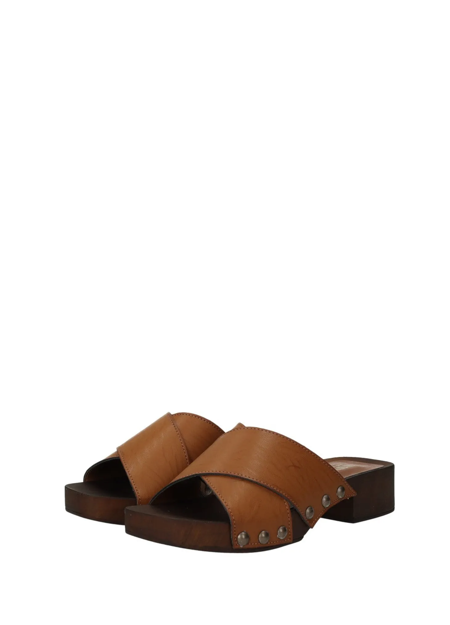 Sandali con tacco basso di 3.5 cm e fascia incrociata.