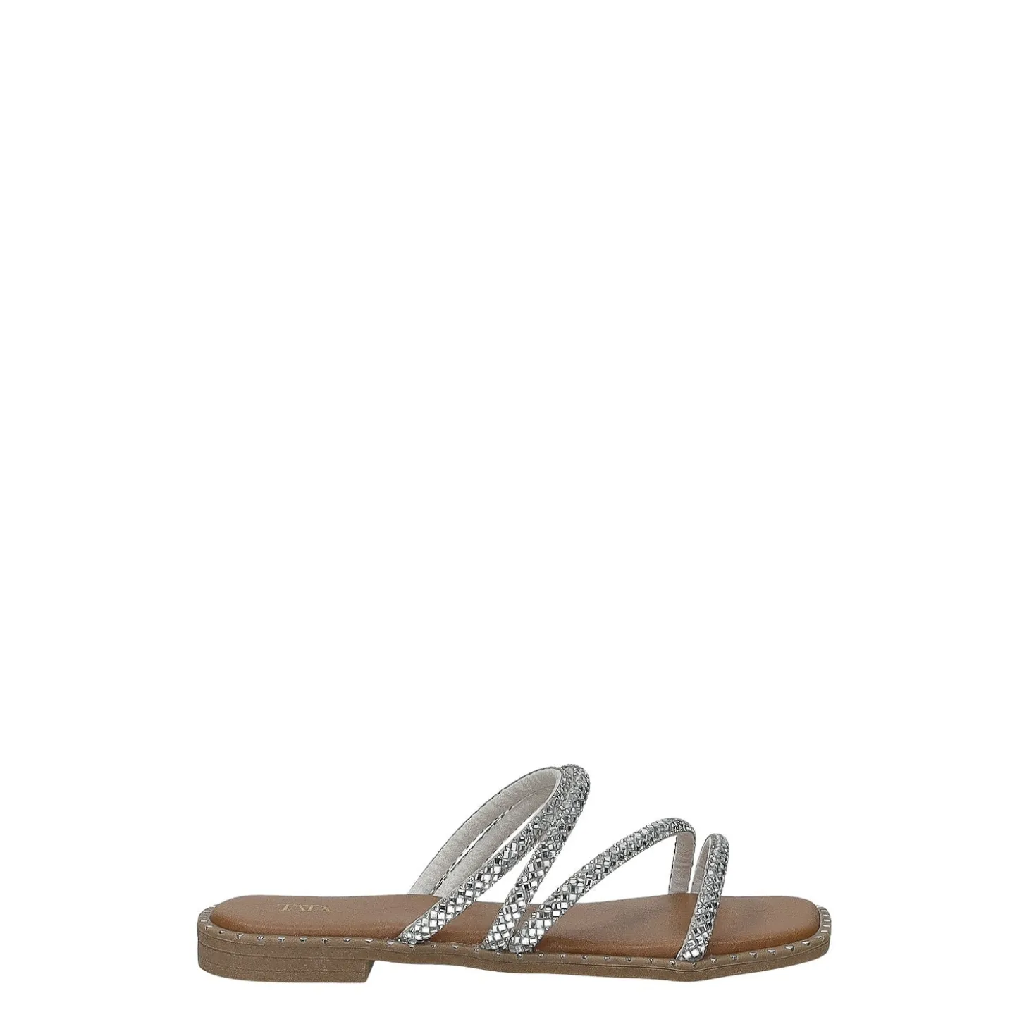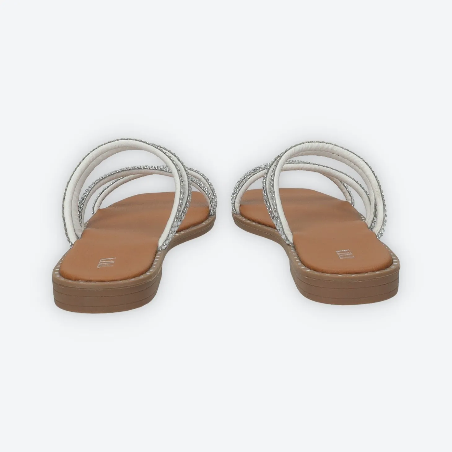 Sandali flat in ecopelle con listini ricoperti di strass luminosi