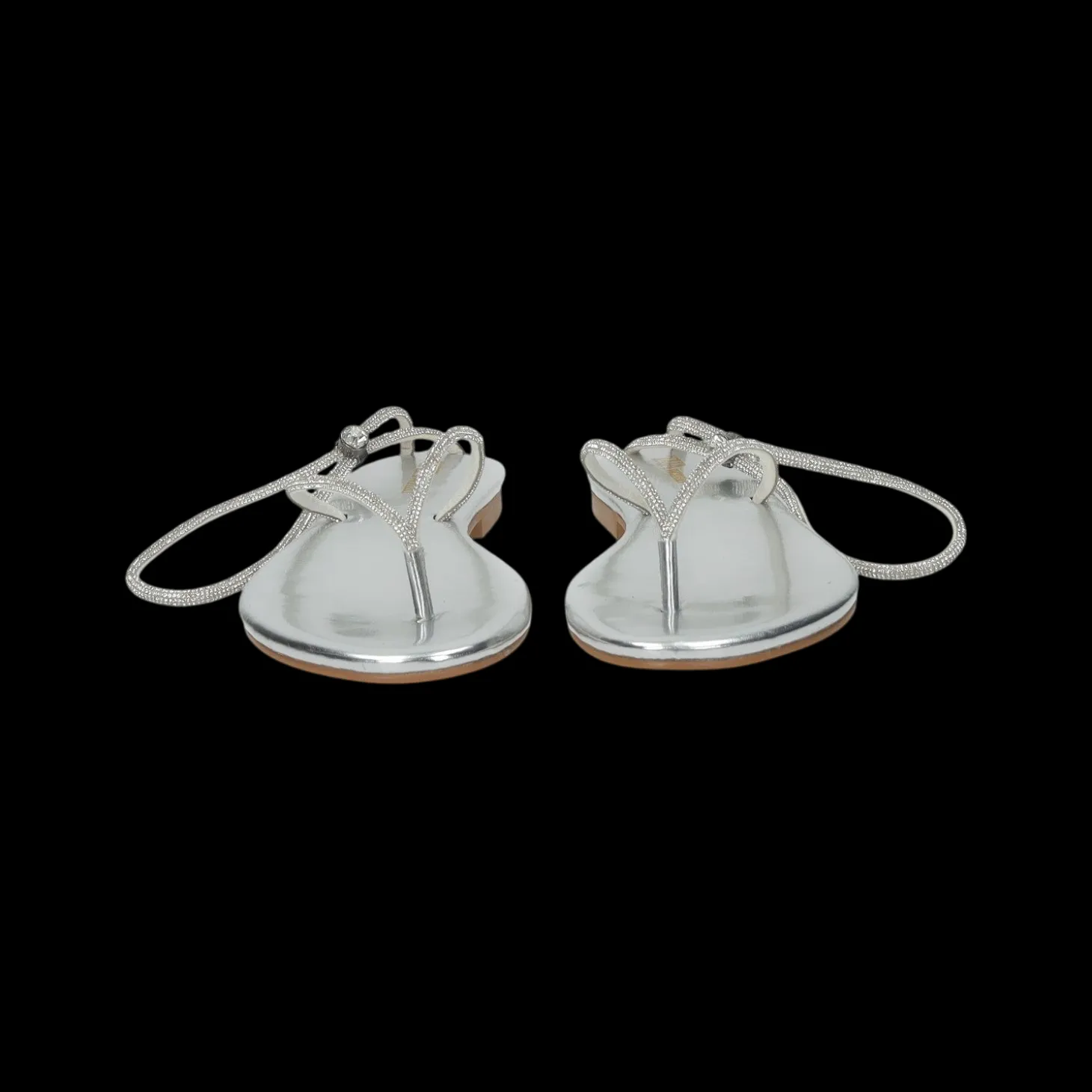 Sandali ricoperti da strass luminosi.Cinturino regolabile alla caviglia con gioiello.
