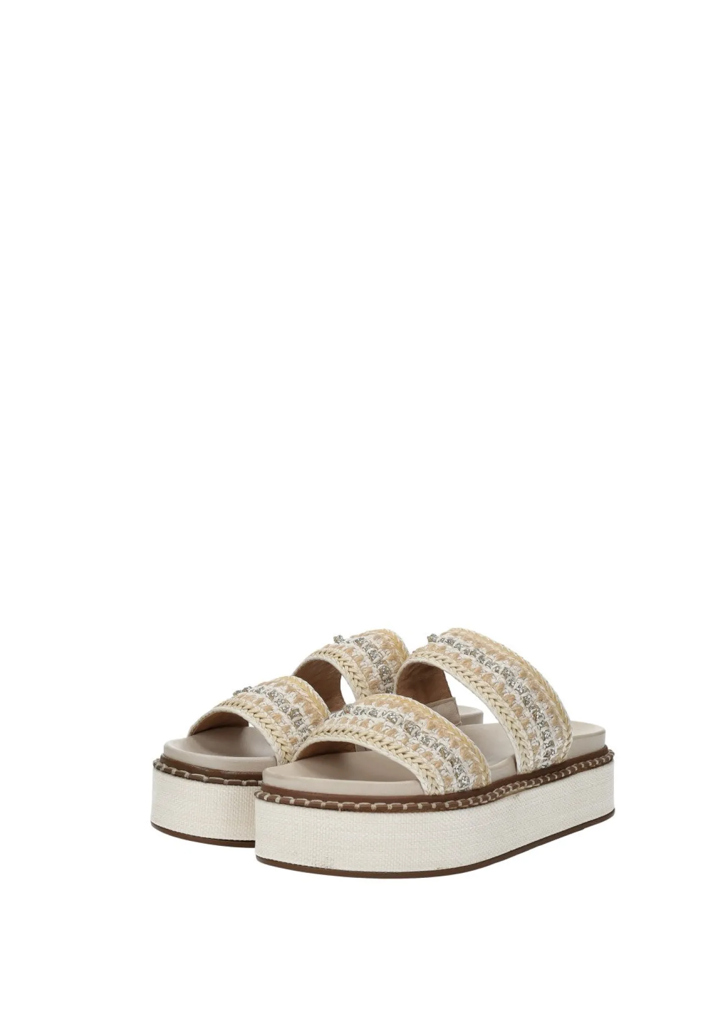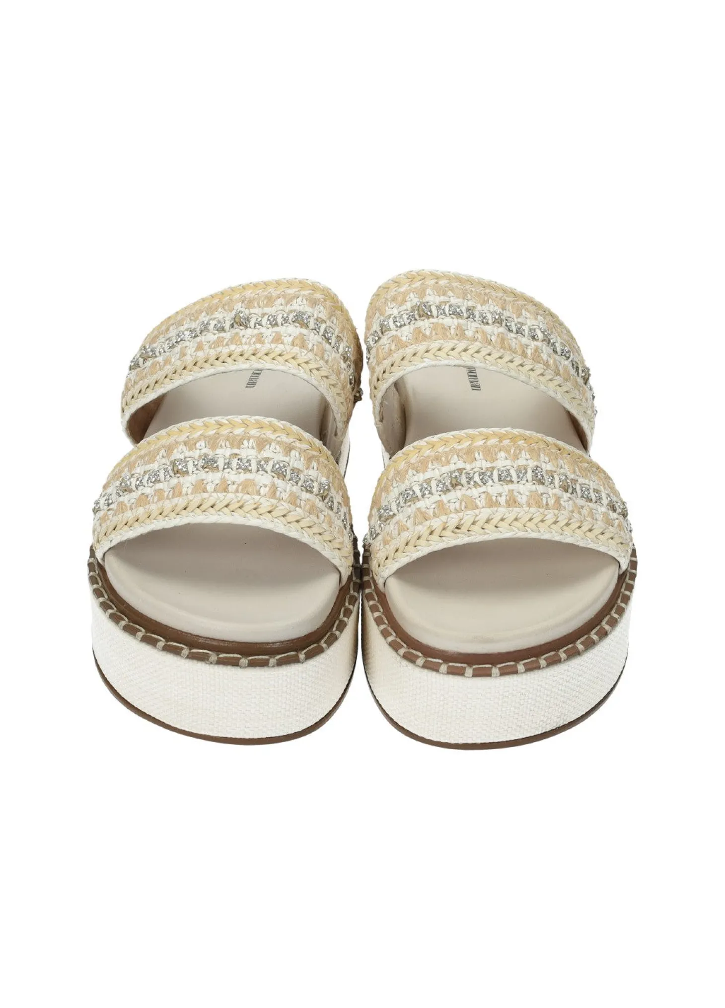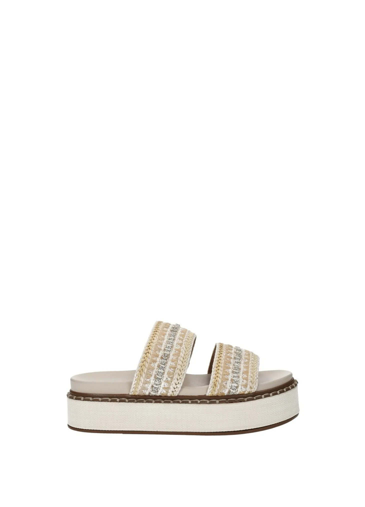 Sandali in rafia con tomaia ricamata e zeppa di 3.5 cm.
