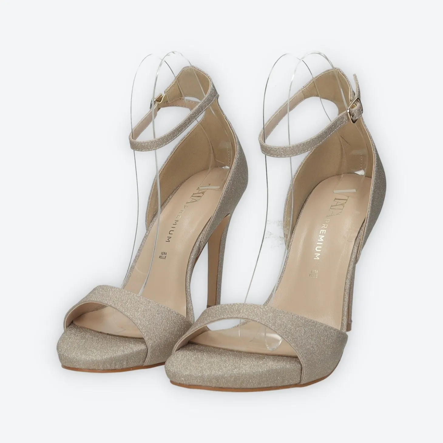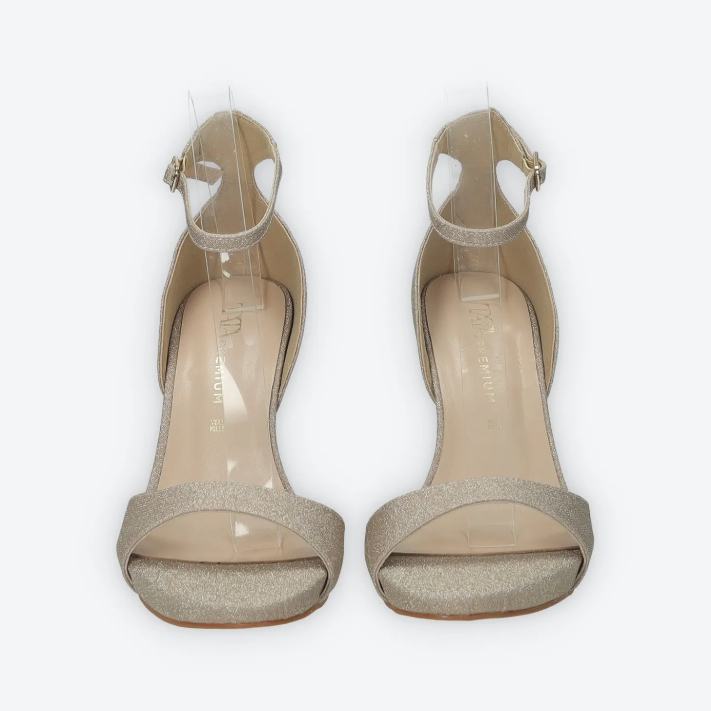 Sandali con cinturino alla caviglia.Punta quadrata e tomaia ricoperta in strass.Altezza tacco:10cm