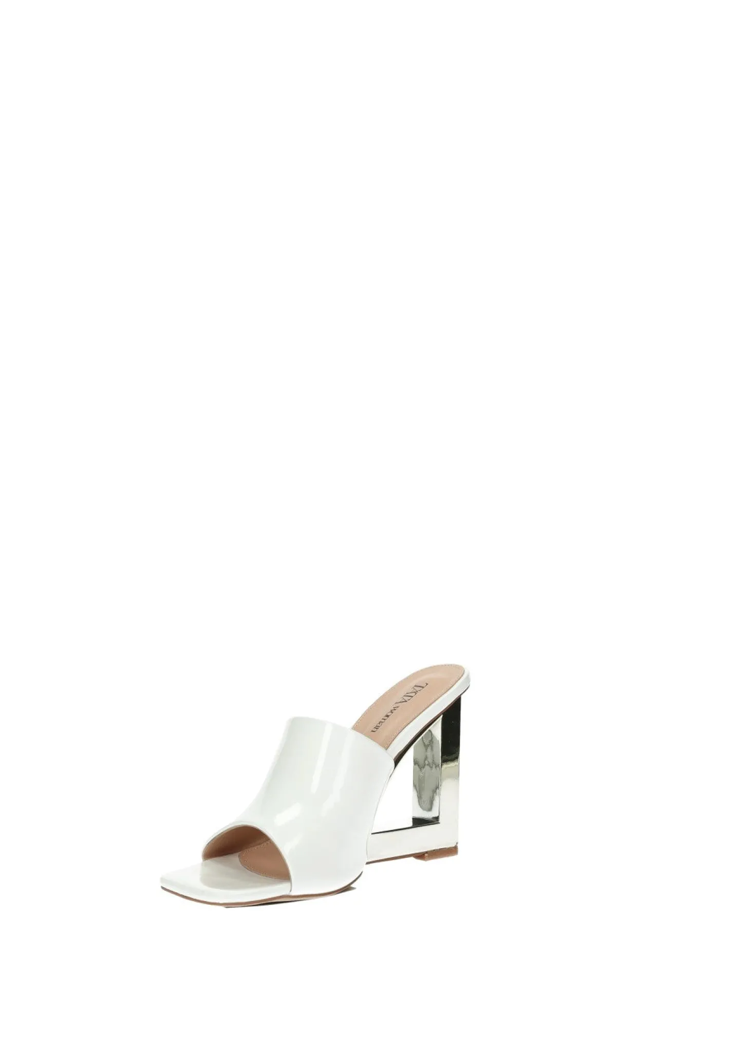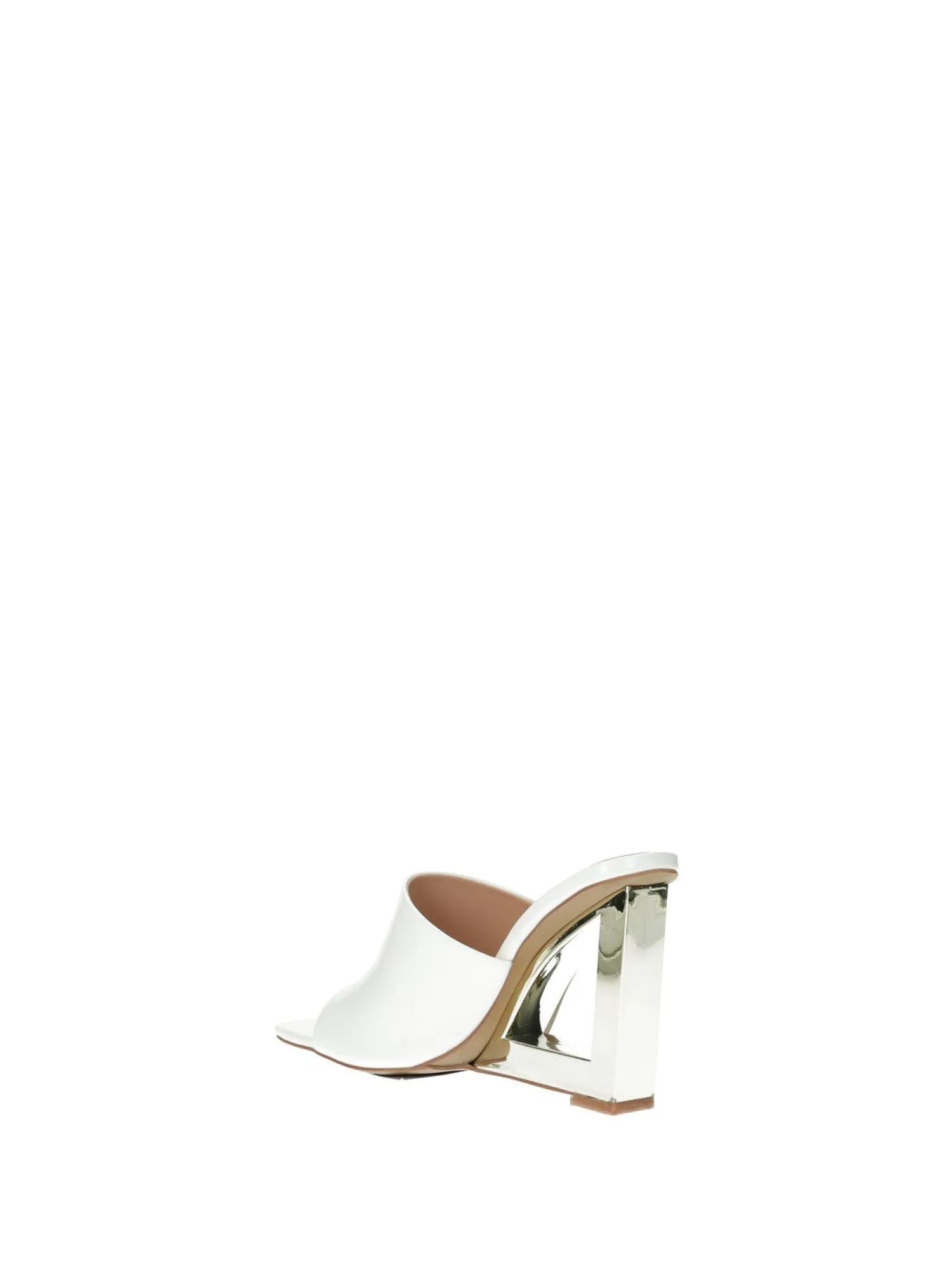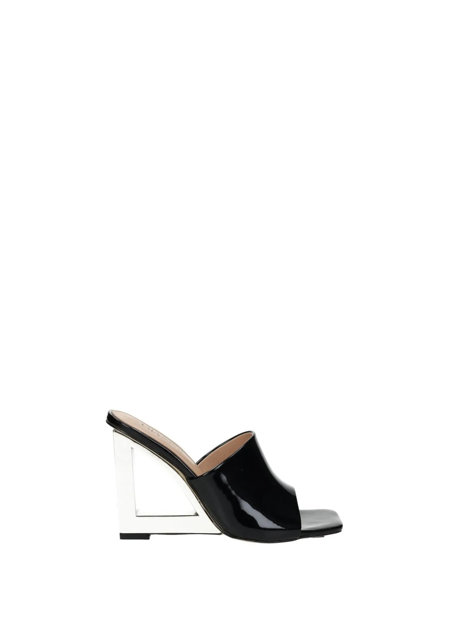 Sandali in vernice con tacco geometrico di 9.5 cm.