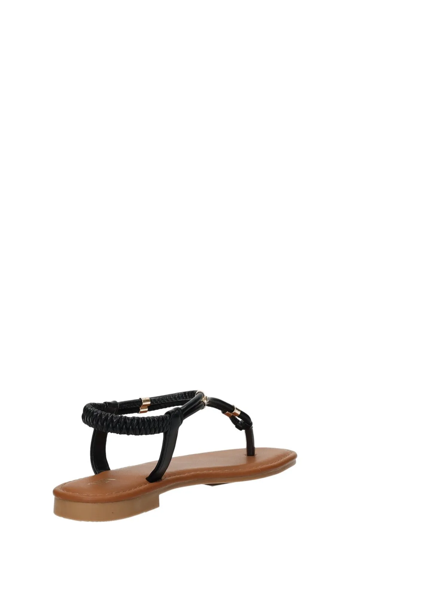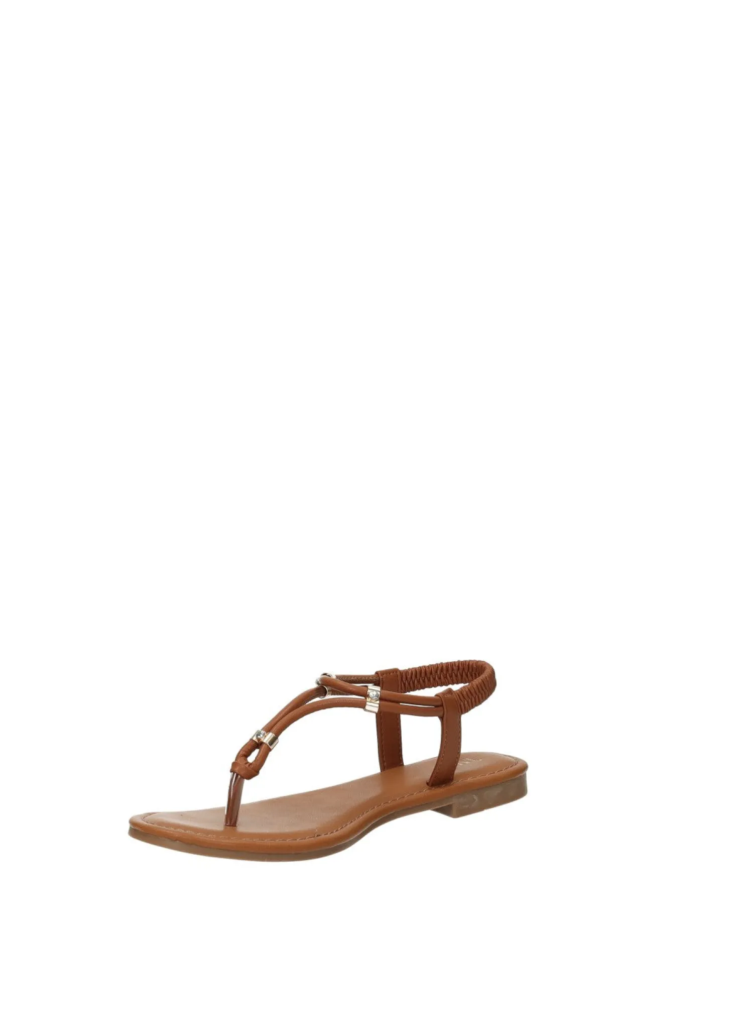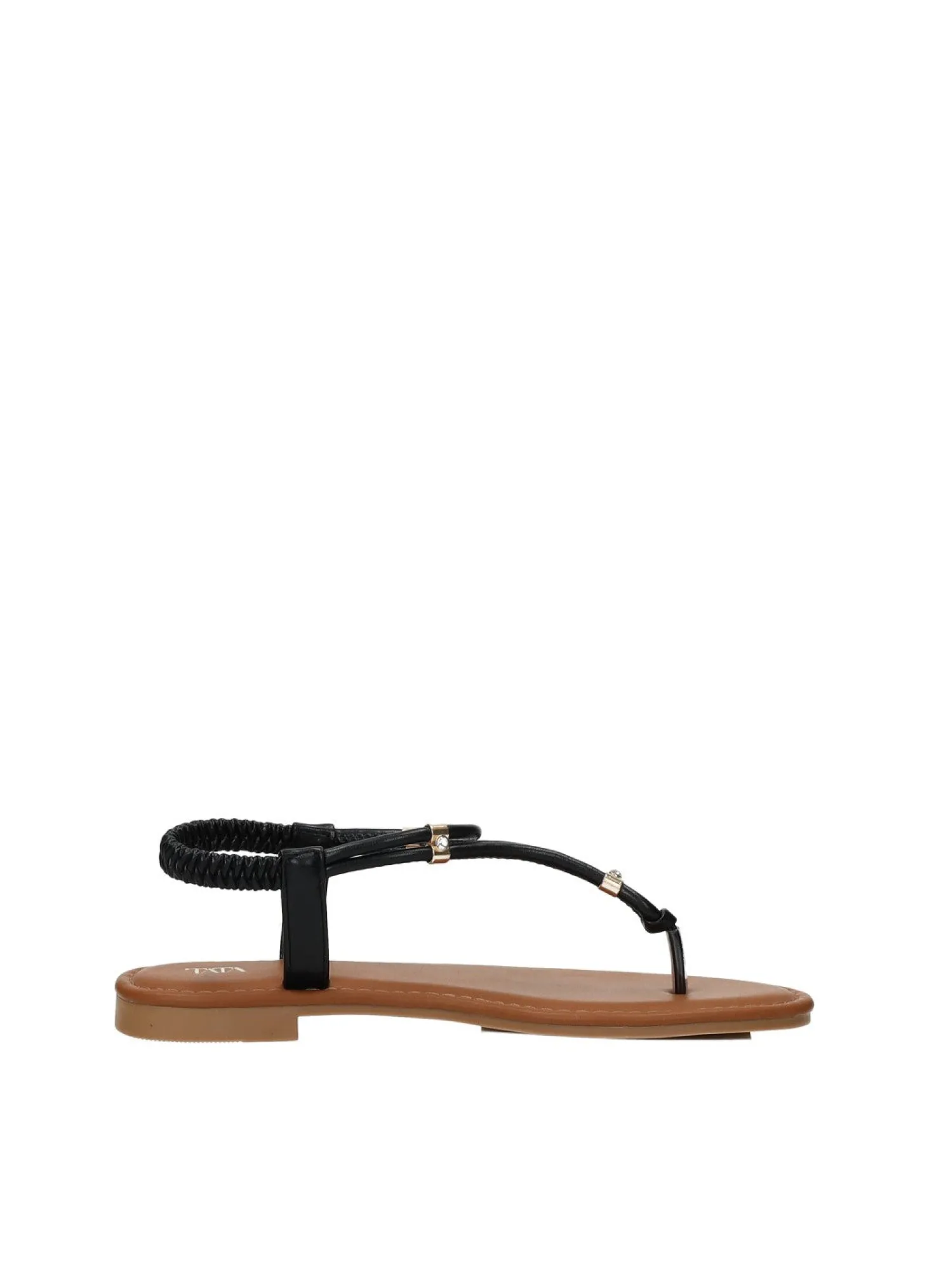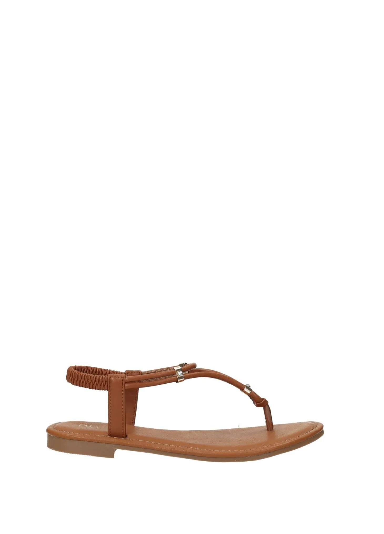 Sandali infradito effetto pelle con cinturino elasticizzato e fondo in gomma.