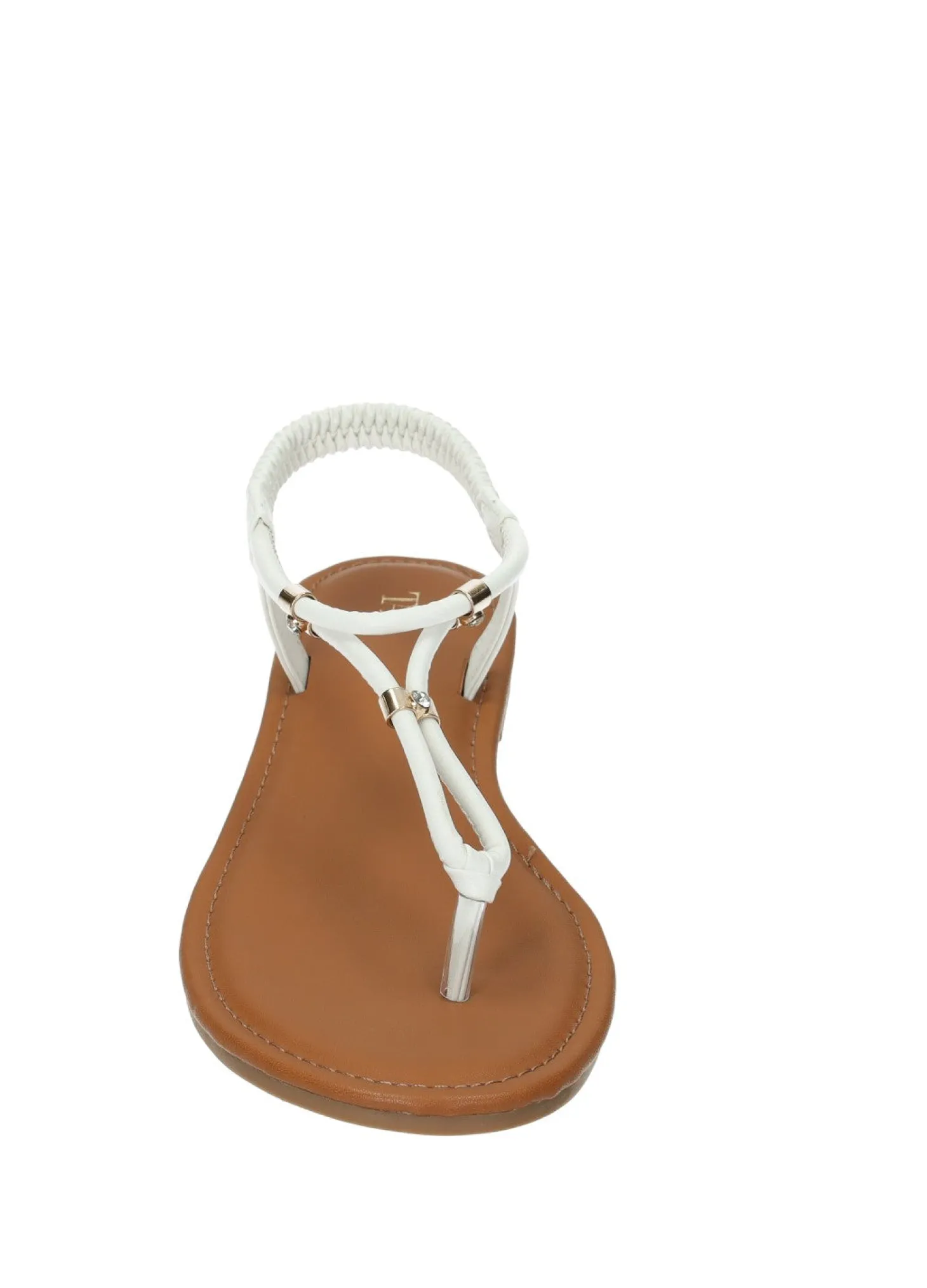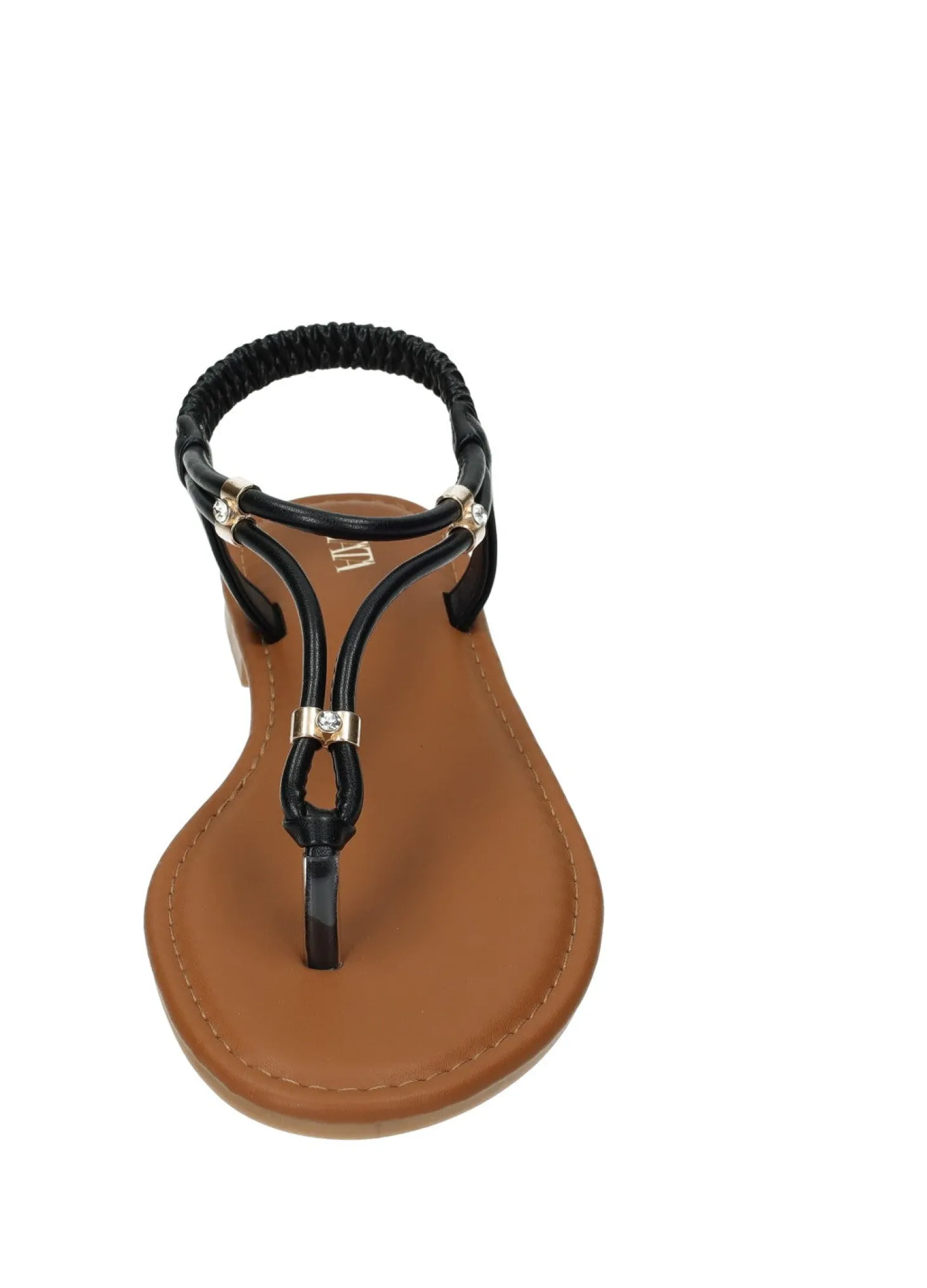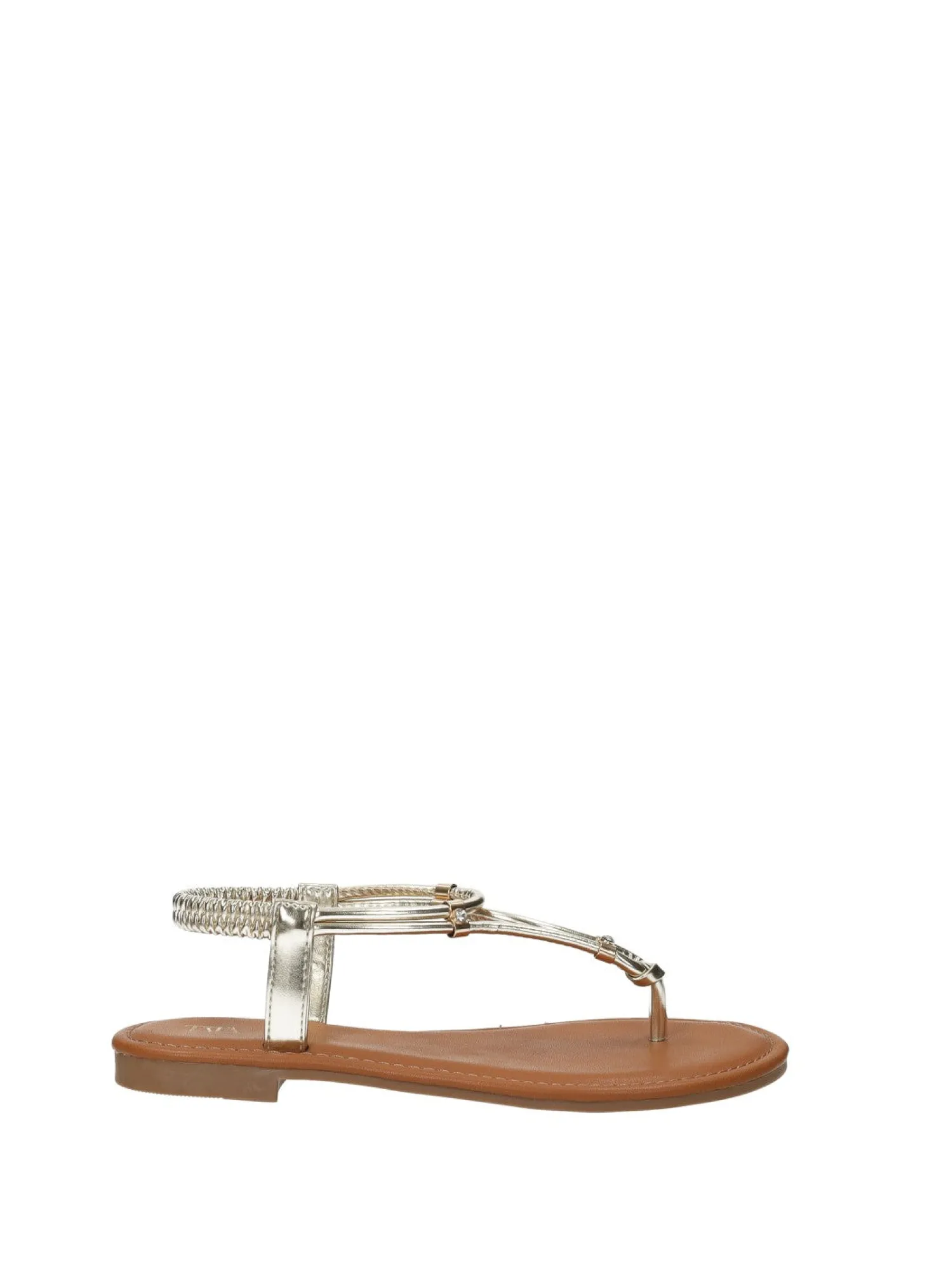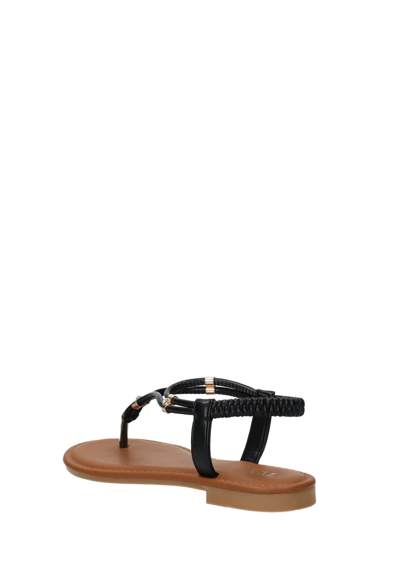 Sandali infradito effetto pelle con cinturino elasticizzato e fondo in gomma.