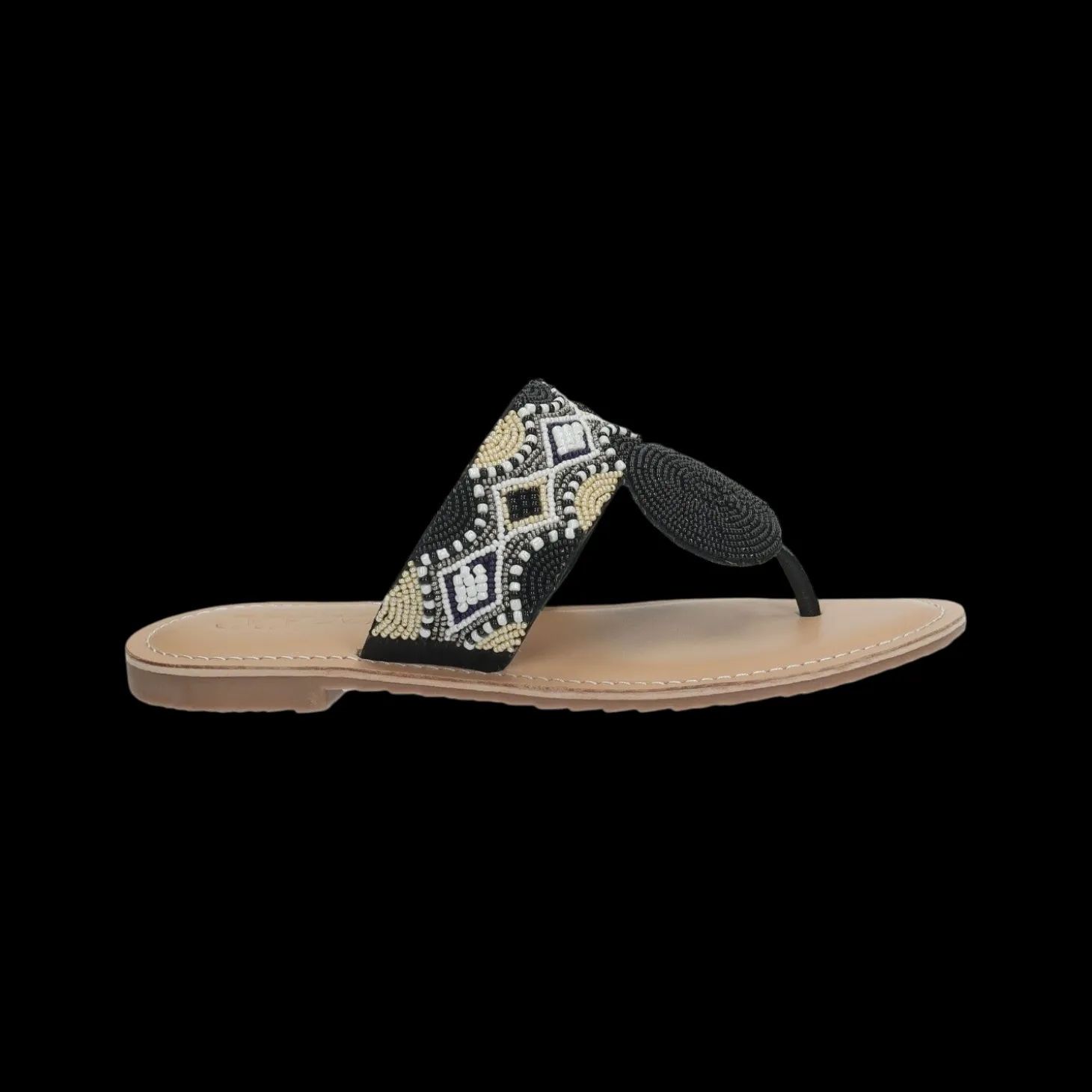 Questi sandali offrono comfort e glamour a tutti i vostri look.Realizzati in vers pelle. decorati elegantemente con perle bijoux con trama geometrica.