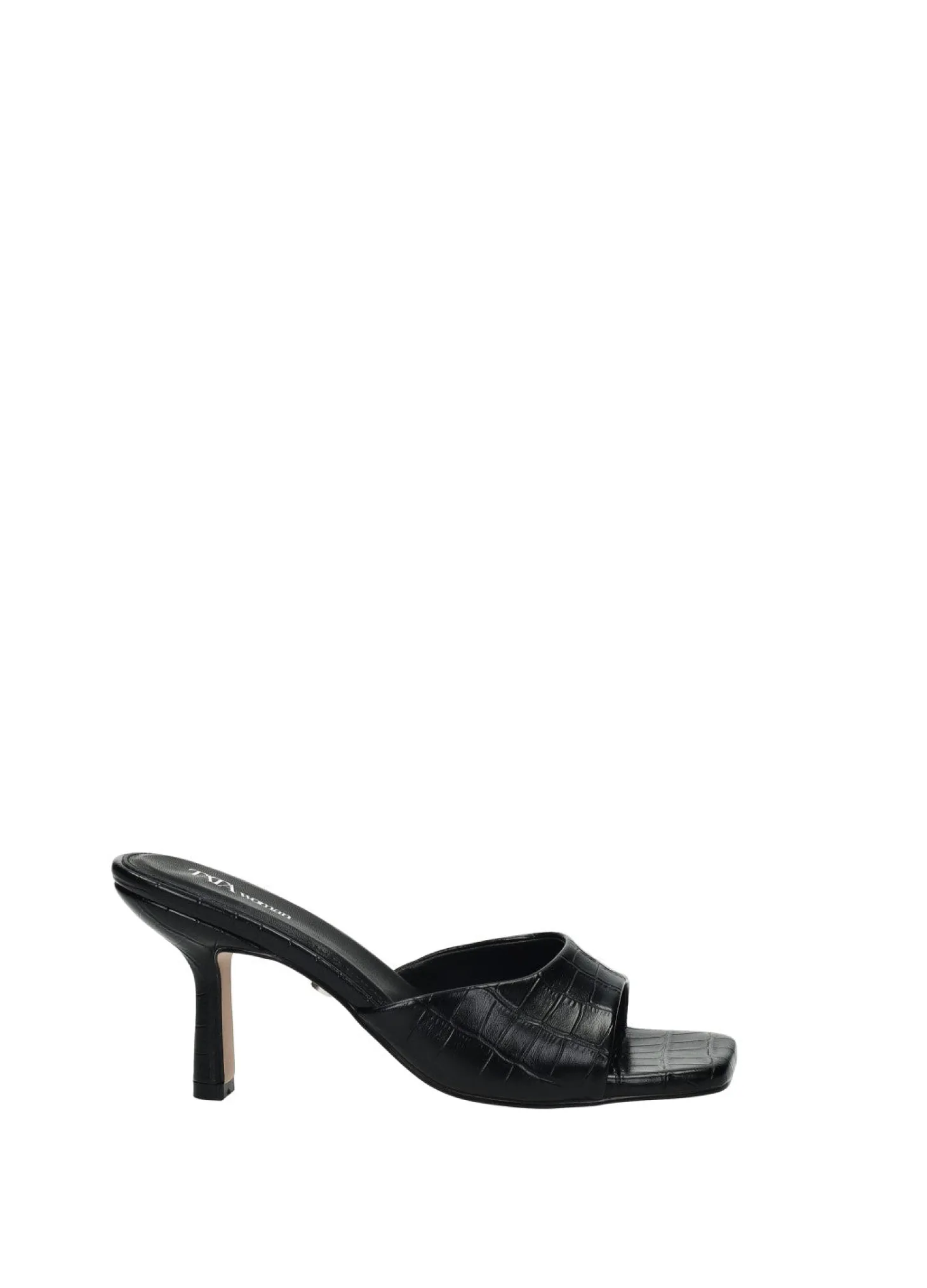 Sandali in ecopelle stampa cocco con tacco di 8 cm.