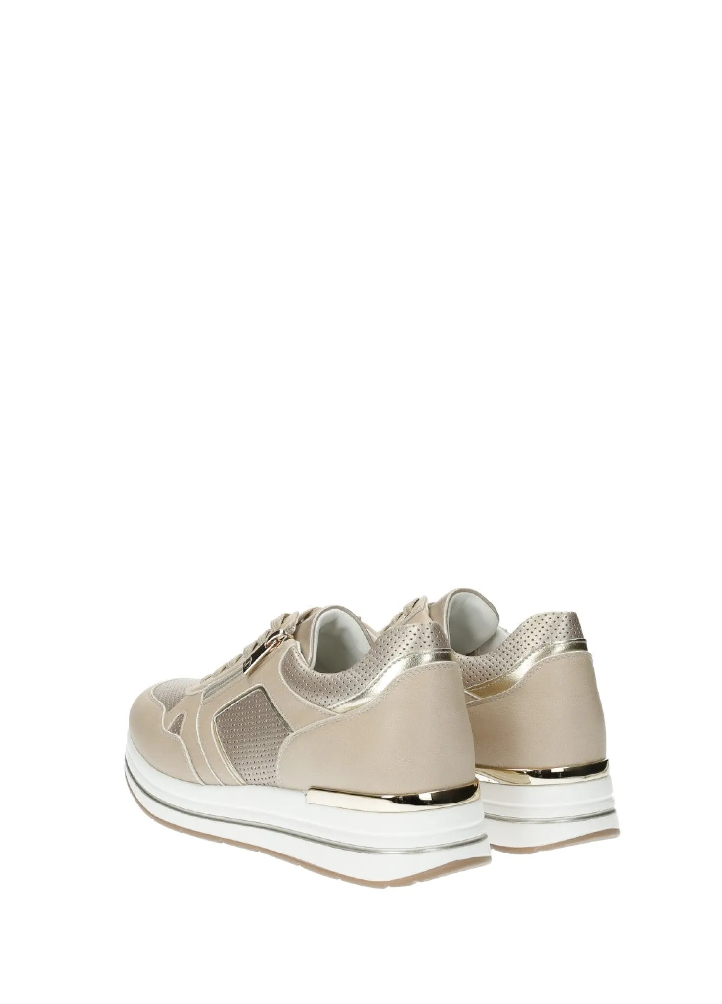 Sneakers in ecopelle e tessuto con suola Memory Active e fondo di 4 cm.