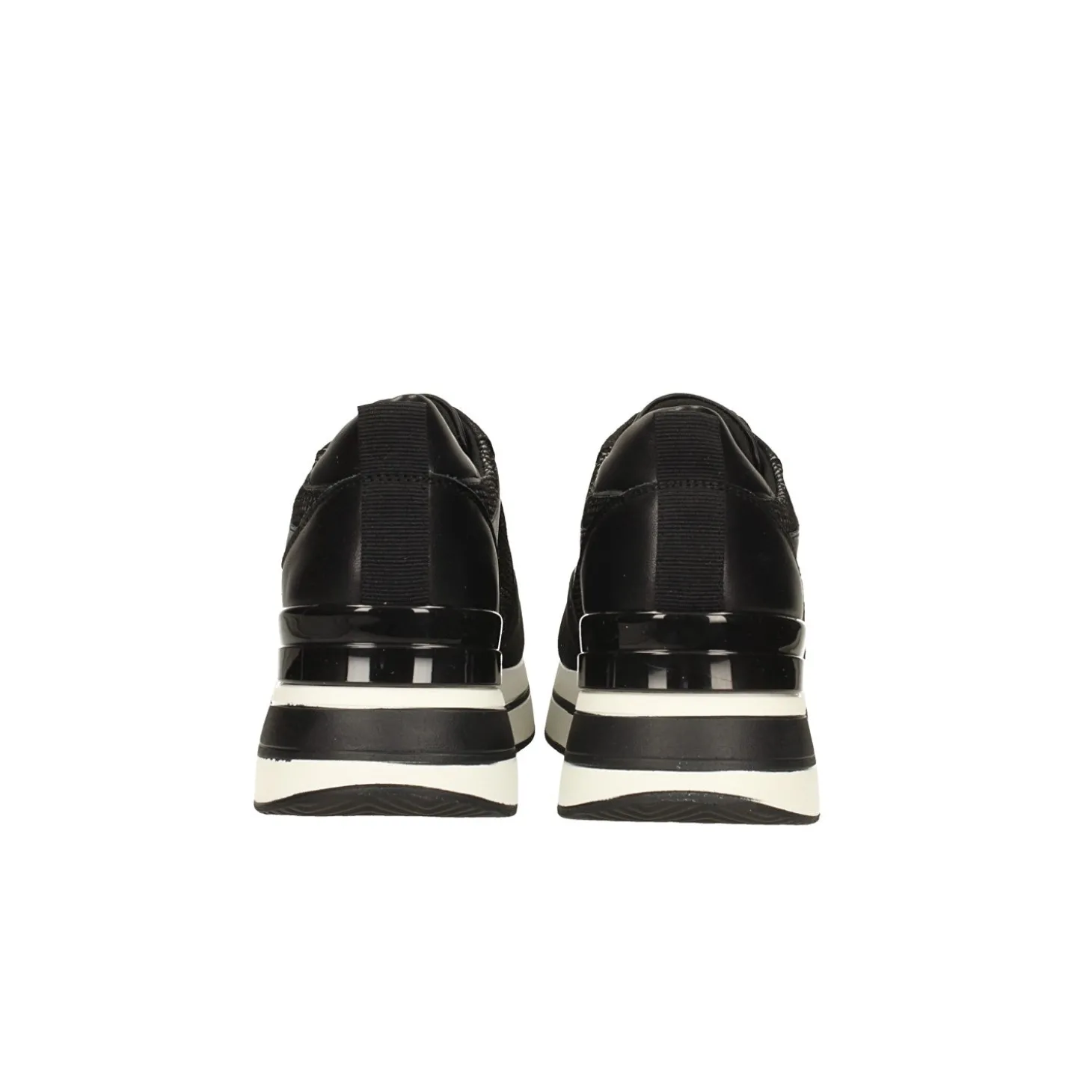Sneakers nere con inserti in tessuto. Tacco alto 4cm