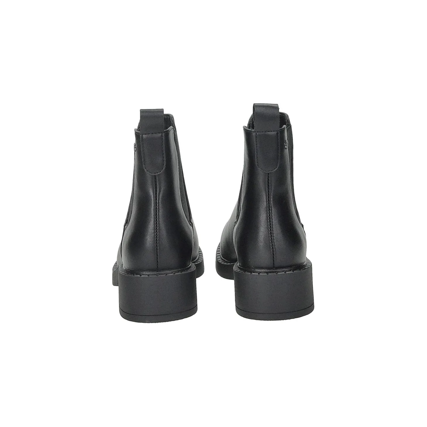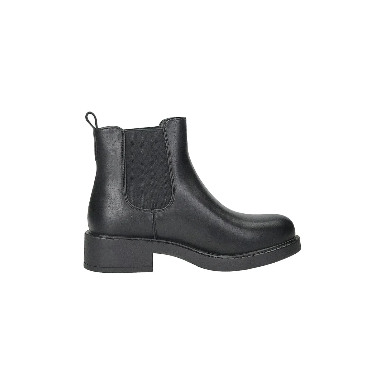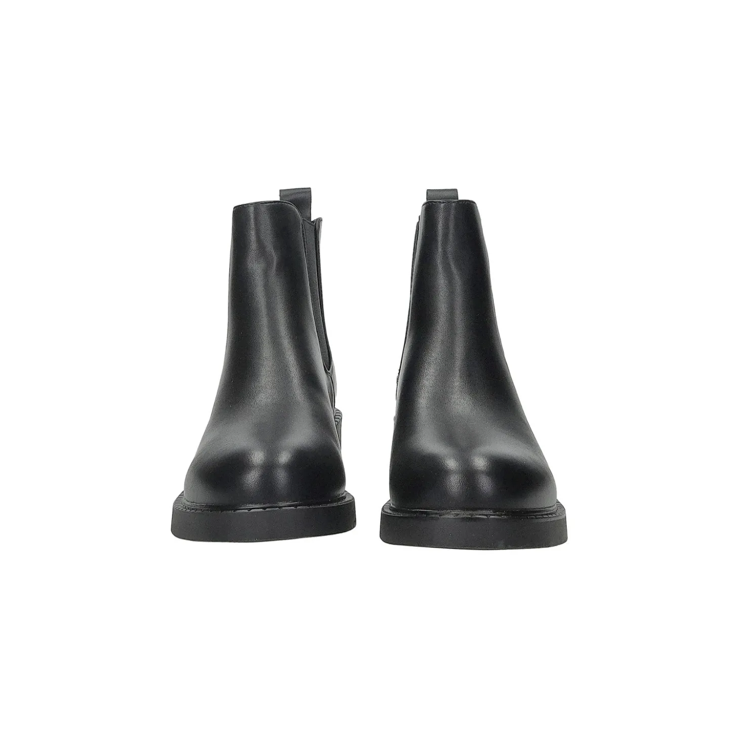 Stivaletti in ecopelle con tacco di 4 cm. con fasce elasticizzate laterali e tirante sul retro.