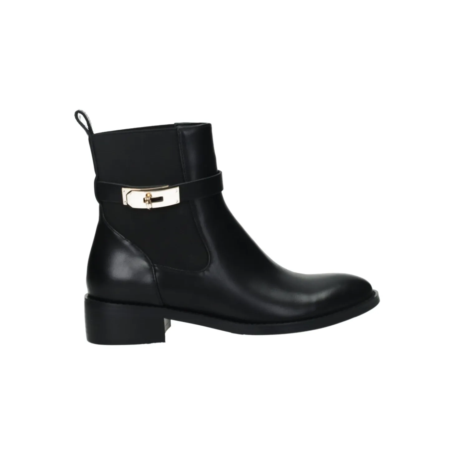 Stivaletti in ecopelle con fibbia e tacco di 3 cm.