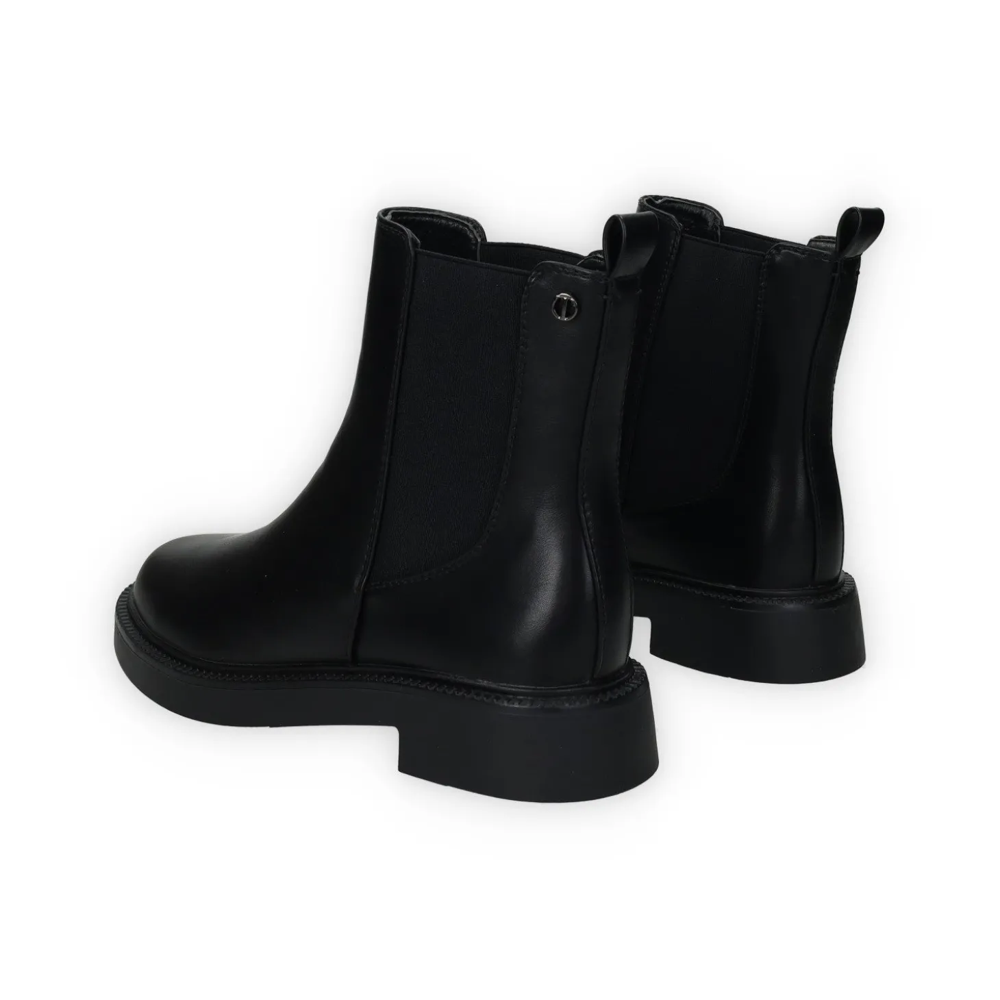 Stivaletti in ecopelle con fasce laterali elasticizzate e tacco di 2.5 cm.
