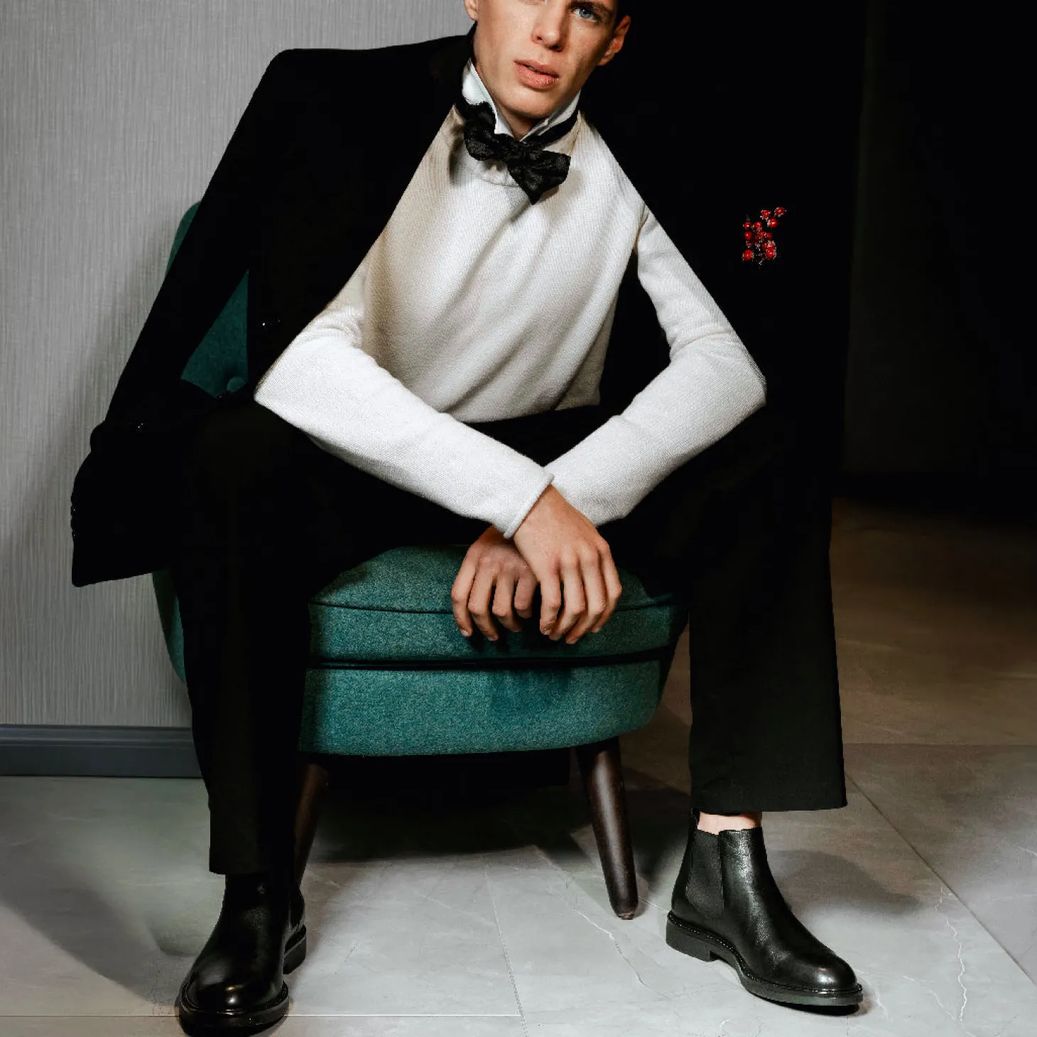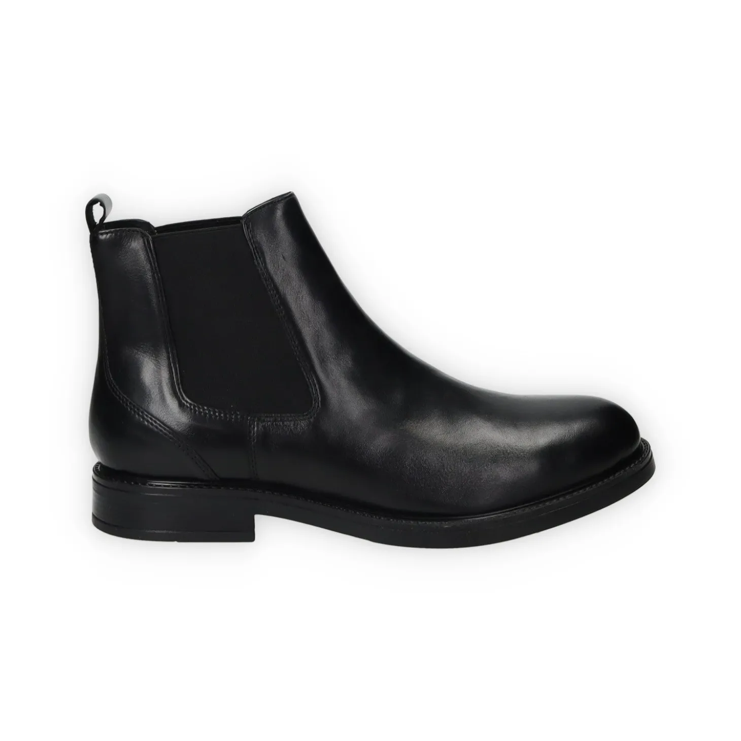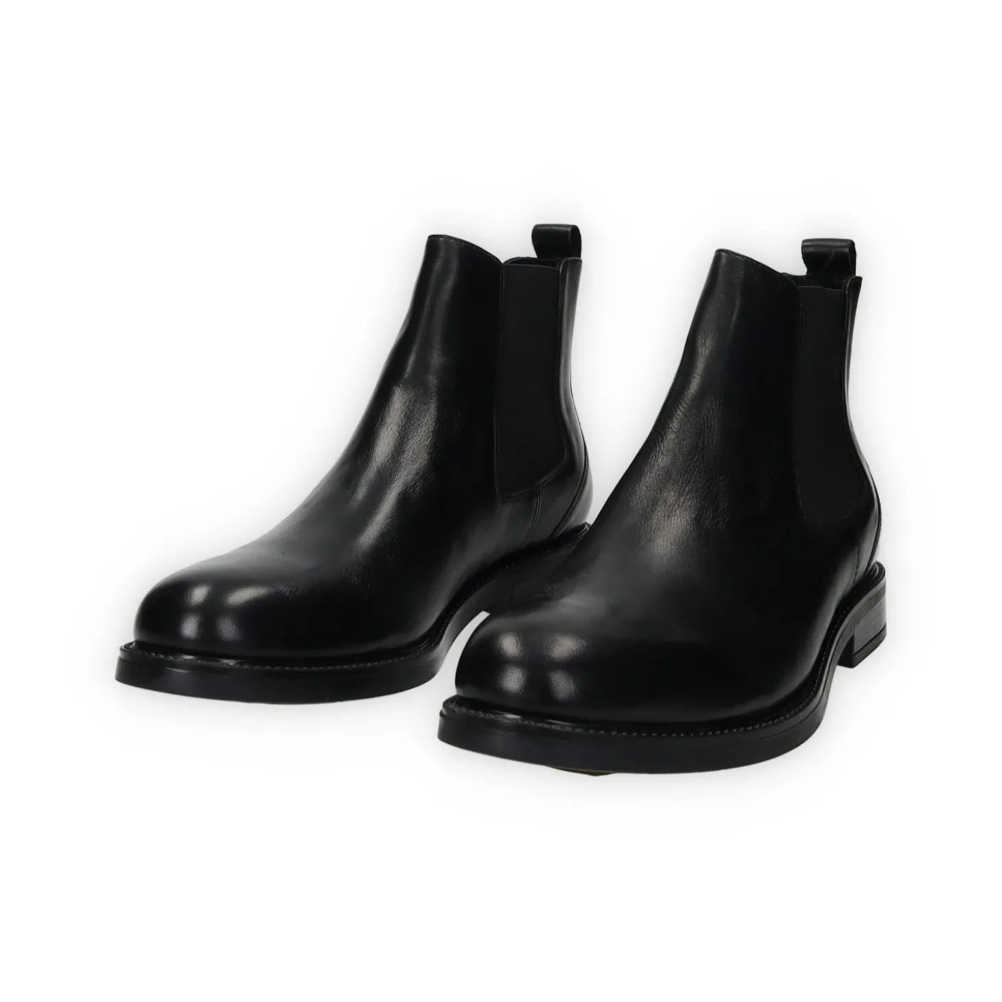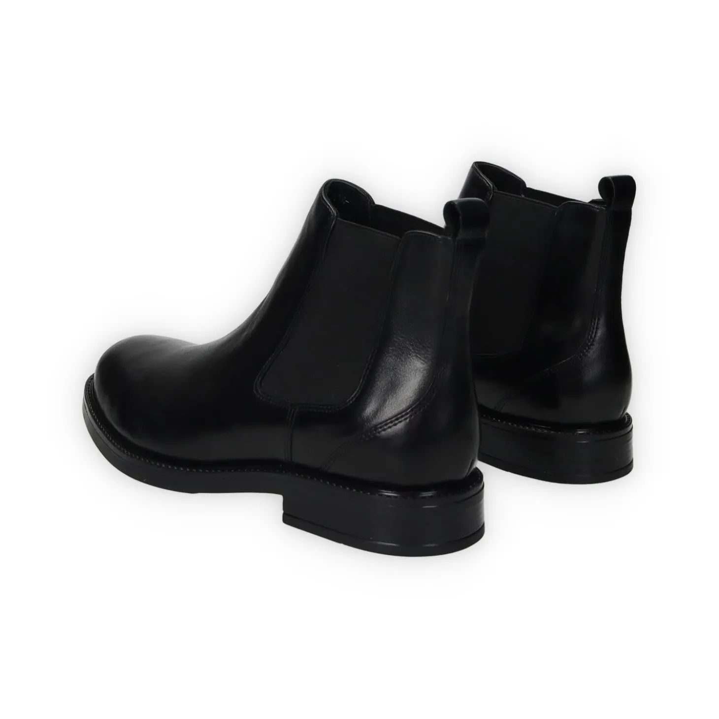 Stivaletti in vera pelle con elastici laterali e suola in gomma.