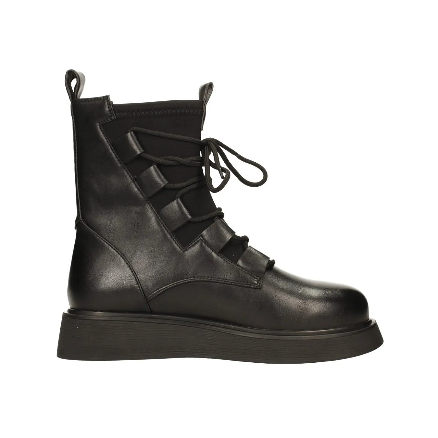 Stivaletti platform con inserto in tessuto elasticizzato.Suola flat in gomma altaAltezza gambale:18cmCirconferenza gambale:29cmAltezza tacco: 3.5cm