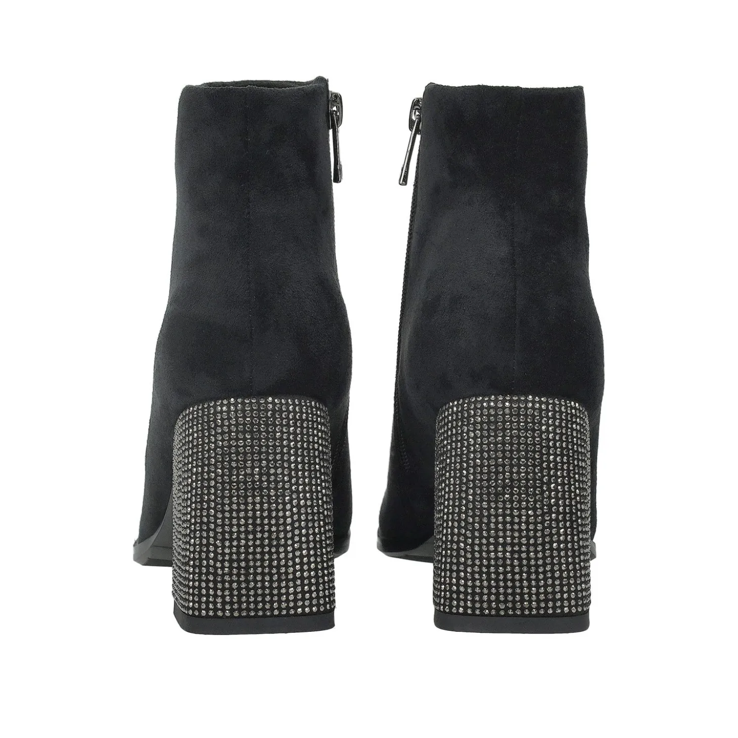 Stivaletti con tacco chunky ricoperto da brillantini.Chiusura con cerniera laterale.Altezza gambale: 17cmCirconferenza gambale: 28cmAltezza tacco: 8cm
